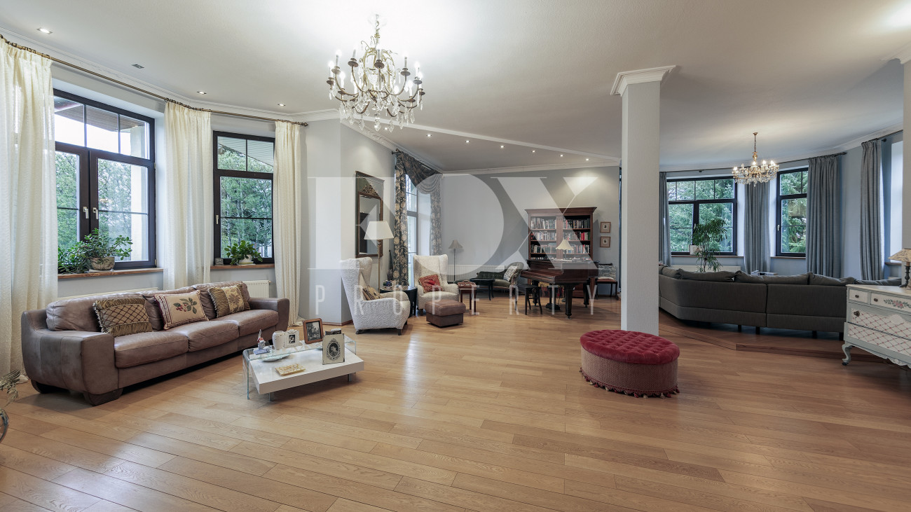 Просторный дом для большой семьи с идеальной планировкой и ухоженной территорией выполнен в стиле современной классики и сочетает безупречное состояние с тщательно продуманной планировкой, где каждая зона организована для комфорта всех членов семьи. Высокие потолки 3,5 м и обилие естественного света через полупанорамные окна создают ощущение простора и уюта. Дом 2010 года постройки.