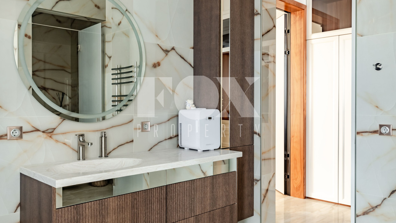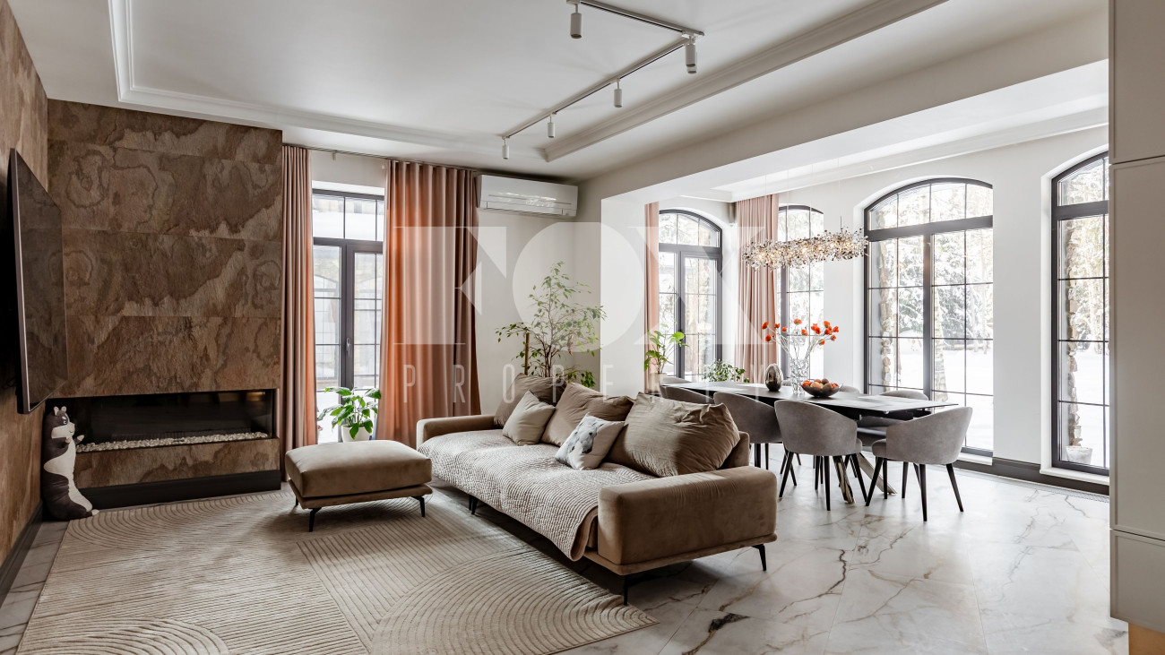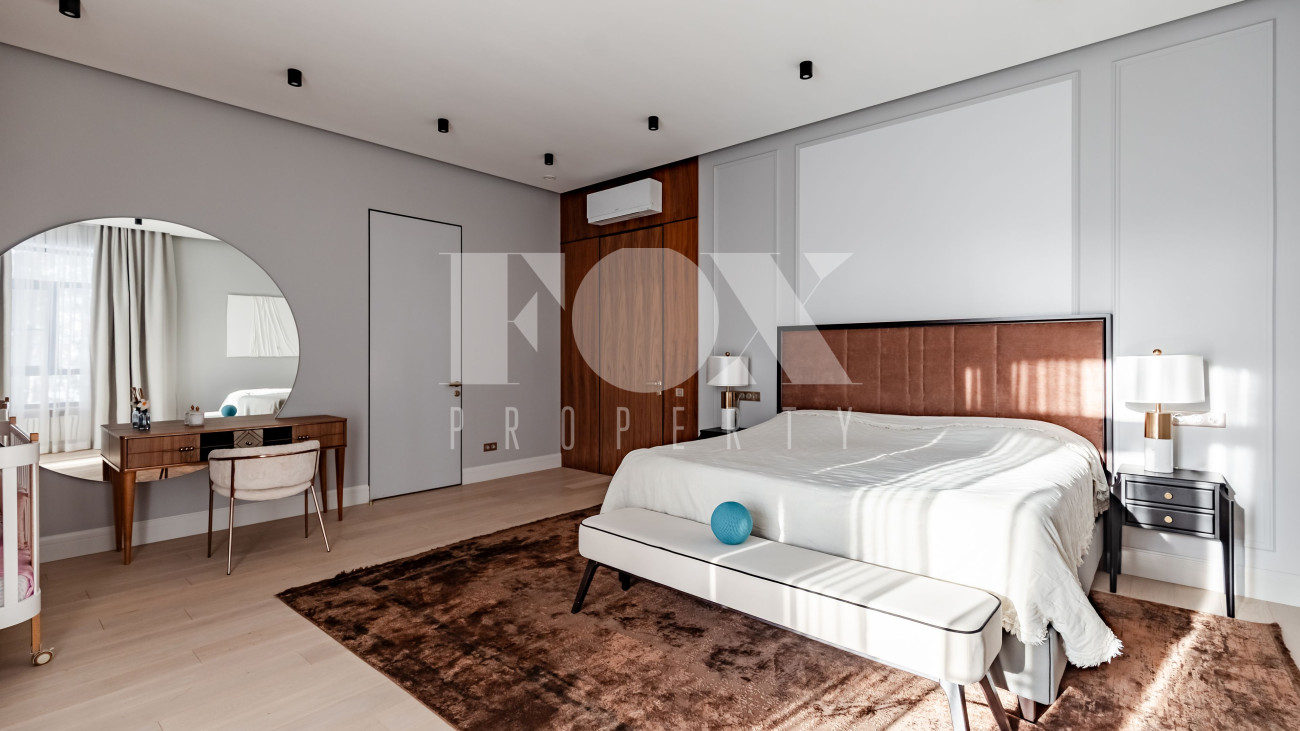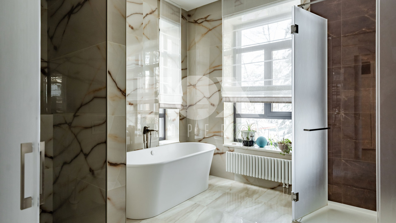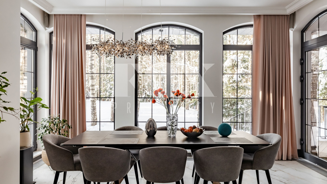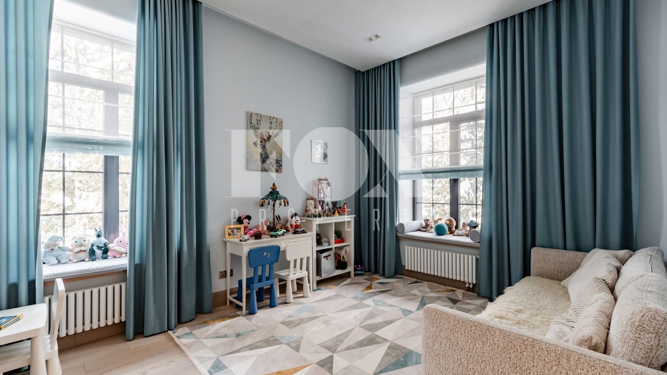 Уникальный загородный дом на 57 сотках. На территории расположены три основных строения. В основном доме установлена система "умный дом". На первом этаже размещены: зал с кухней и выходом на веранду, прихожая с мраморным водопадом, туалет, прачечная, гостевая спальня, игровой гараж, а также две кладовые со входом из кухни. Второй этаж включает: мастер- спальню с балконом, гардеробом и ванной, детскую комнату, спальню с гардеробом, кабинет с библиотекой, санузел и зал. Дом со спа-комплексом: на первом этаже дома находятся: зона отдыха с большим камином и вторым светом, спортзал, хаммам, парилка, душевая, 15-метровый бассейн, санузел и прачечная. В хозяйственной зоне размещены кухня, гостевая спальня, санузел, выходы в паркинг и на улицу. На втором этаже расположена спальня с собственным санузлом и гардеробом.