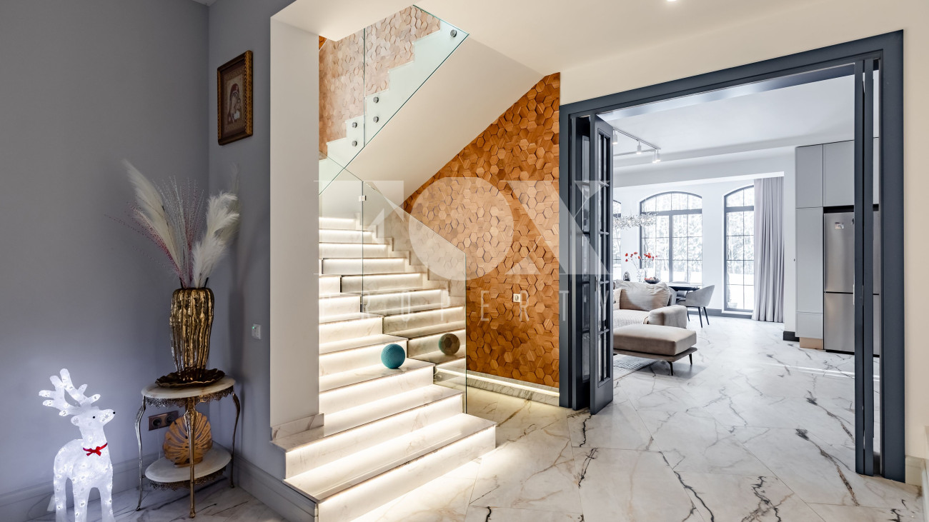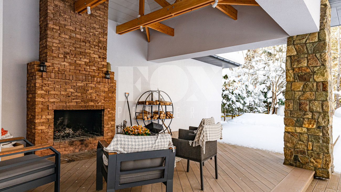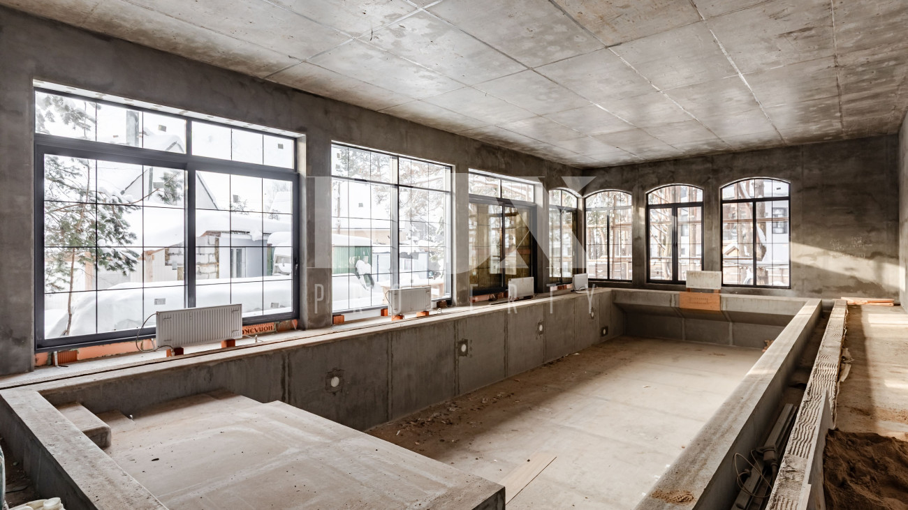 Отдельно на участке есть теплая беседка и дом 900 кв.м в состоянии Gray box со спа-комплексом + под ним отапливаемый подземный паркинг на 10 машин с прямым въездом с улицы.