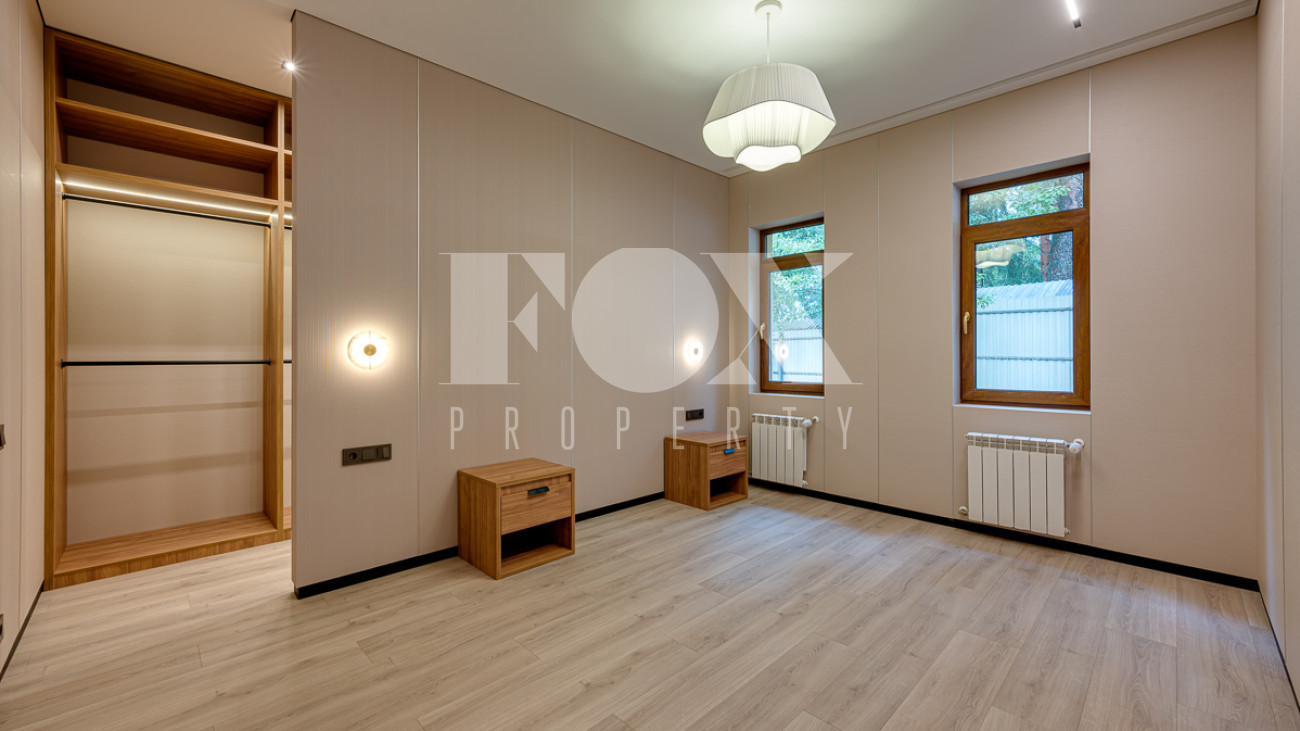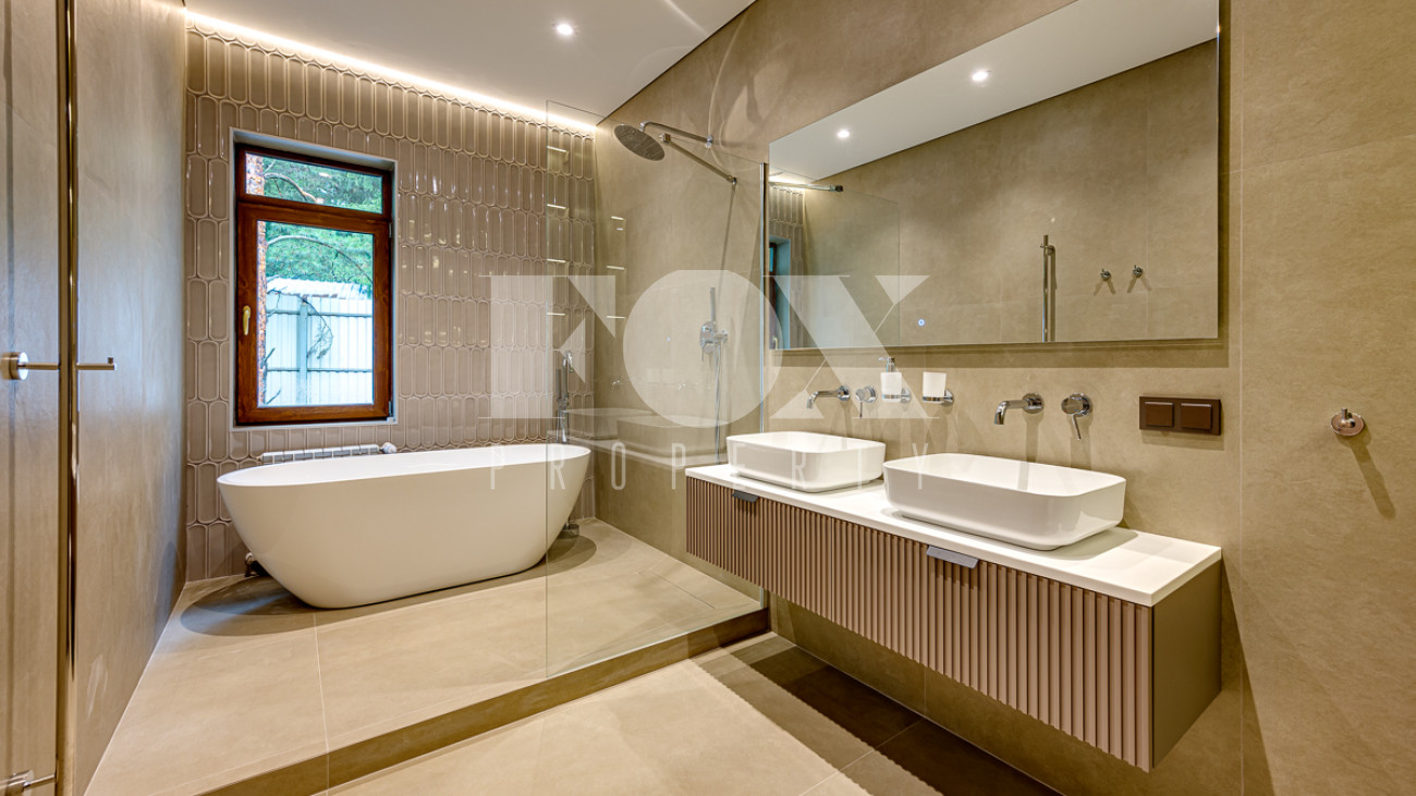 Все отделочные работы завершены, установлены сантехника и кухня. Дом полностью готов к заселению.