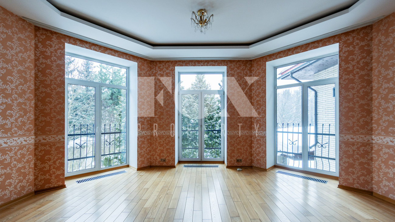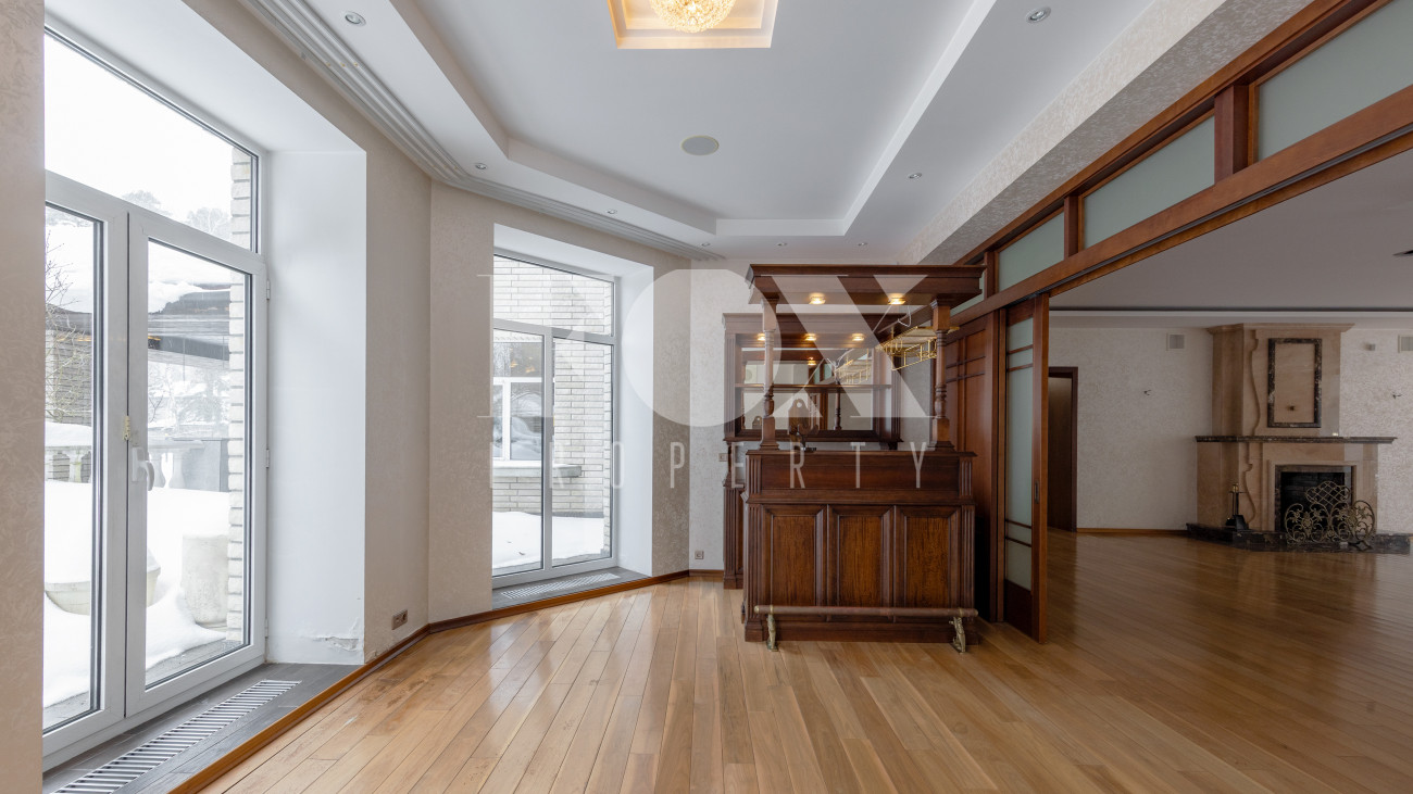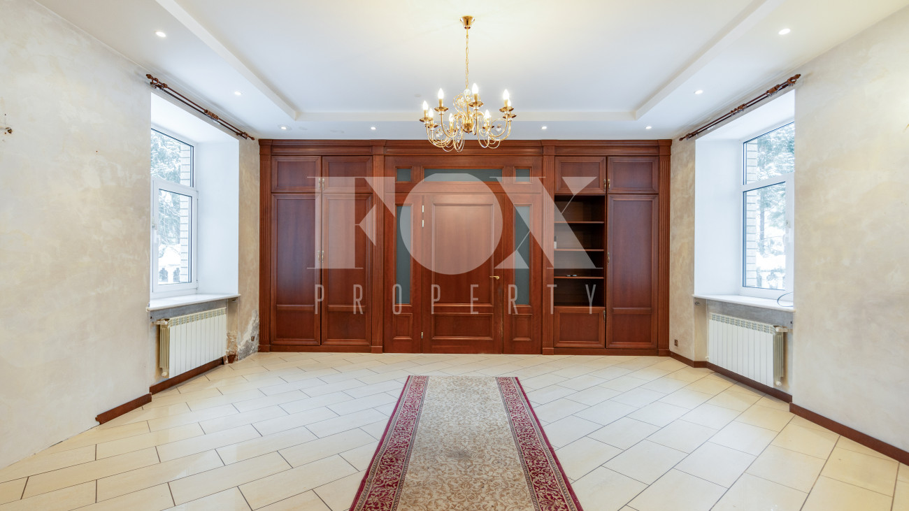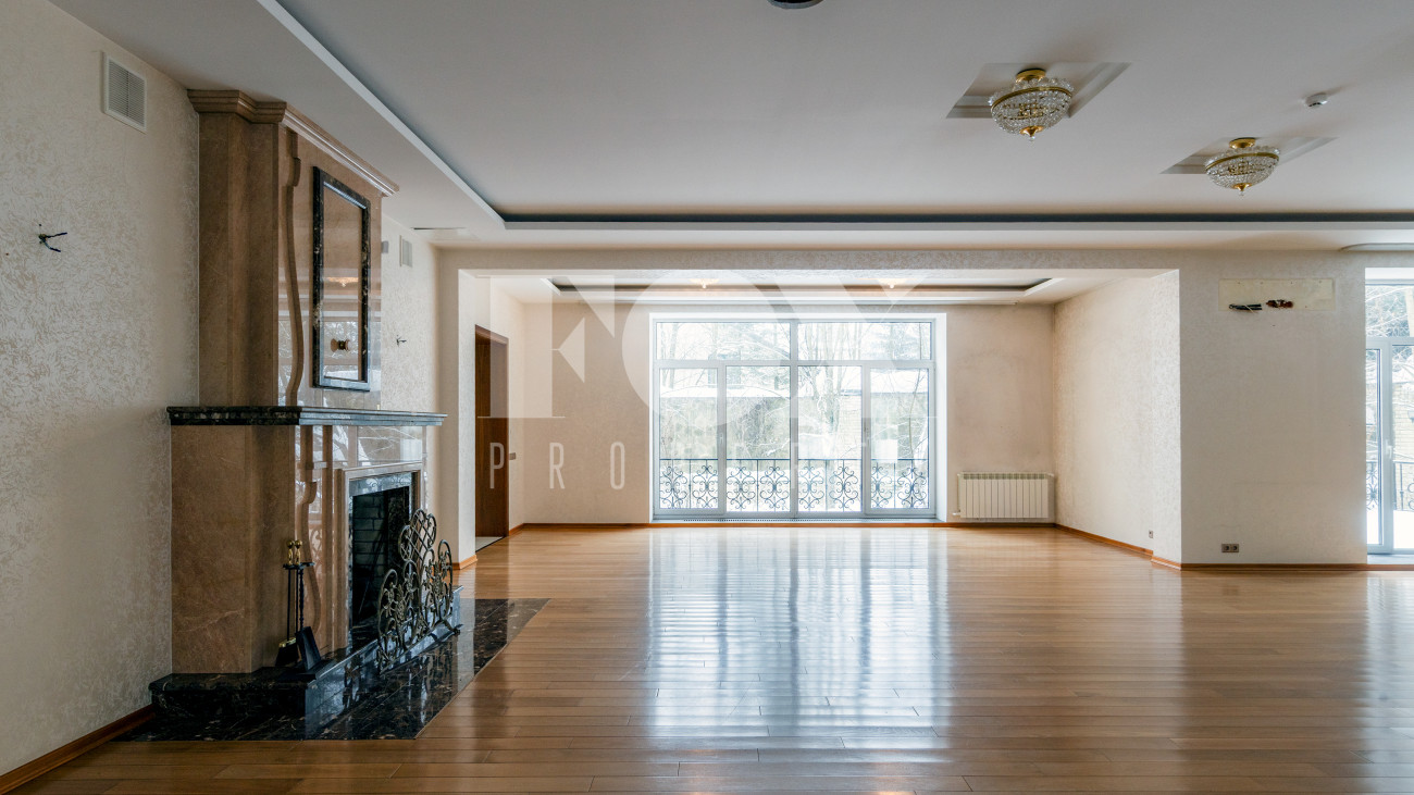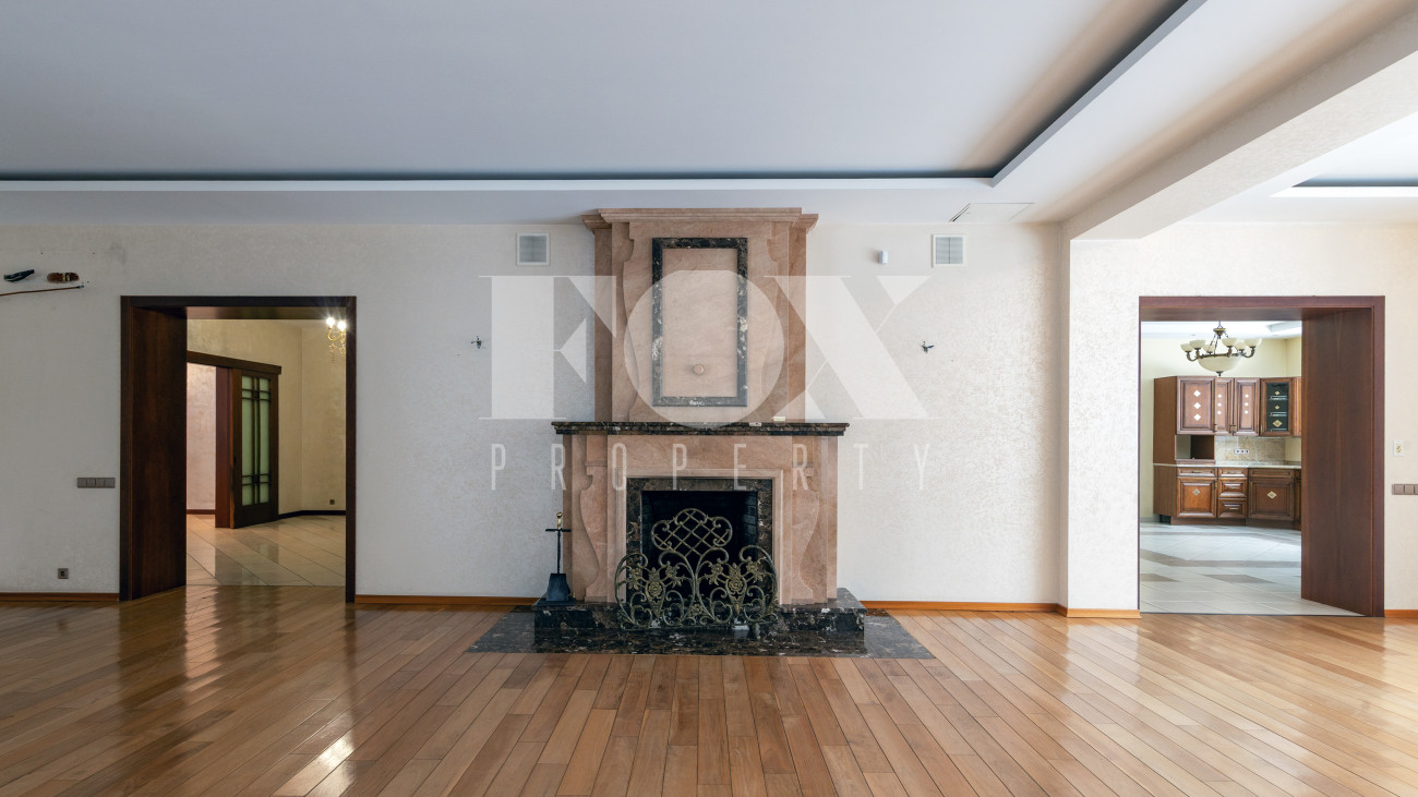 В доме собственная зона отдыха и спорта, просторная гостиная с камином, кабинет и библиотека, зимний сад, кухня – столовая, тренажерный зал, бильярдная, СПА зона с бассейном, сауной и комнатой отдыха, 5 спален, 8 с/у. Цокольный этаж предусматривает отдельные помещения для персонала и гараж на 4 м/м. Отдельно стоящий дом для охраны обеспечивает дополнительный уровень приватности. Статус земли ИЖС. Все коммуникации централизованные.