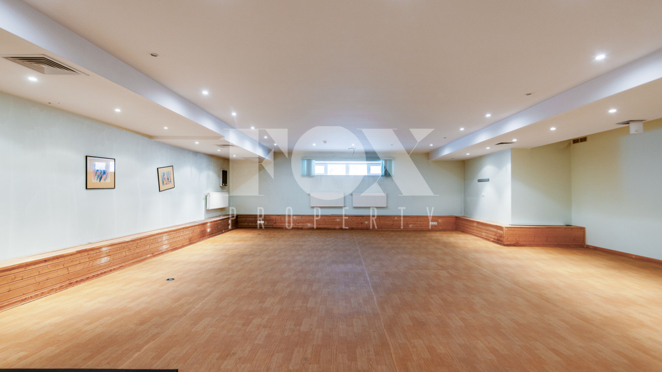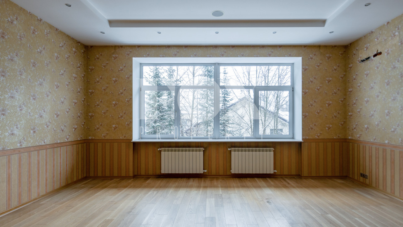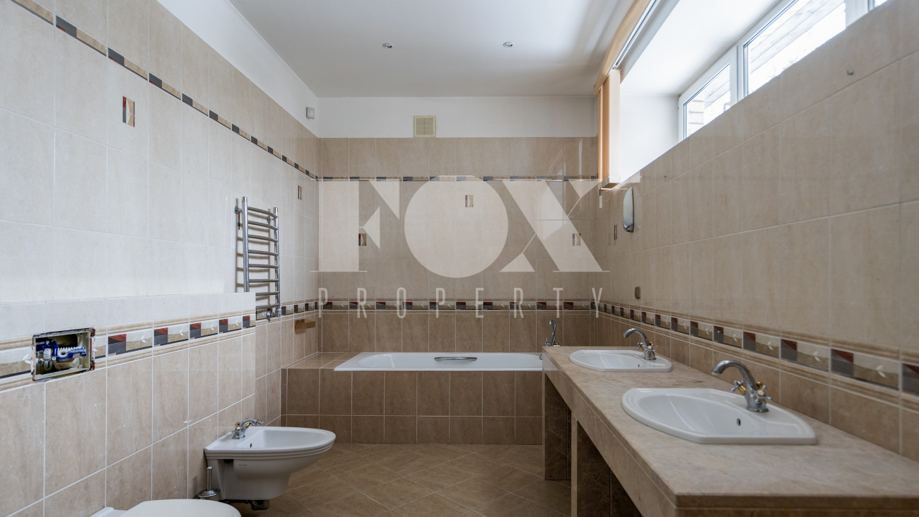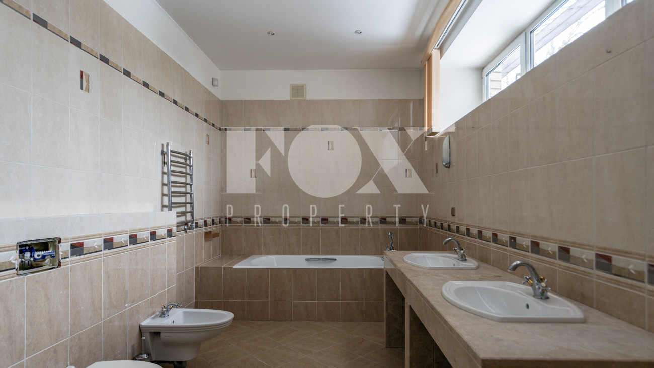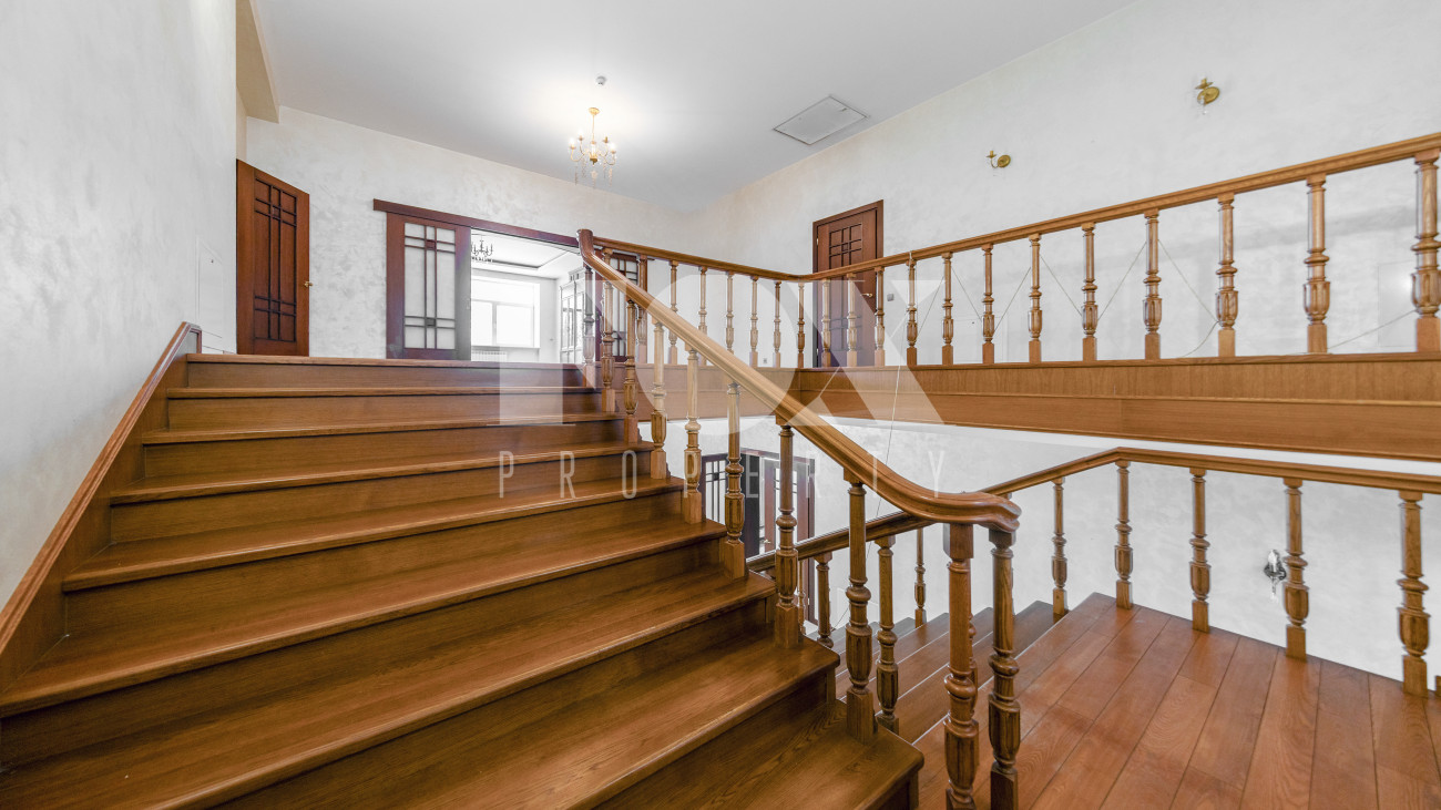 В доме собственная зона отдыха и спорта, просторная гостиная с камином, кабинет и библиотека, зимний сад, кухня – столовая, тренажерный зал, бильярдная, СПА зона с бассейном, сауной и комнатой отдыха, 5 спален, 8 с/у. Цокольный этаж предусматривает отдельные помещения для персонала и гараж на 4 м/м. Отдельно стоящий дом для охраны обеспечивает дополнительный уровень приватности. Статус земли ИЖС. Все коммуникации централизованные.