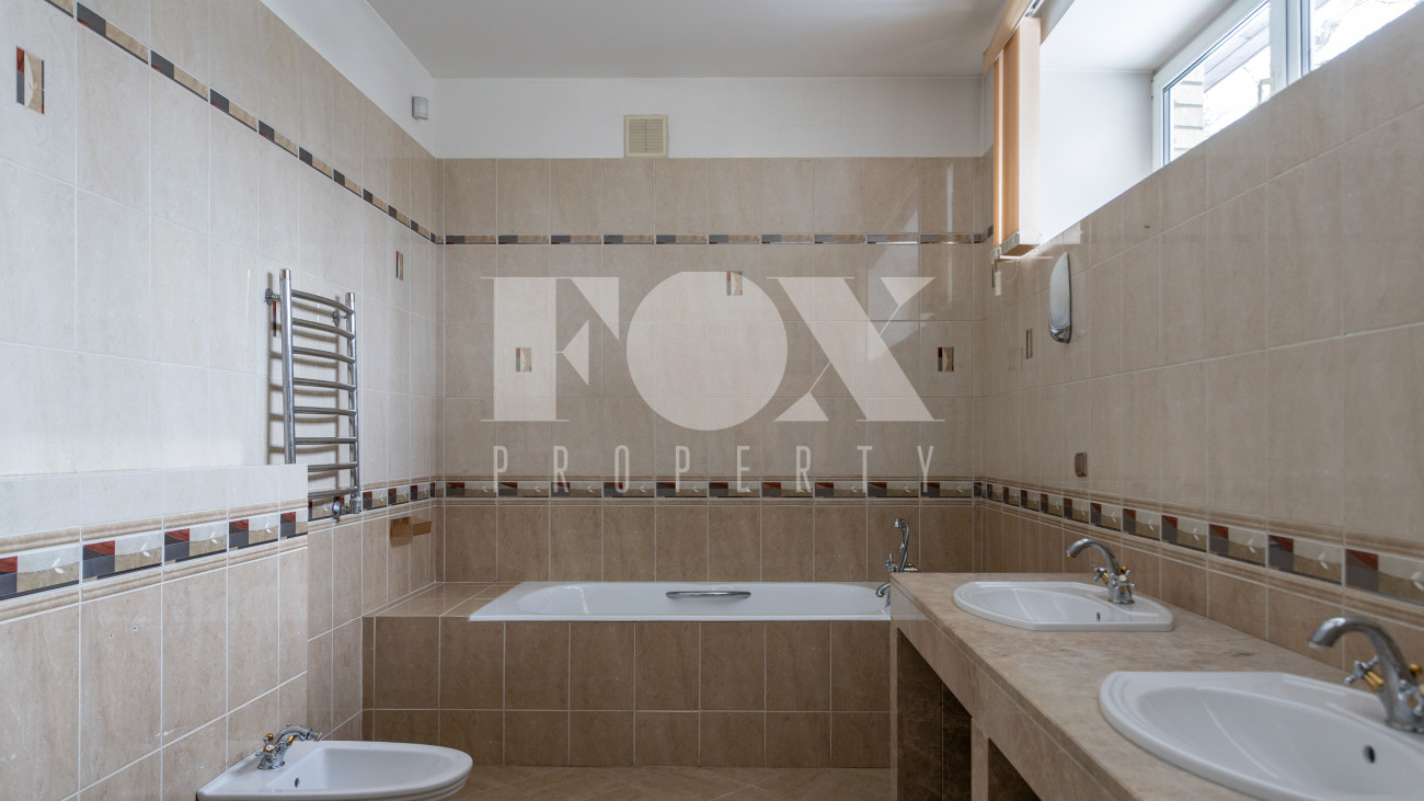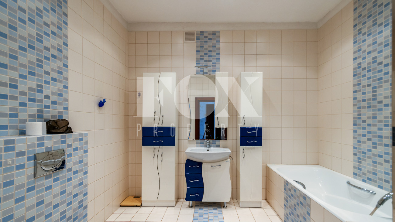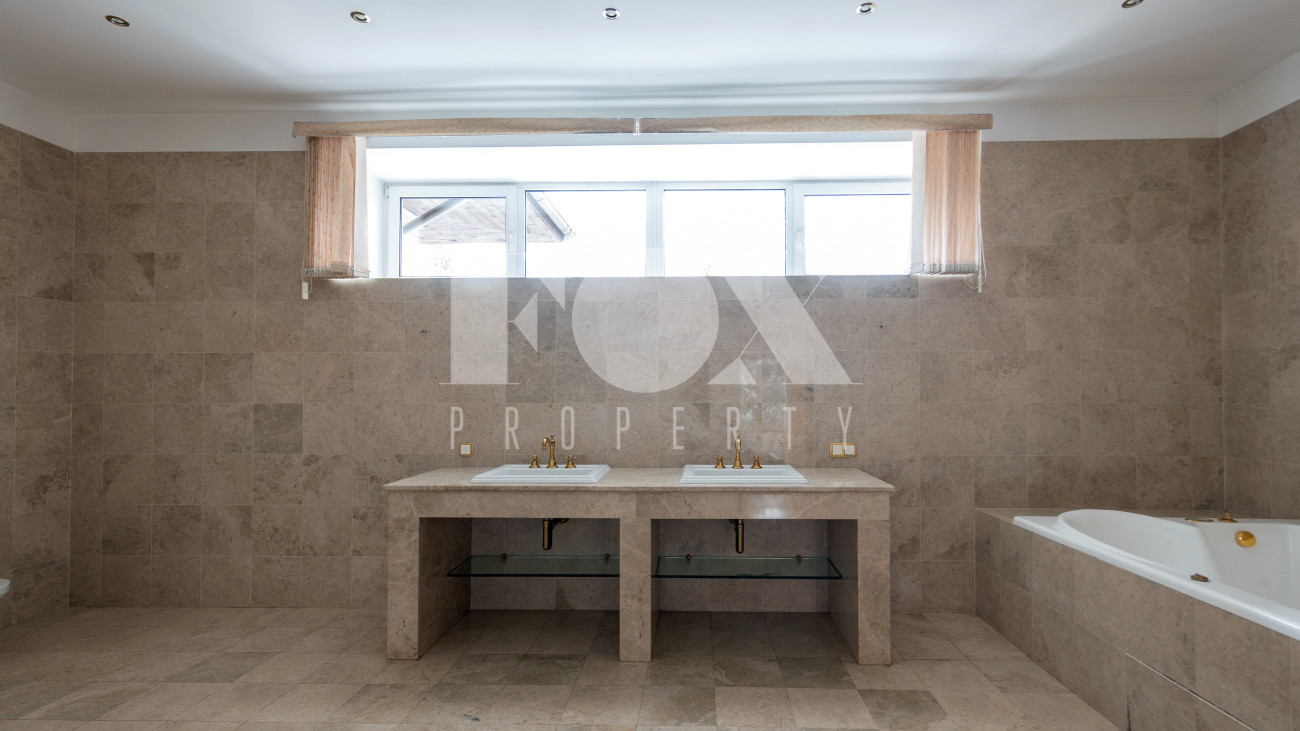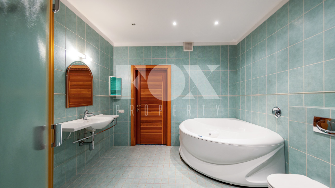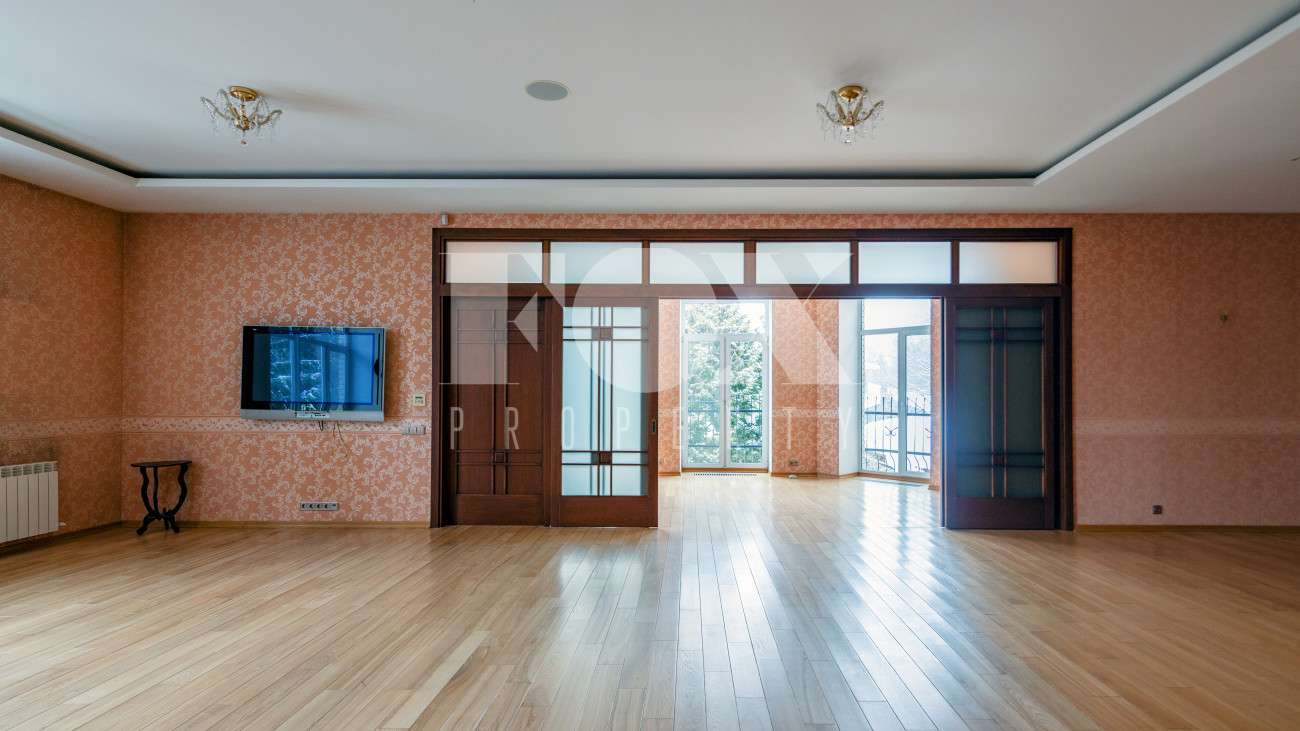 В доме собственная зона отдыха и спорта, просторная гостиная с камином, кабинет и библиотека, зимний сад, кухня – столовая, тренажерный зал, бильярдная, СПА зона с бассейном, сауной и комнатой отдыха, 5 спален, 8 с/у. Цокольный этаж предусматривает отдельные помещения для персонала и гараж на 4 м/м. Отдельно стоящий дом для охраны обеспечивает дополнительный уровень приватности. Статус земли ИЖС. Все коммуникации централизованные.