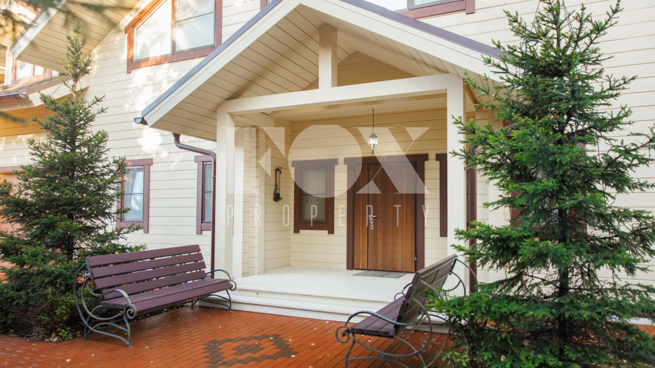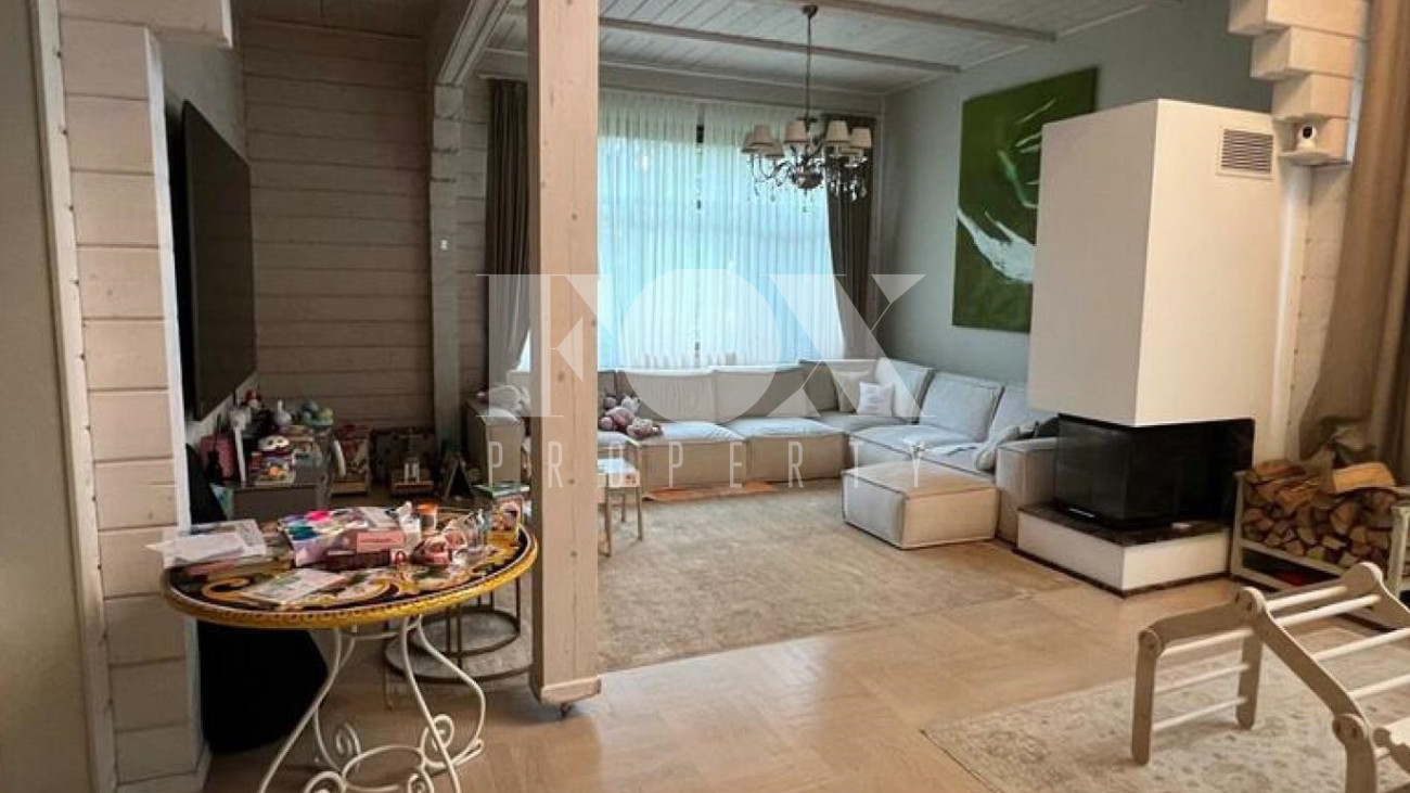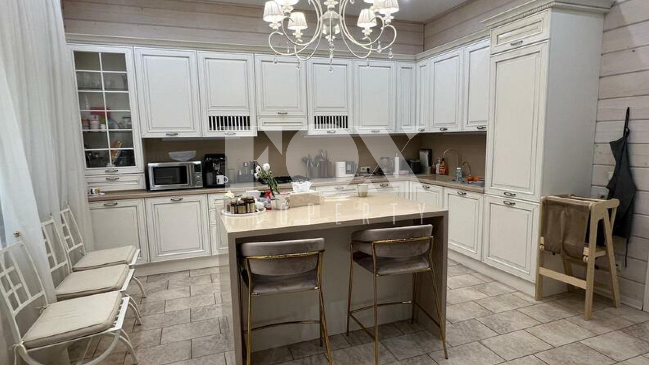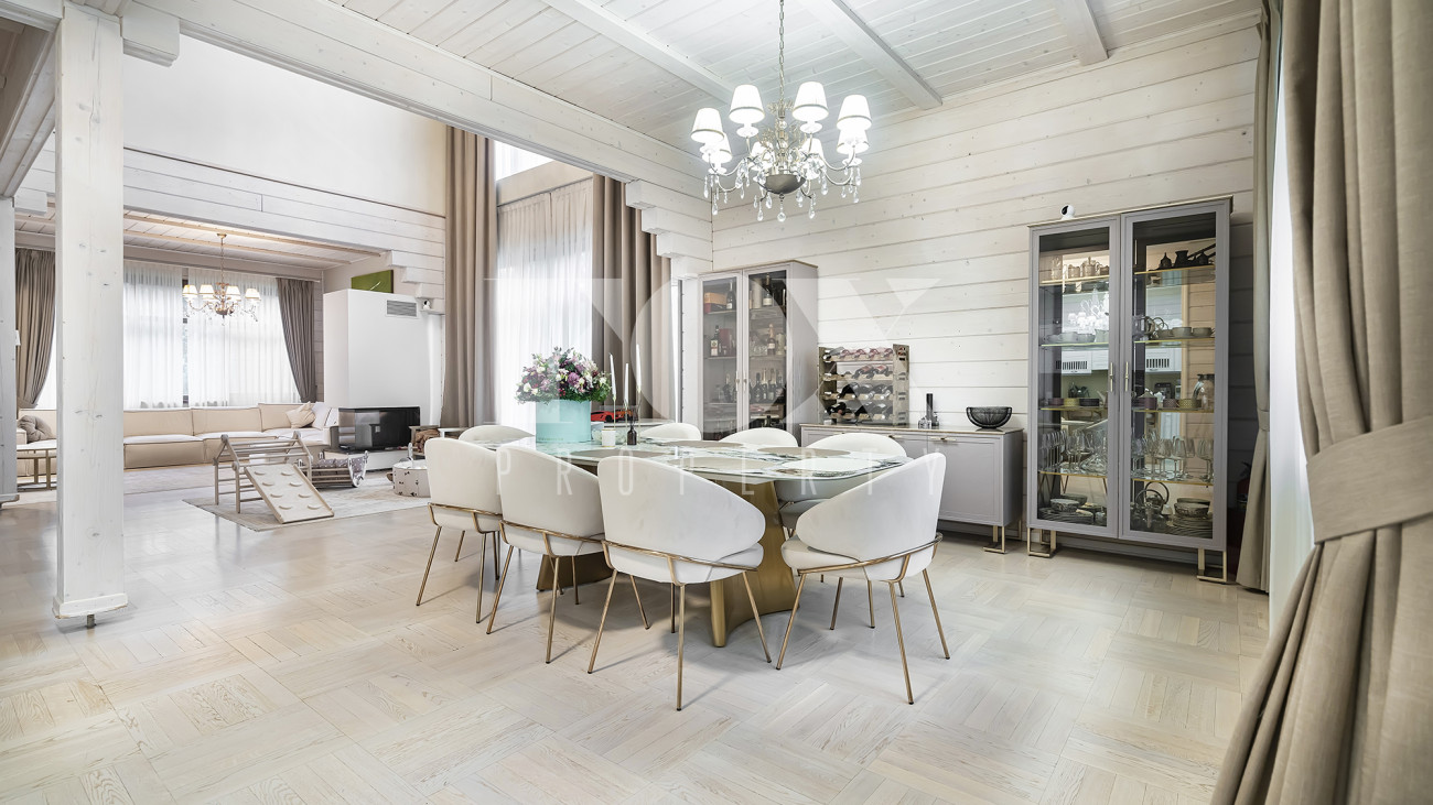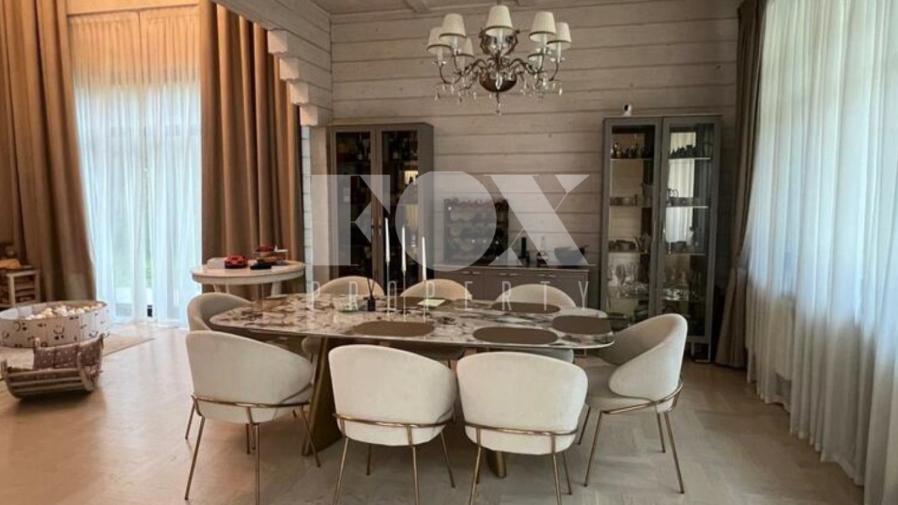 Деревянный дом в КП «Горки-8» «под ключ» с мебелью 550.3 кв.м. 3-4 спальни, кабинет, СПА.