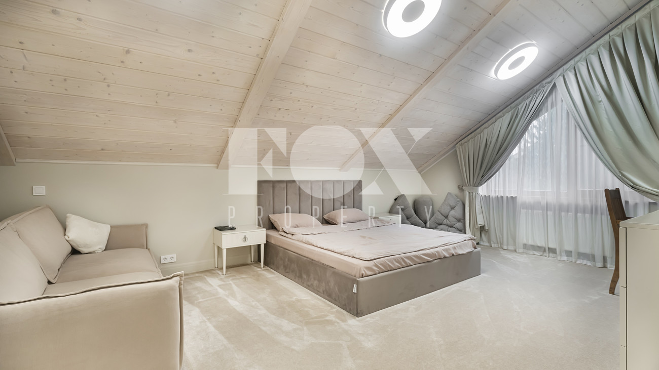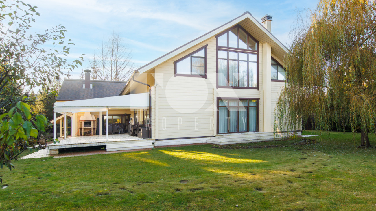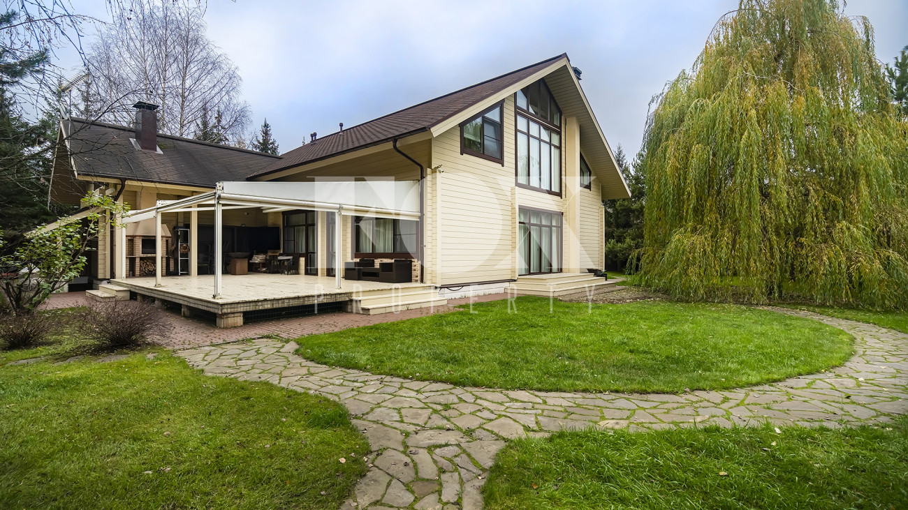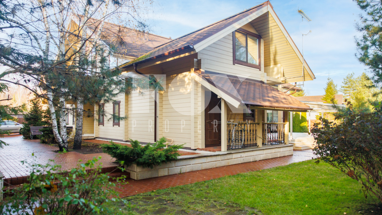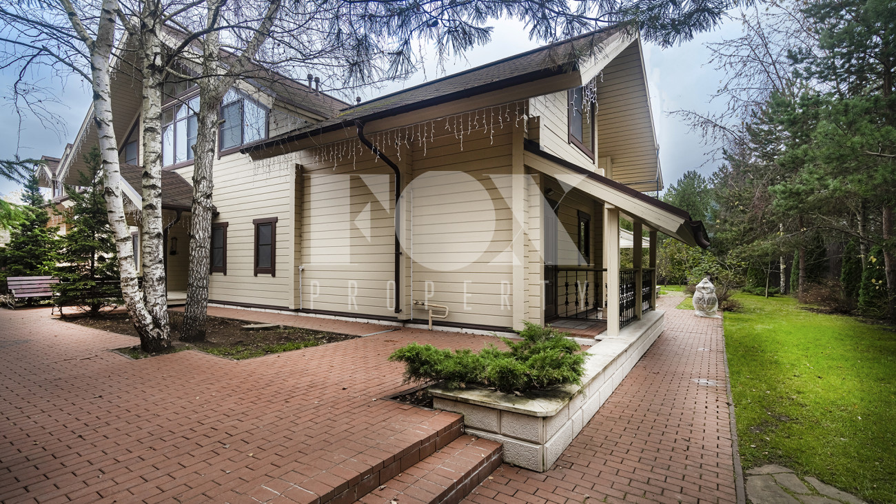 Деревянный дом в КП «Горки-8» «под ключ» с мебелью 550.3 кв.м. 3-4 спальни, кабинет, СПА.