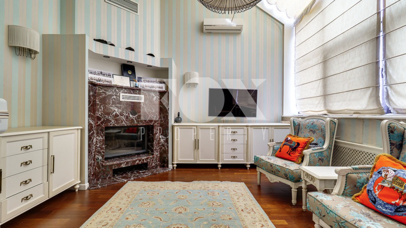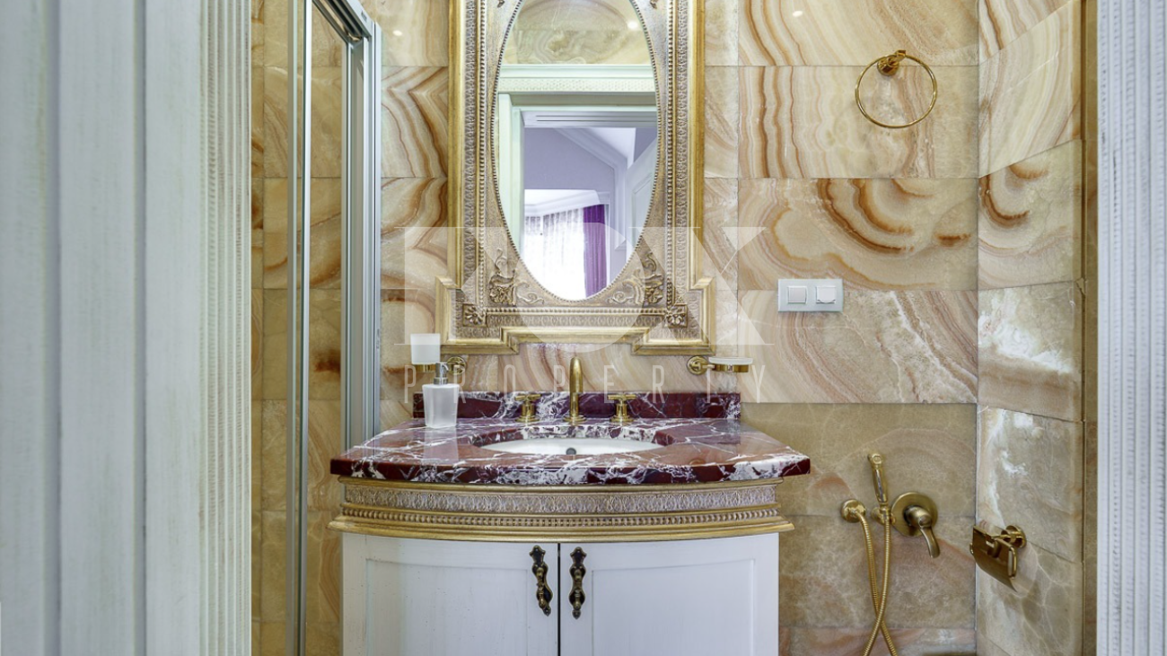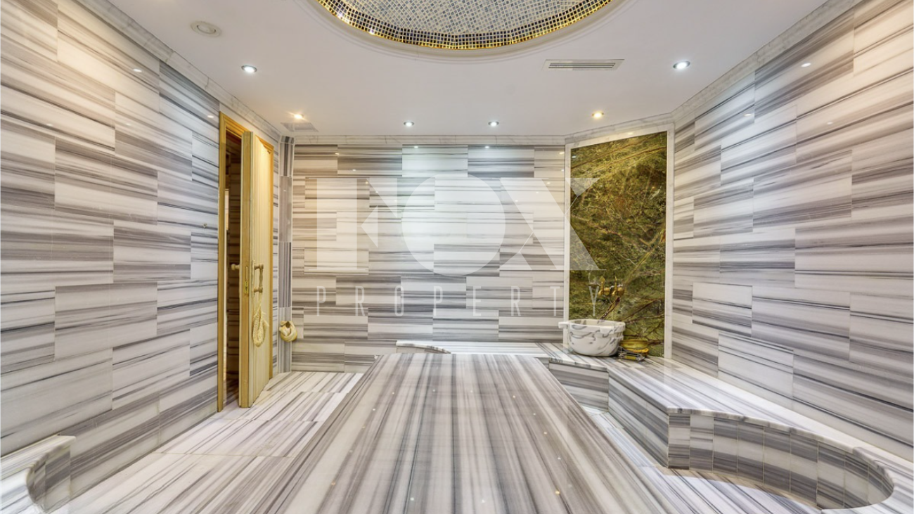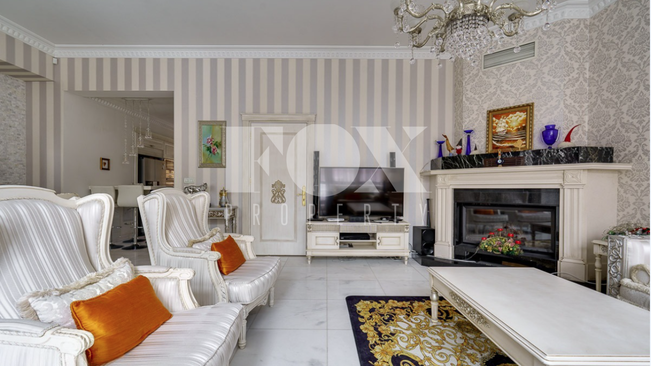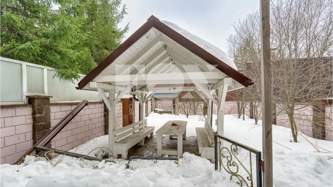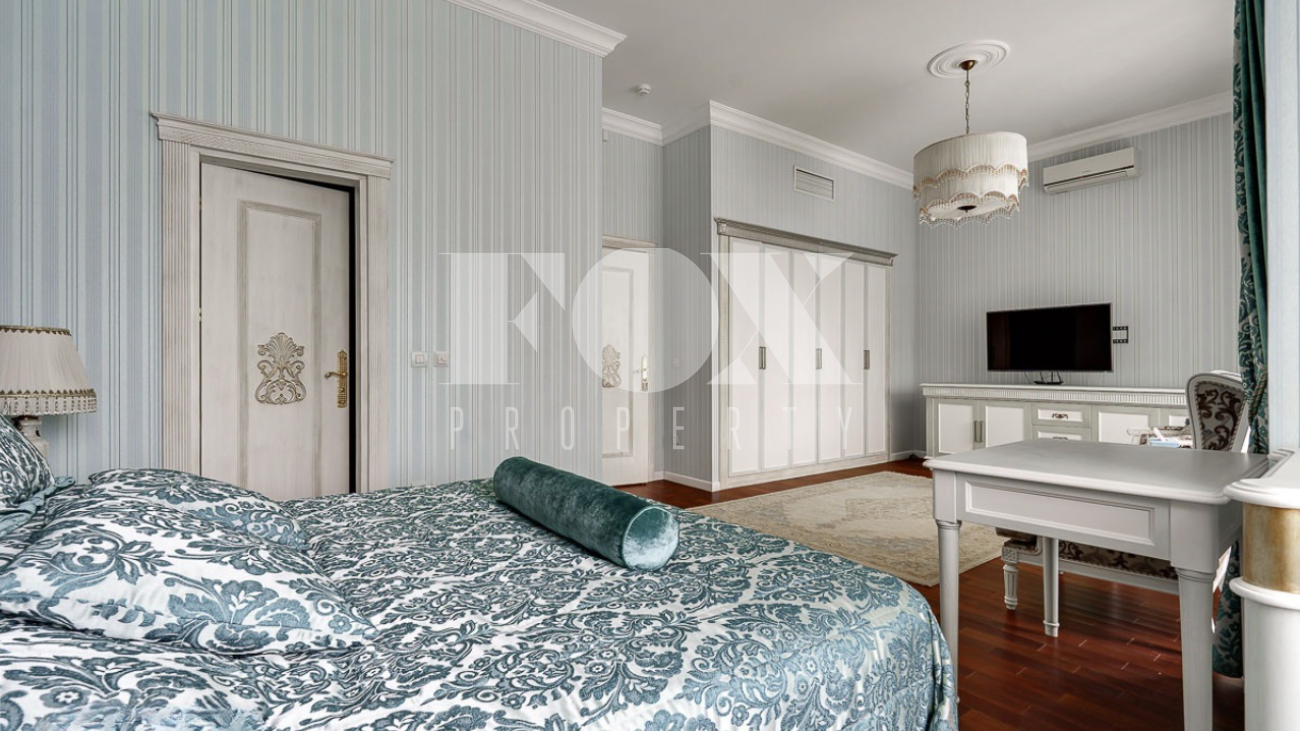 Таунхаус площадью 400 кв.м расположен на небольшом участке в коттеджном поселке "Горки-8". В таунхаусе предусмотрены: 4 спальни, 5 с/у, гостиная, кухня, столовая, сезонная гардеробная, хаммам, купель и сауна. На участке также есть 2 паковочных места и небольшая летняя беседка.