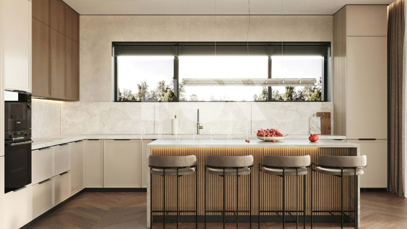Дом построен в современном стиле из высококачественных материалов. Панорамные окна, большая площадь остекления и высокие потолки делают особняк невероятно просторным и светлым. Центральные коммуникации, интернет, телефон и кабельное ТВ позволят с комфортом жить за городом круглый год.