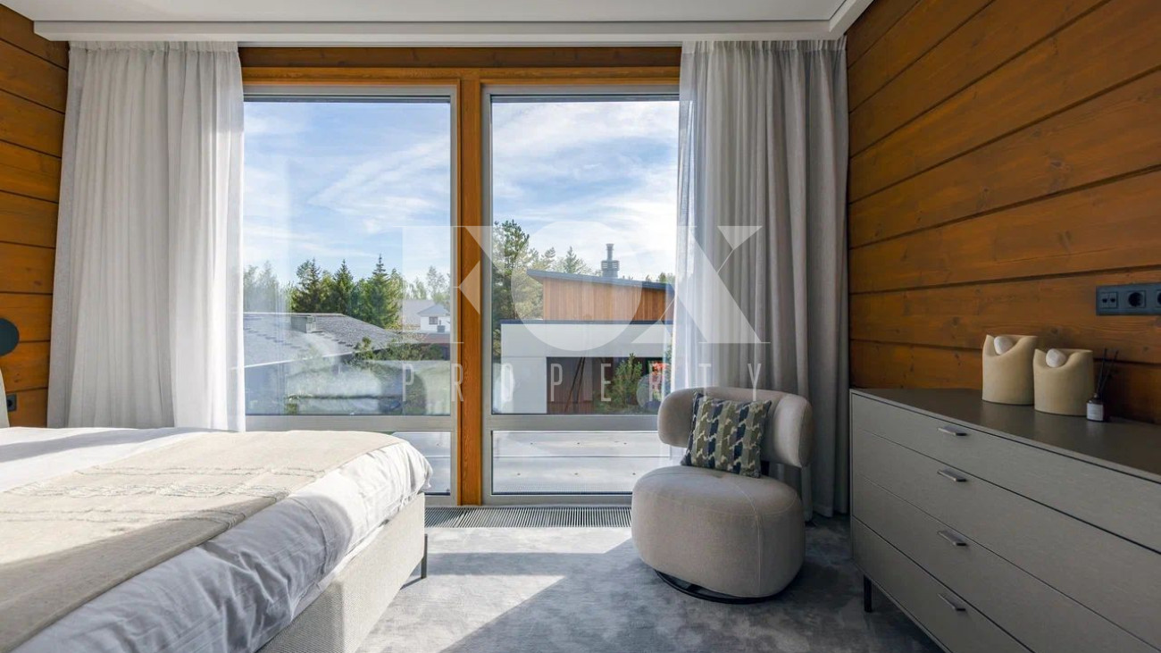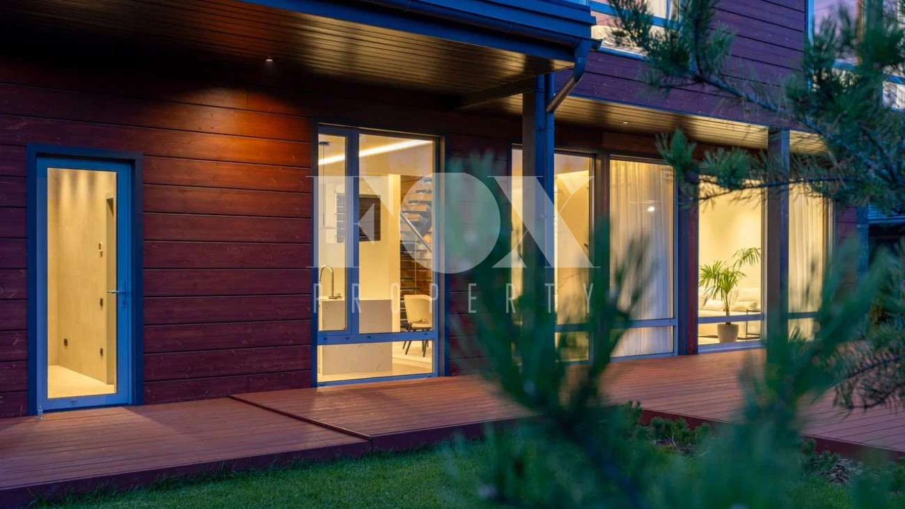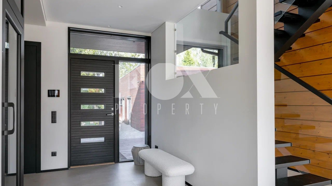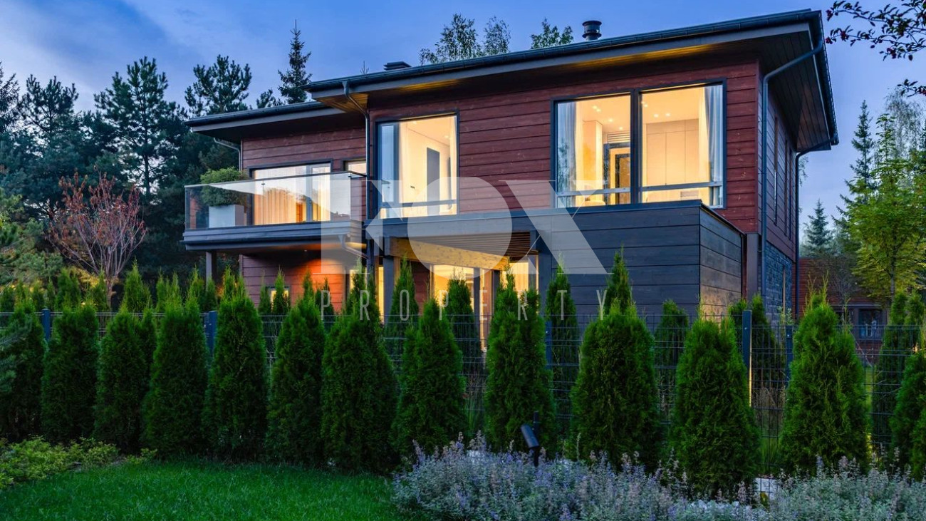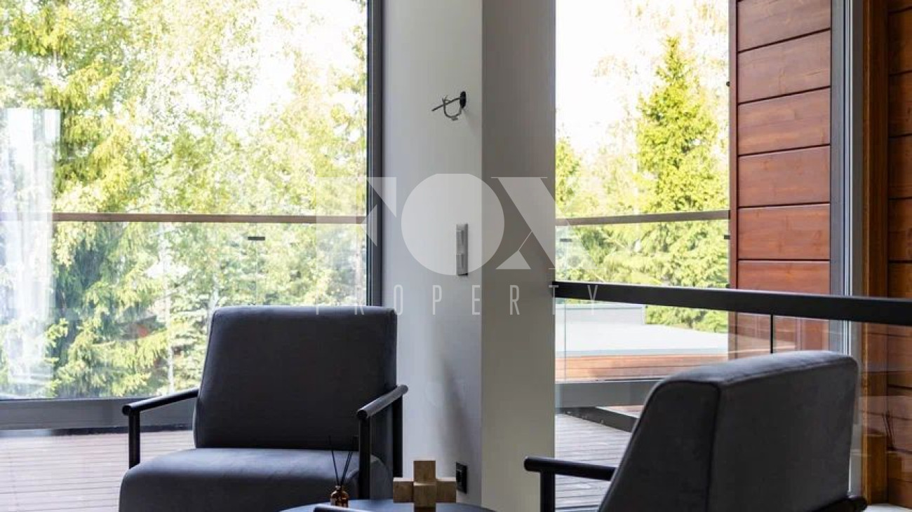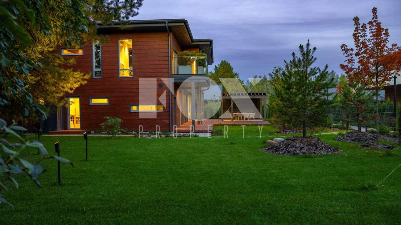 Новый дом из финского клееного бруса (финская сосна) по безусадочной технологии. Предлагается «под ключ» с мебелью. В теплом контуре дома расположена сауна с обшивкой из термообработанной осины. Площадь 529 кв.м с учетом террас, балконов и гаража на 2 м/м с квартирой для персонала. В отделке используются качественные отделочные материалы и техника: кухни Leight, камины Tulikivi, напольные покрытия Coswick, внутрипольные конвекторы Varmann, входные двери Comtur, межкомнатные двери Ferrero Legno, керамогранит Atlas Concorde, сантехника Gessi, краски Benjamin Moore, декоративный свет Penta, бытовая техника Gaggenau, Neff, финская сауна, нидерландский ковролин, установлены канальные системы вентиляции, кондиционирования, умный дом Lutron.