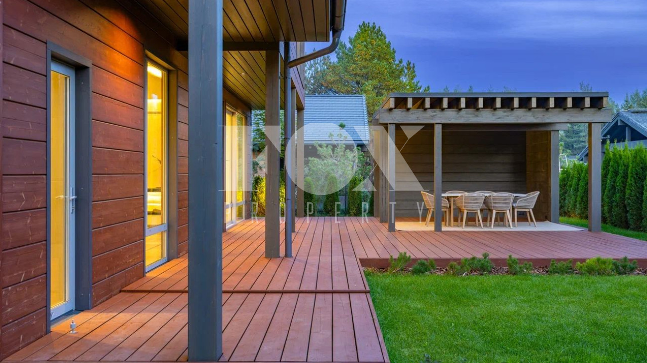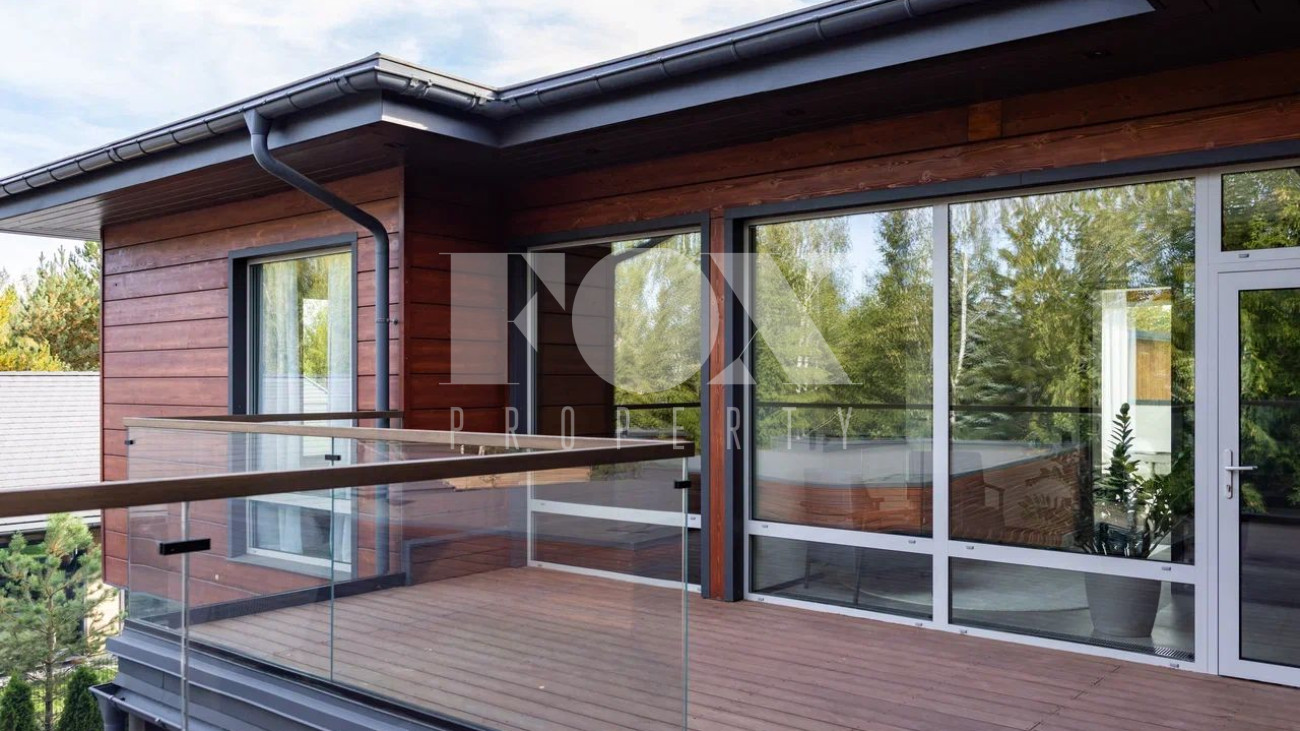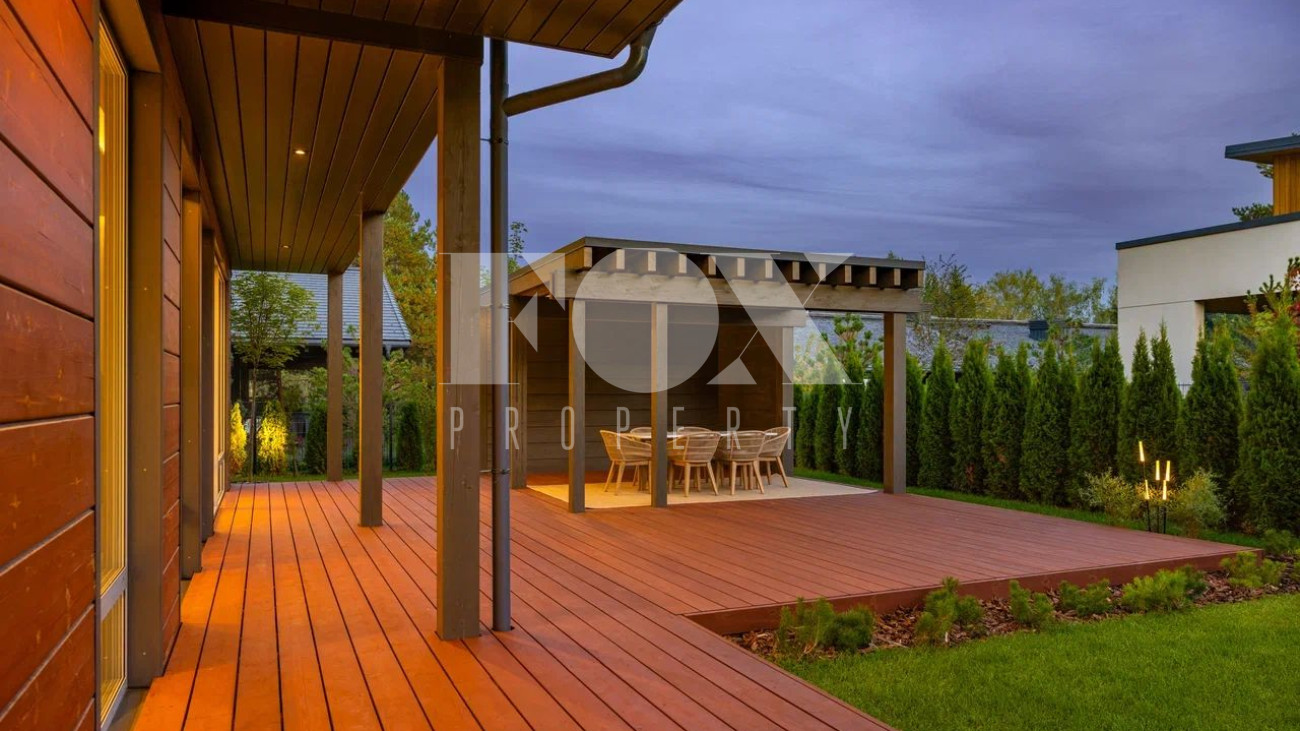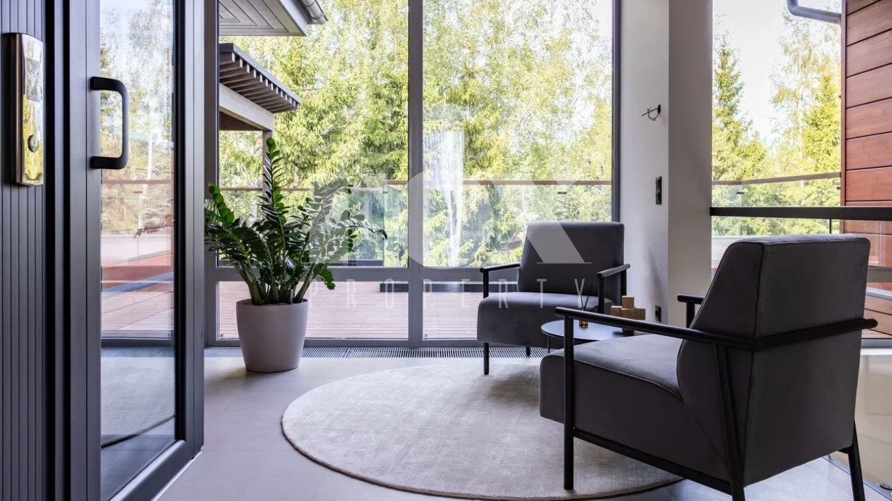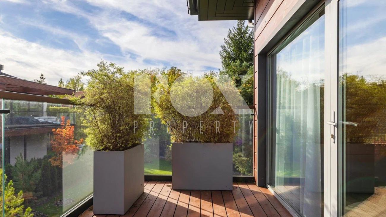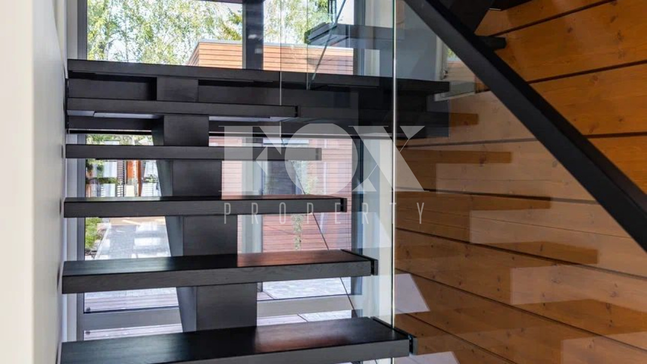Новый дом из финского клееного бруса (финская сосна) по безусадочной технологии. Предлагается «под ключ» с мебелью. В теплом контуре дома расположена сауна с обшивкой из термообработанной осины. Площадь 529 кв.м с учетом террас, балконов и гаража на 2 м/м с квартирой для персонала. В отделке используются качественные отделочные материалы и техника: кухни Leight, камины Tulikivi, напольные покрытия Coswick, внутрипольные конвекторы Varmann, входные двери Comtur, межкомнатные двери Ferrero Legno, керамогранит Atlas Concorde, сантехника Gessi, краски Benjamin Moore, декоративный свет Penta, бытовая техника Gaggenau, Neff, финская сауна, нидерландский ковролин, установлены канальные системы вентиляции, кондиционирования, умный дом Lutron.