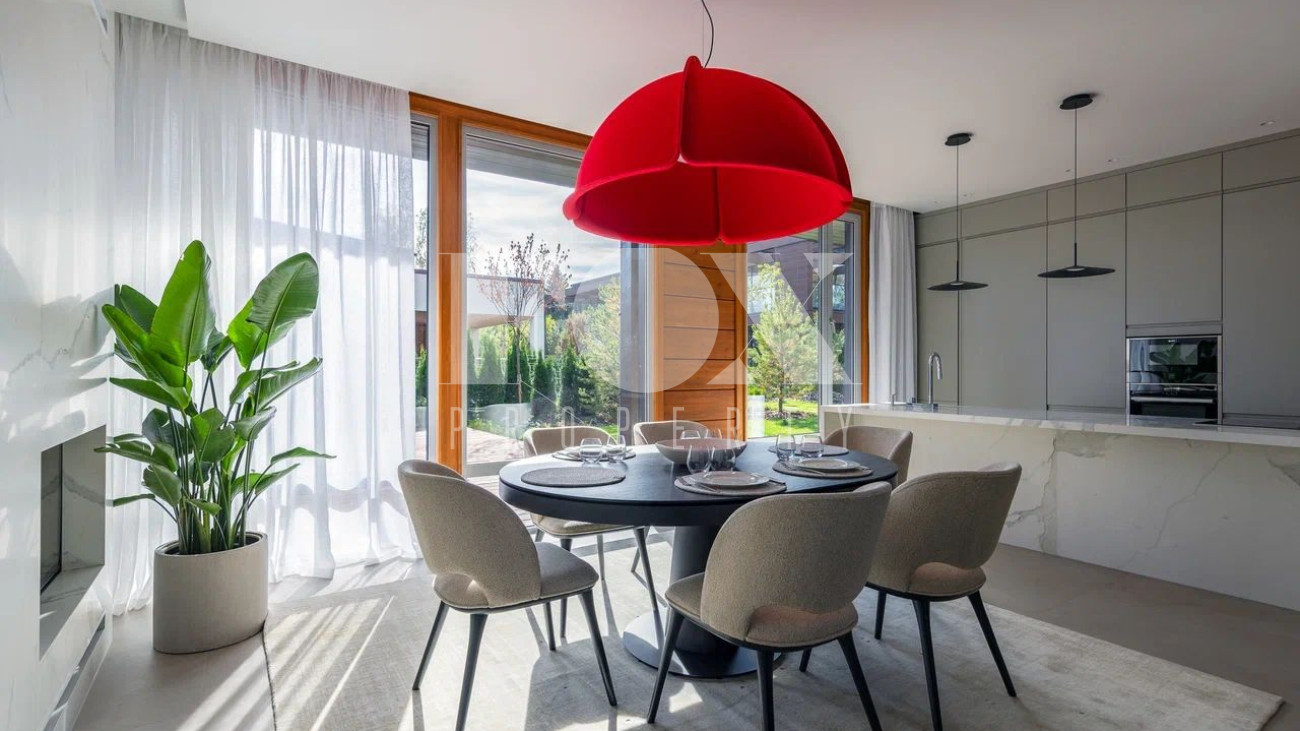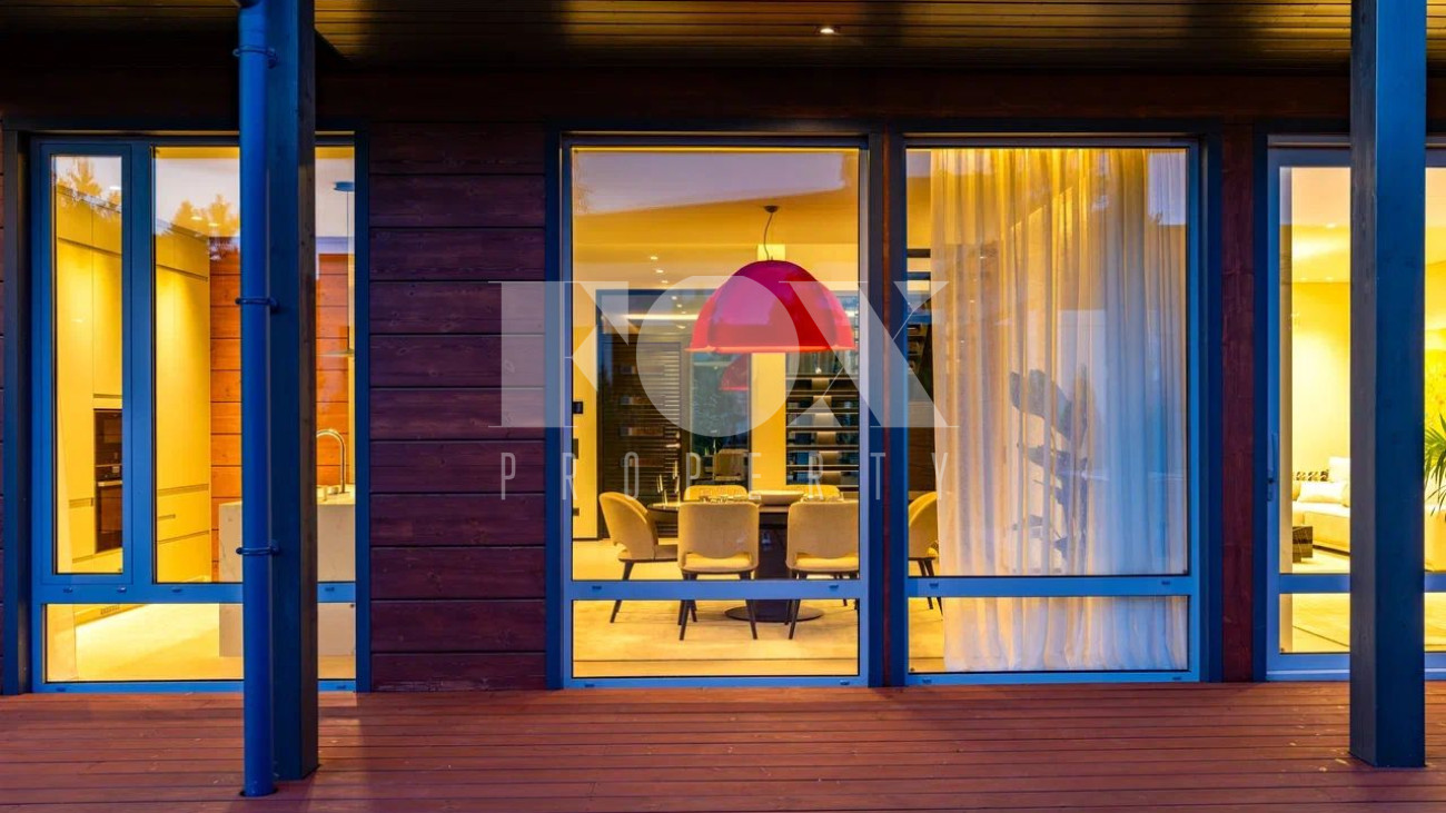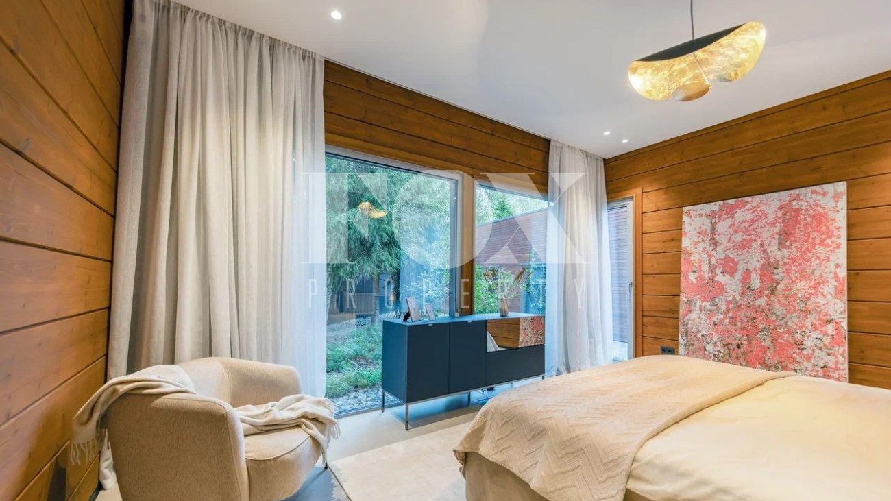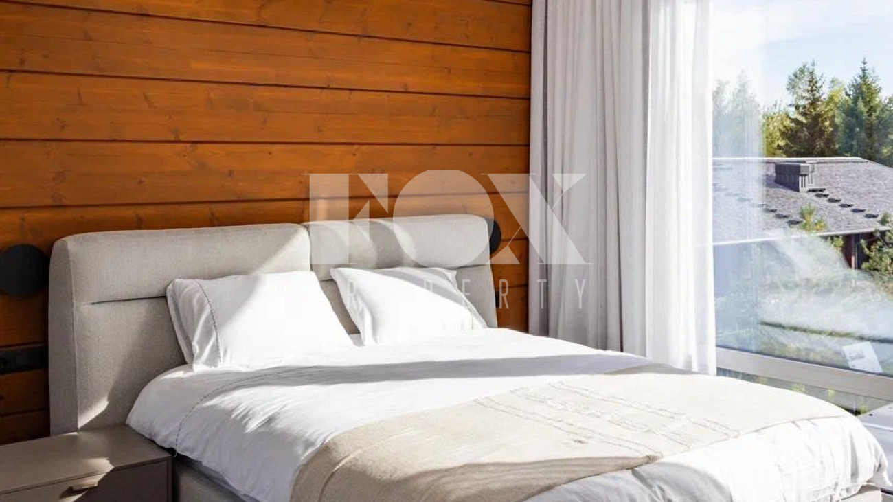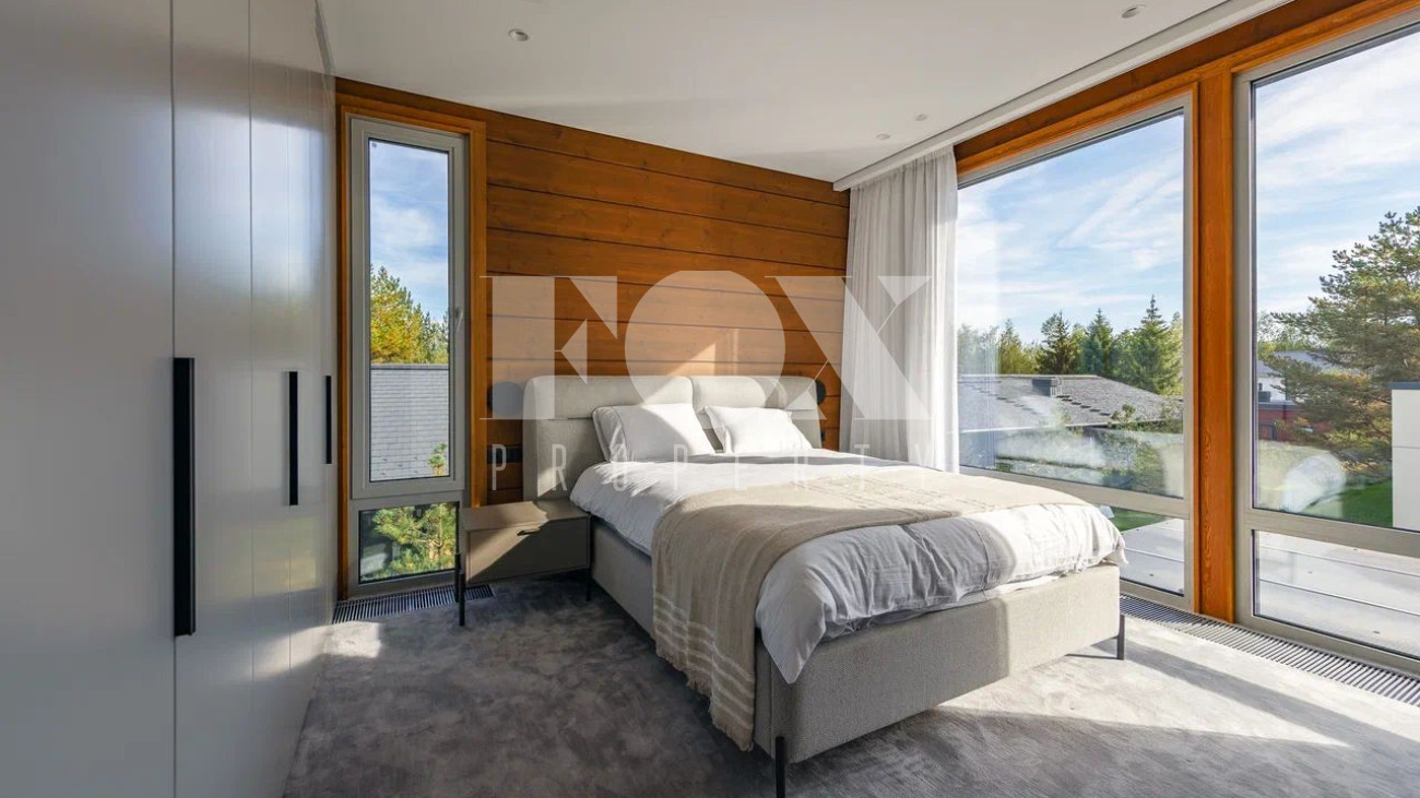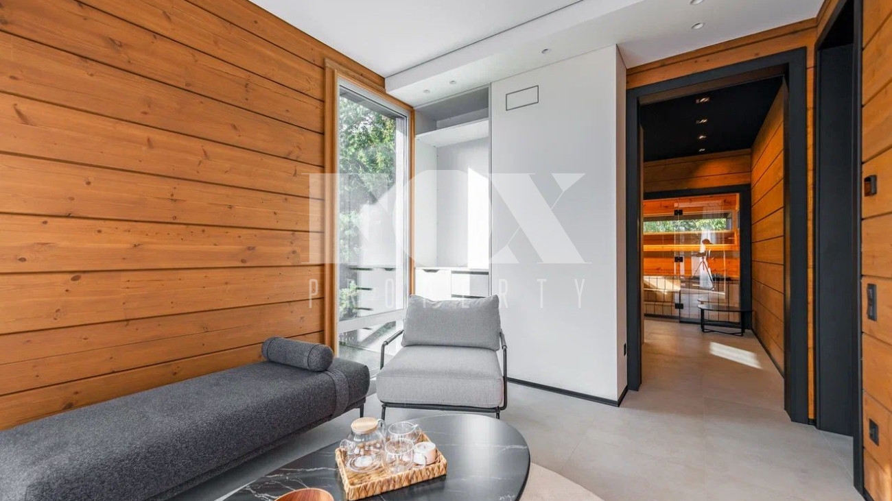 Новый дом из финского клееного бруса (финская сосна) по безусадочной технологии. Предлагается «под ключ» с мебелью. В теплом контуре дома расположена сауна с обшивкой из термообработанной осины. Площадь 529 кв.м с учетом террас, балконов и гаража на 2 м/м с квартирой для персонала. В отделке используются качественные отделочные материалы и техника: кухни Leight, камины Tulikivi, напольные покрытия Coswick, внутрипольные конвекторы Varmann, входные двери Comtur, межкомнатные двери Ferrero Legno, керамогранит Atlas Concorde, сантехника Gessi, краски Benjamin Moore, декоративный свет Penta, бытовая техника Gaggenau, Neff, финская сауна, нидерландский ковролин, установлены канальные системы вентиляции, кондиционирования, умный дом Lutron.