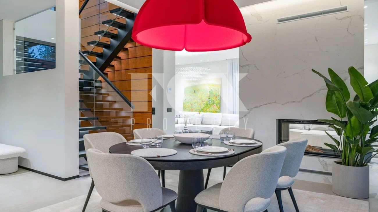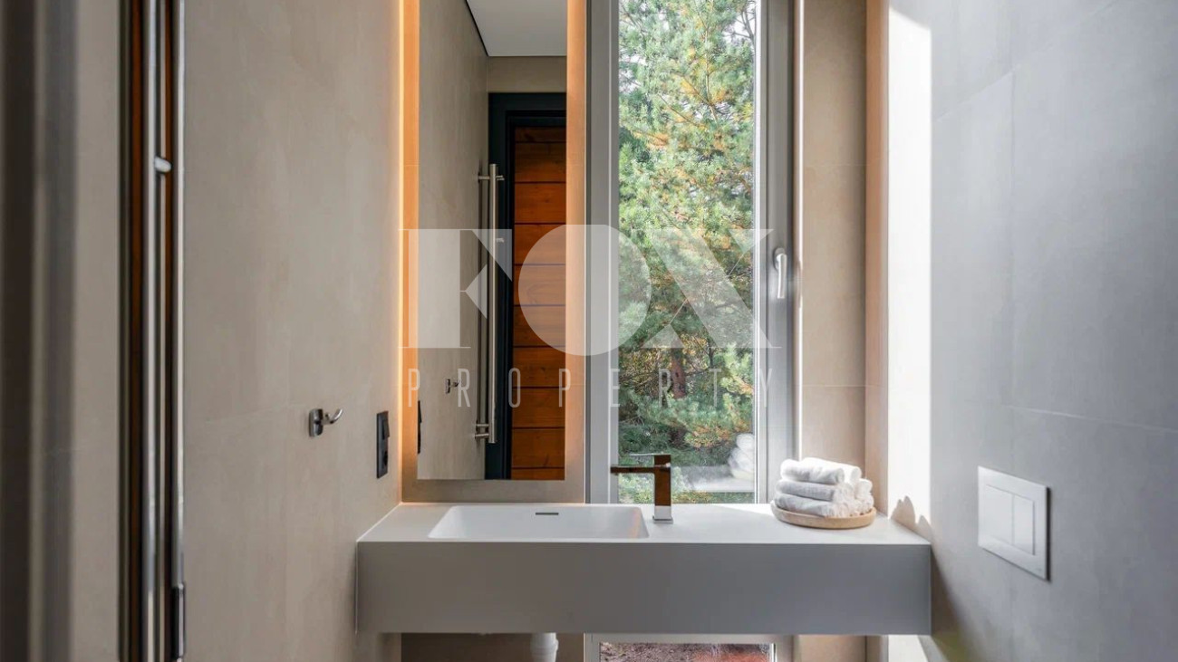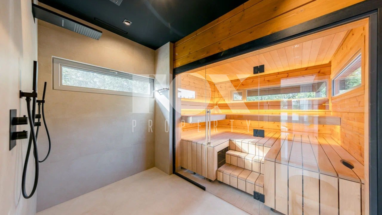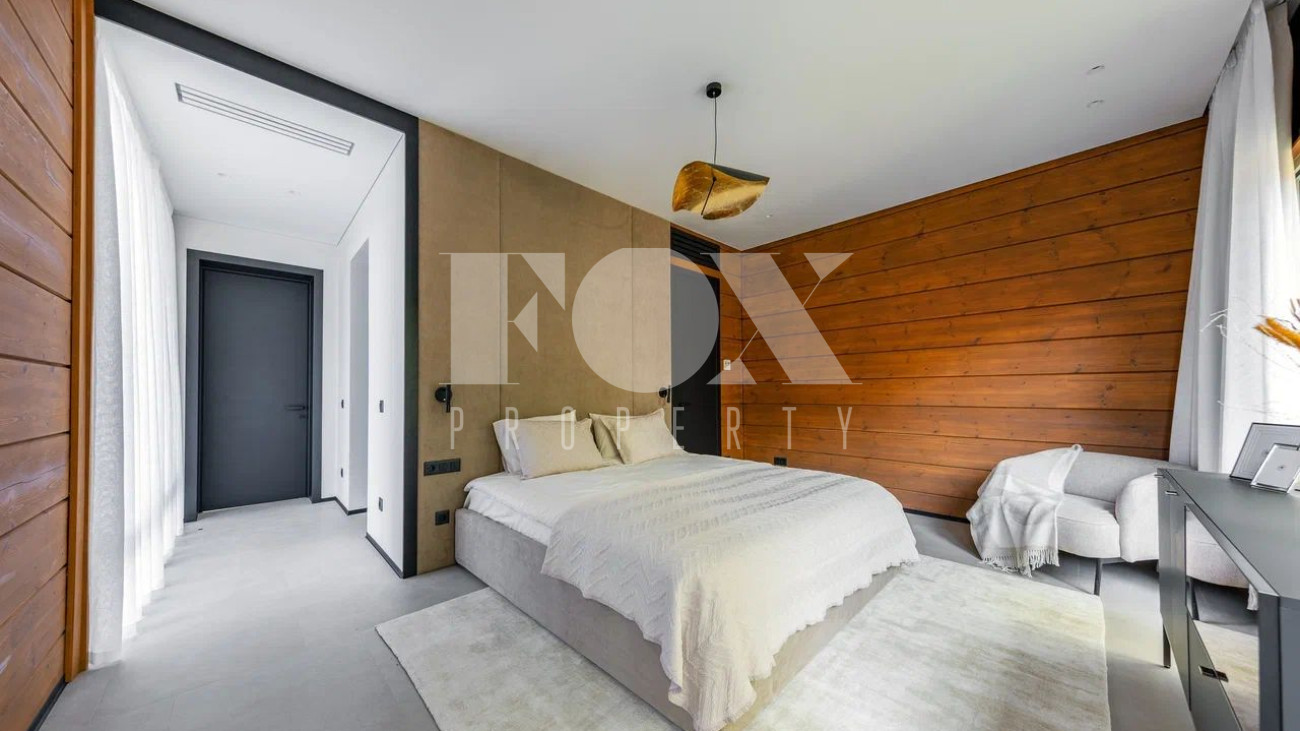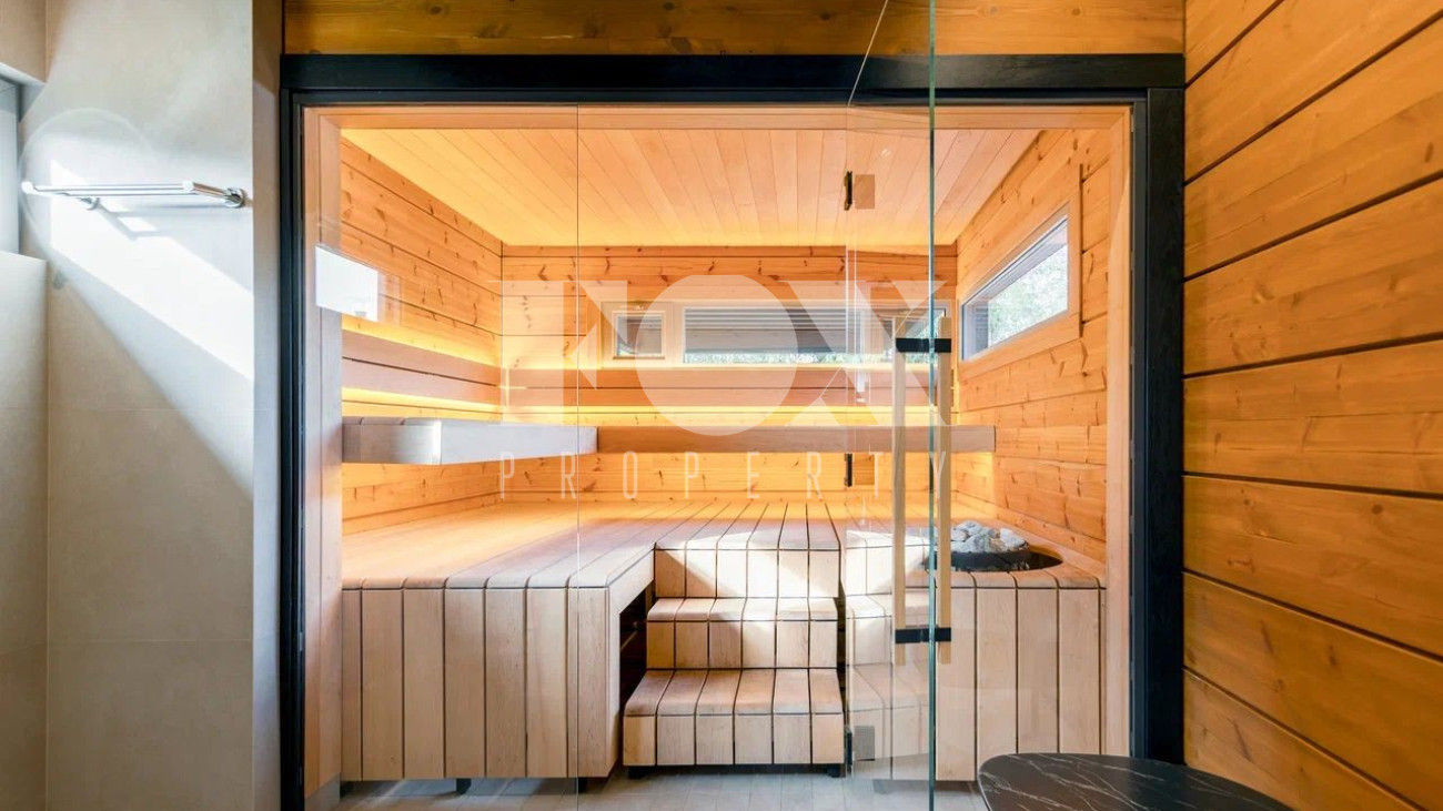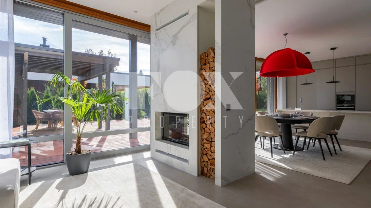Новый дом из финского клееного бруса (финская сосна) по безусадочной технологии. Предлагается «под ключ» с мебелью. В теплом контуре дома расположена сауна с обшивкой из термообработанной осины. Площадь 529 кв.м с учетом террас, балконов и гаража на 2 м/м с квартирой для персонала. В отделке используются качественные отделочные материалы и техника: кухни Leight, камины Tulikivi, напольные покрытия Coswick, внутрипольные конвекторы Varmann, входные двери Comtur, межкомнатные двери Ferrero Legno, керамогранит Atlas Concorde, сантехника Gessi, краски Benjamin Moore, декоративный свет Penta, бытовая техника Gaggenau, Neff, финская сауна, нидерландский ковролин, установлены канальные системы вентиляции, кондиционирования, умный дом Lutron.