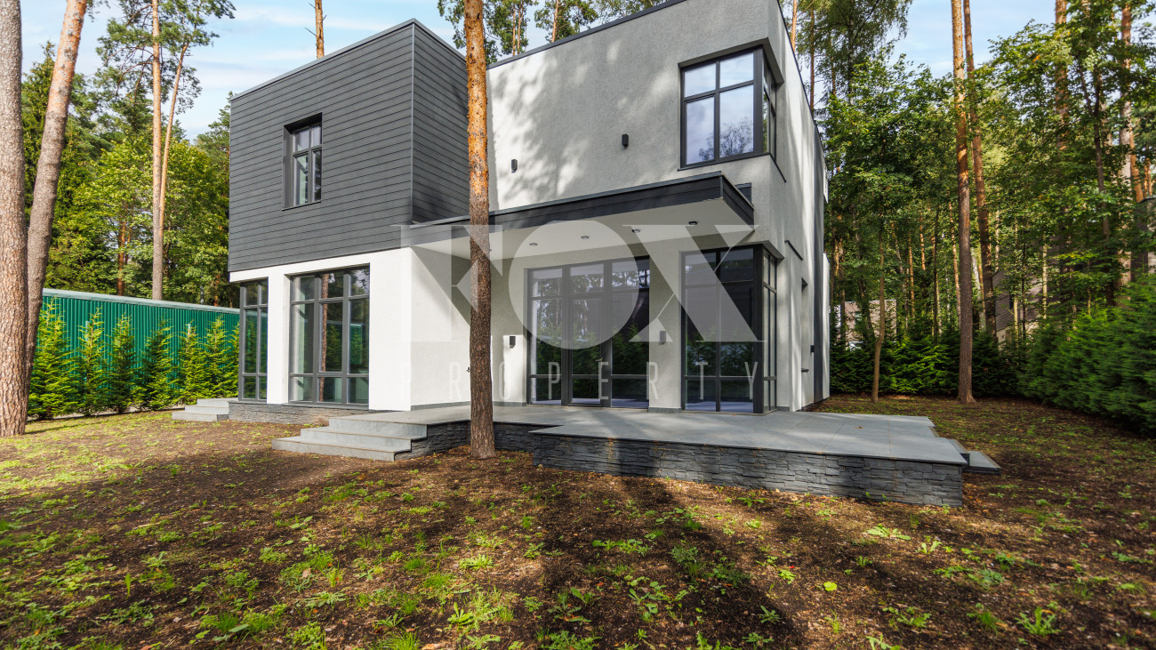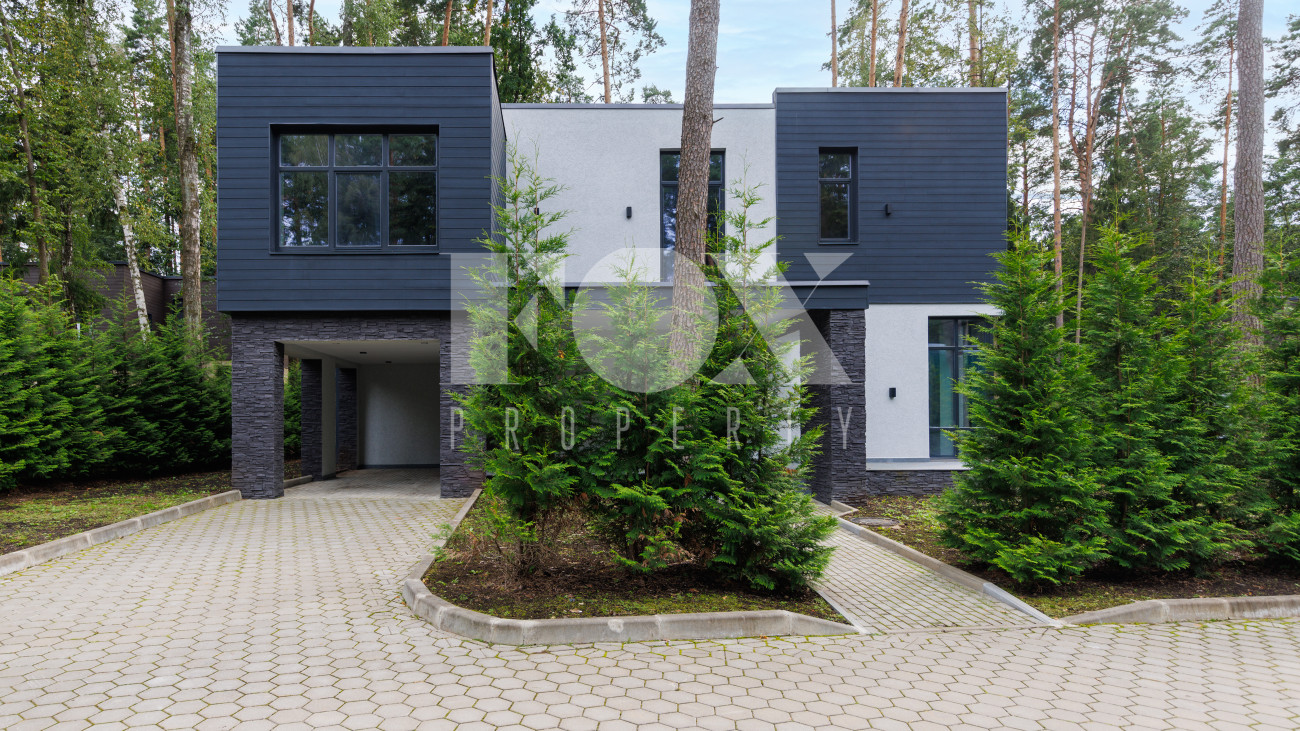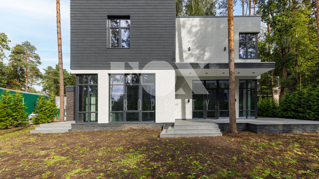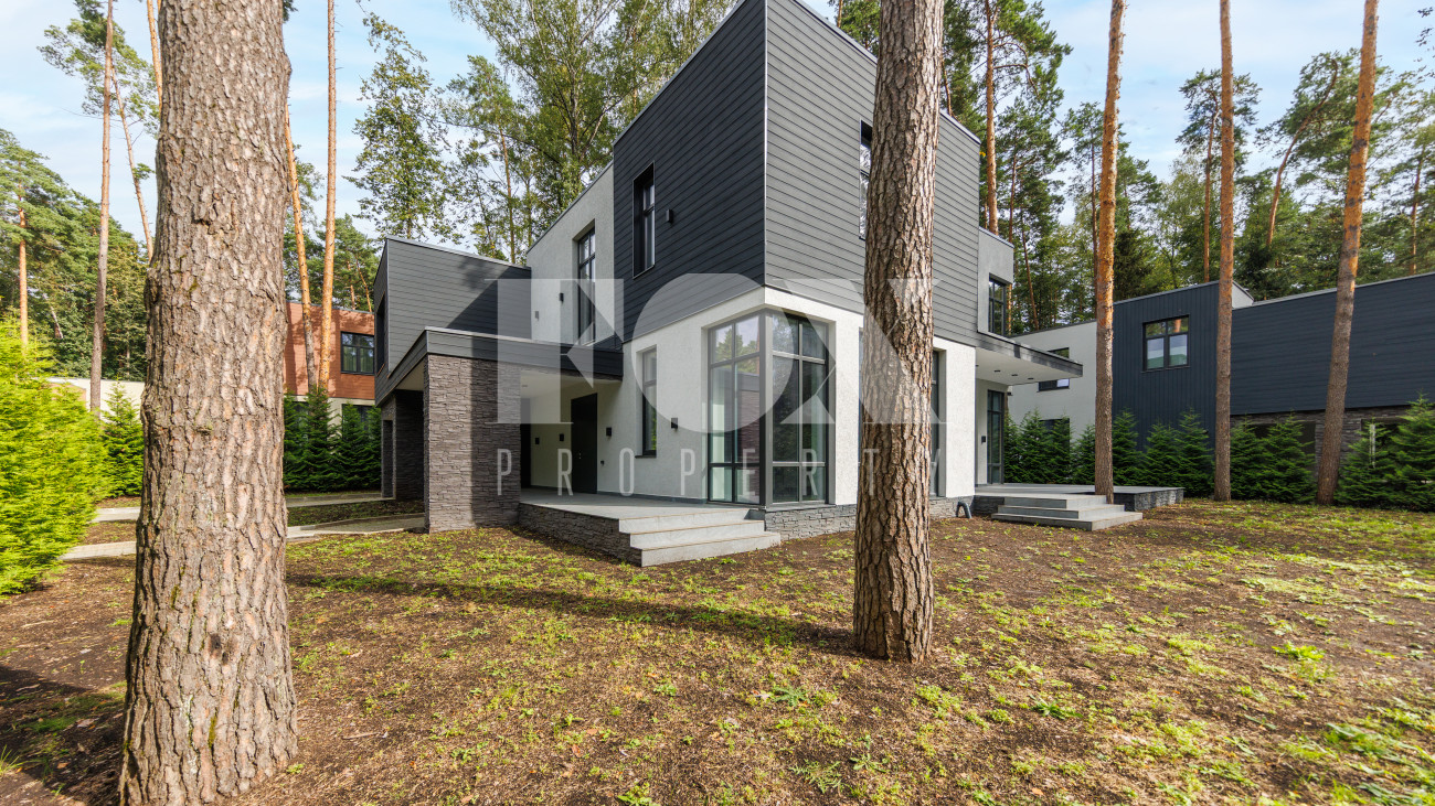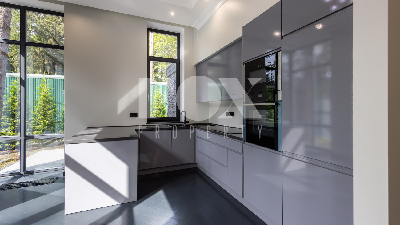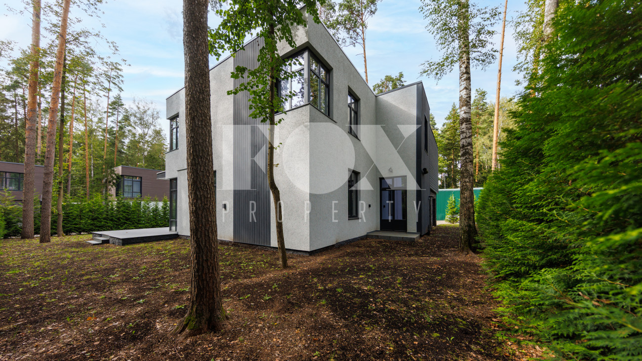 Современный дом "под ключ" в камерном коттеджном поселке на 9 домов в окружении реликтового соснового бора. Установлена современная система приточной вентиляции. Свайный фундамент из монолитного железобетона, перекрытия сборный и монолитный железобетон, установлены деревянные окна с двухкамерными стеклопакетами. На полу в гостиной, кухне, спальнях положили инженерную дубовую доску. Где керамогранит, (ванные комнаты, холл первого и второго этажей), везде теплые водяные полы.