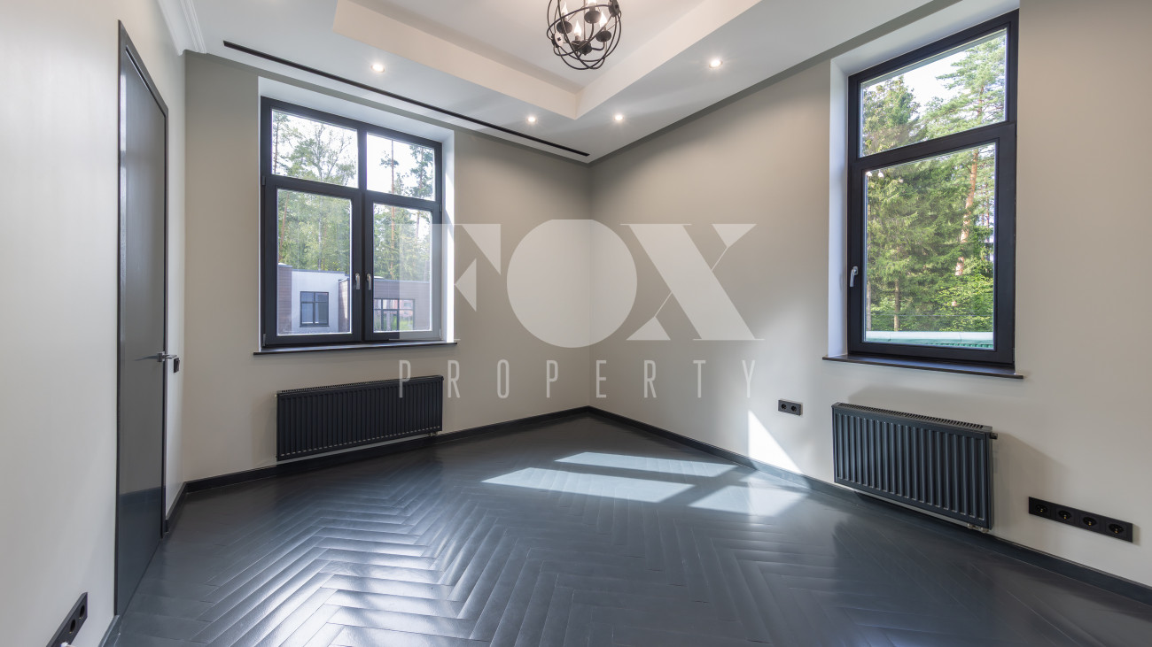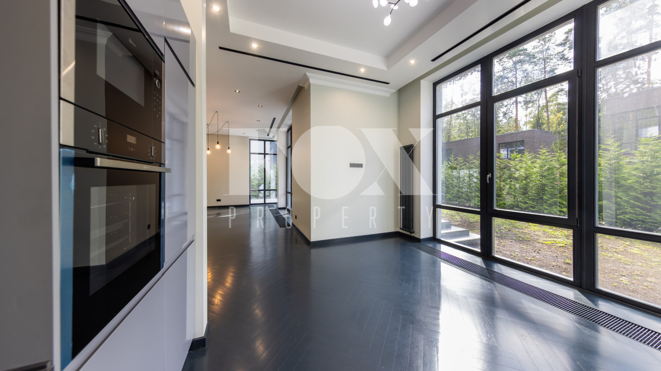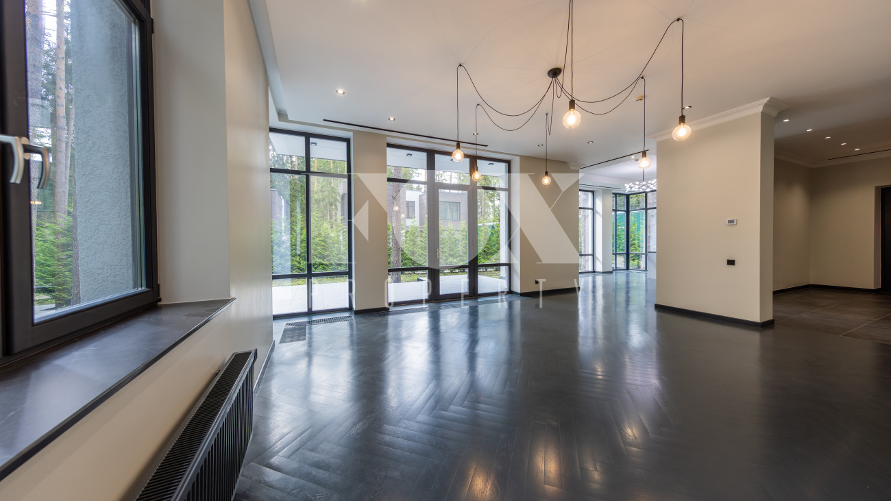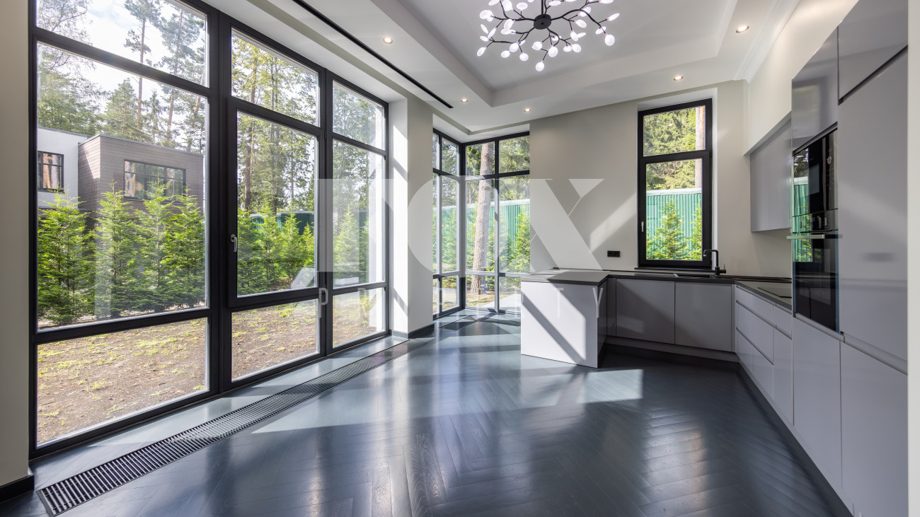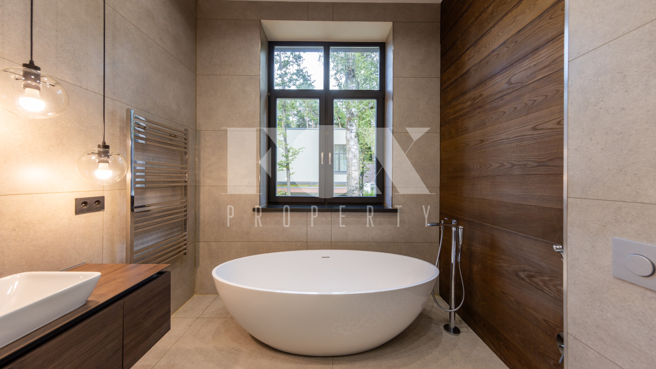 Современный дом "под ключ" в камерном коттеджном поселке на 9 домов в окружении реликтового соснового бора. Установлена современная система приточной вентиляции. Свайный фундамент из монолитного железобетона, перекрытия сборный и монолитный железобетон, установлены деревянные окна с двухкамерными стеклопакетами. На полу в гостиной, кухне, спальнях положили инженерную дубовую доску. Где керамогранит, (ванные комнаты, холл первого и второго этажей), везде теплые водяные полы.