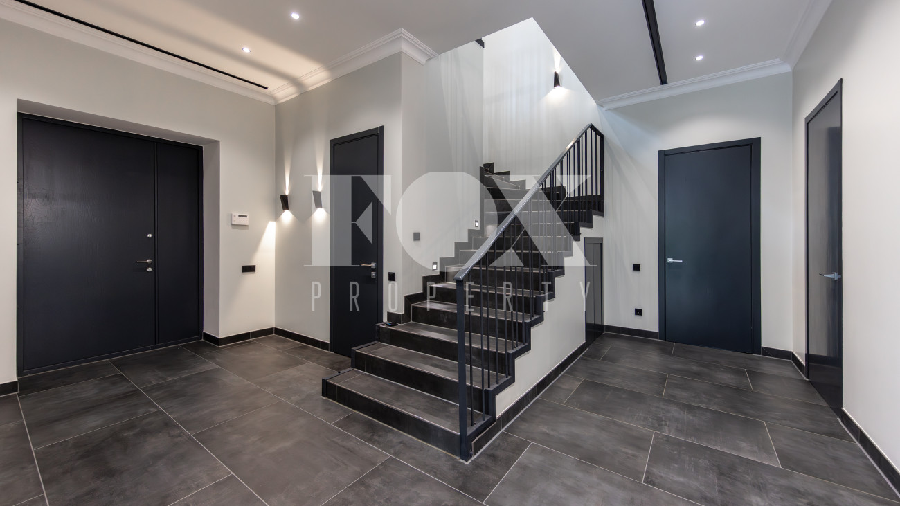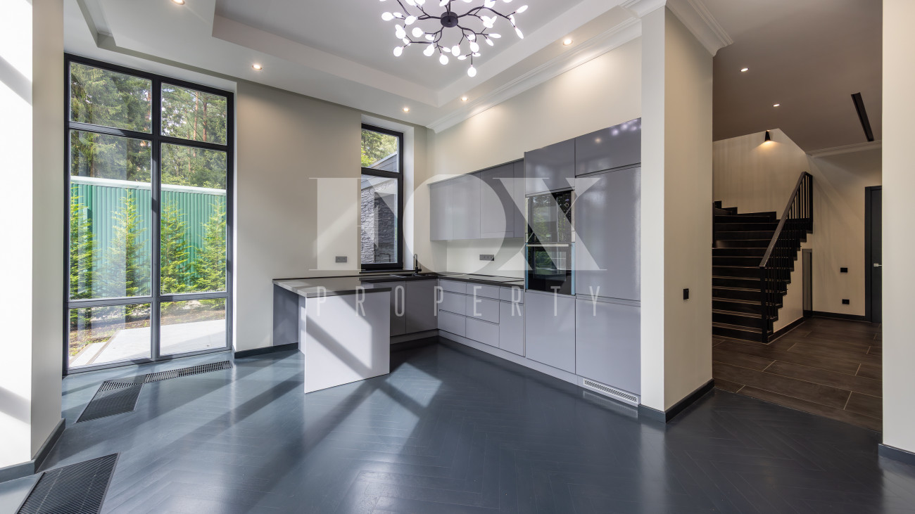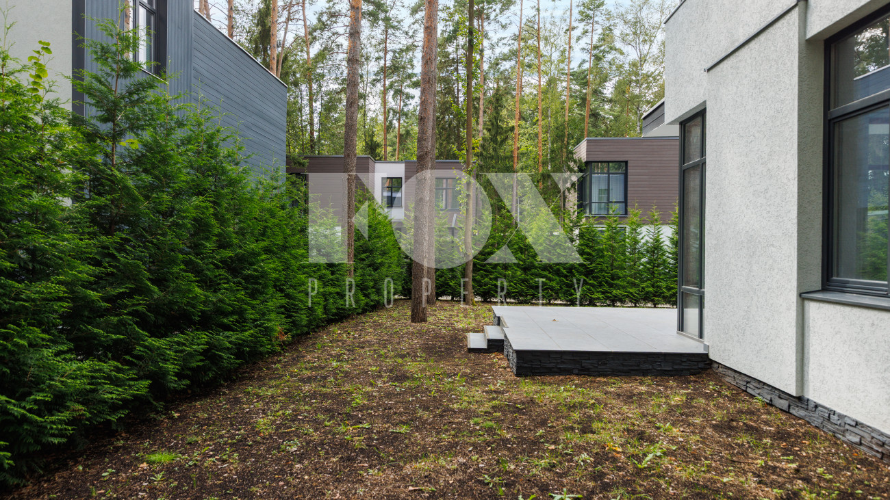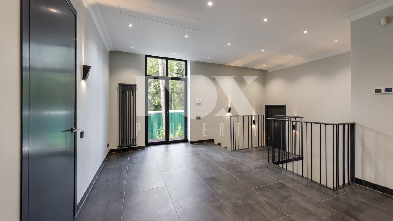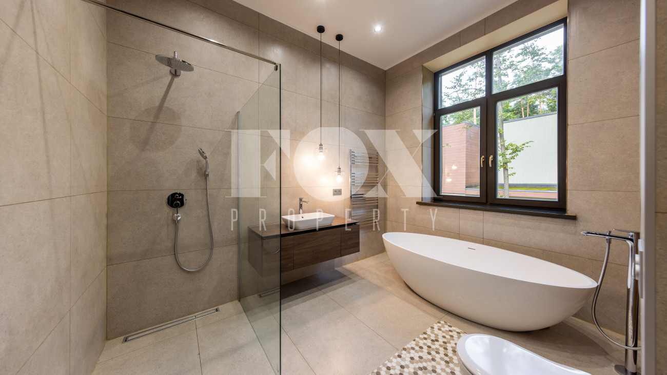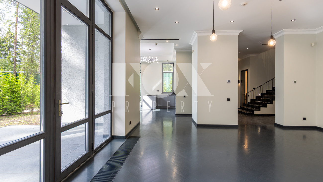 Современный дом "под ключ" в камерном коттеджном поселке на 9 домов в окружении реликтового соснового бора. Установлена современная система приточной вентиляции. Свайный фундамент из монолитного железобетона, перекрытия сборный и монолитный железобетон, установлены деревянные окна с двухкамерными стеклопакетами. На полу в гостиной, кухне, спальнях положили инженерную дубовую доску. Где керамогранит, (ванные комнаты, холл первого и второго этажей), везде теплые водяные полы.
