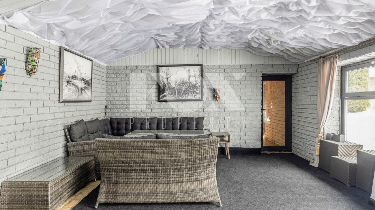 Дом в КП Лайково. На участке расположен навес на 2 м/м, барбекю, баня с блоком для персонала