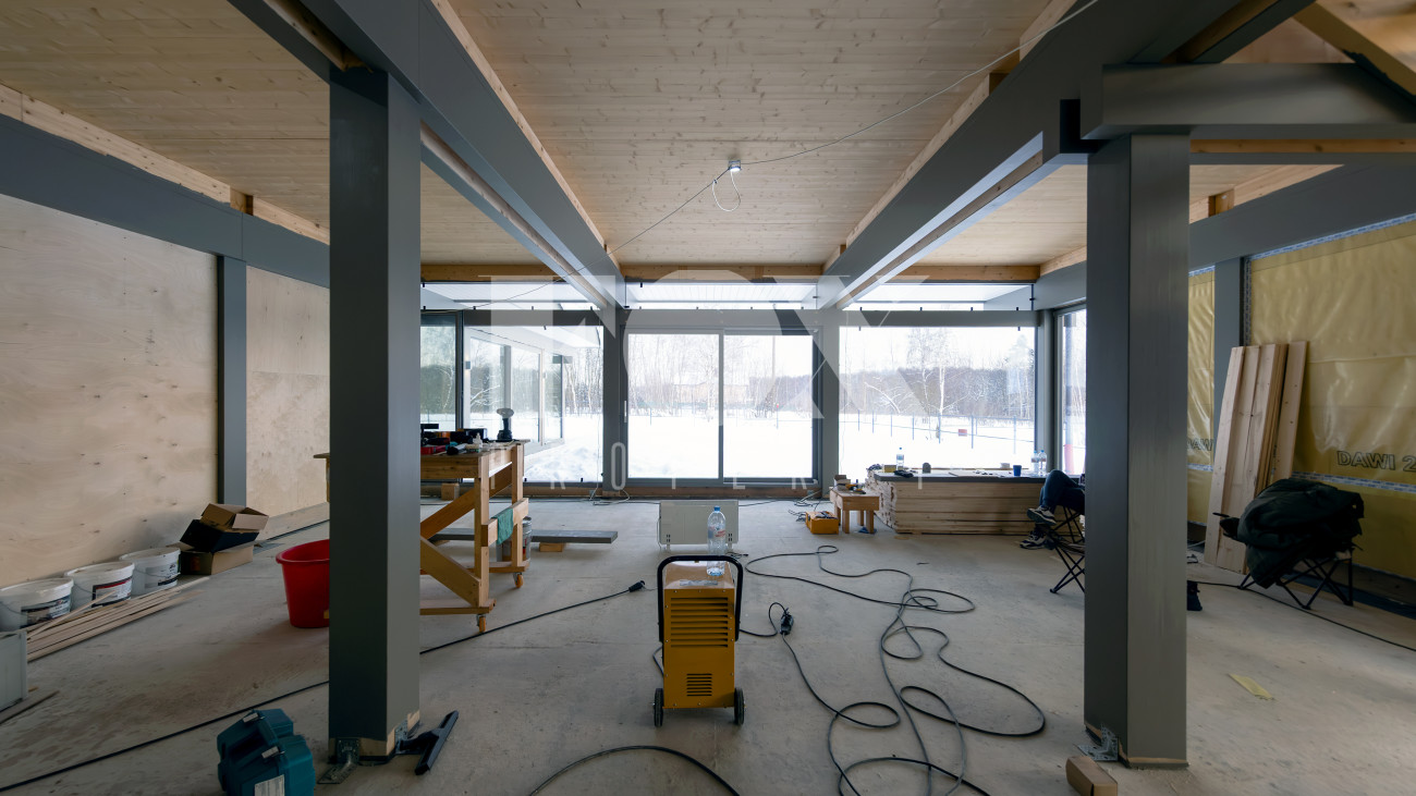 Дом построен по самым современным немецким технологиям из клееного бруса премиального качества компании «Сегежа». Клееные силовые конструкции собраны на скрытый крепеж ROTHOBLAAS и EUROTEC, отделка бруса выполнена в мебельном качестве как в интерьере так и в экстерьере. Монолитное перекрытие из клееного бруса по технологии CLT (Cross laminated timber).