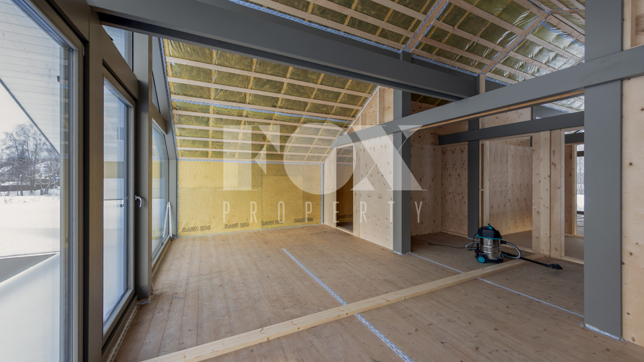 Дом соответствует высочайшему классу энергоэффективности А++. Широкоформатное панорамное остекление, стеклопакеты из закаленного стекла с энергосберегающим напылением и инертным газом аргон, подготовка под систему приточно-вытяжной вентиляции.