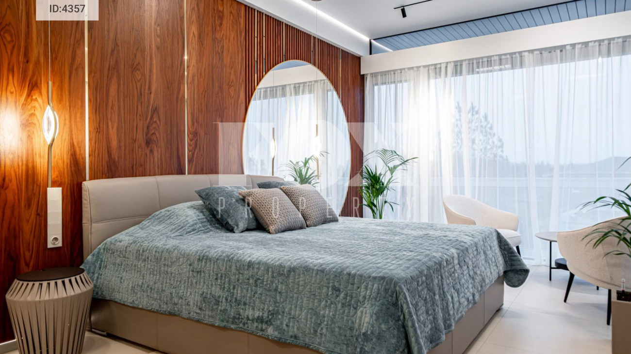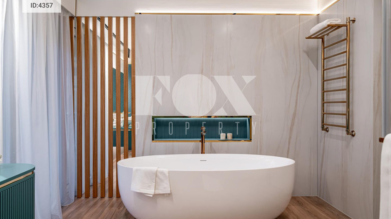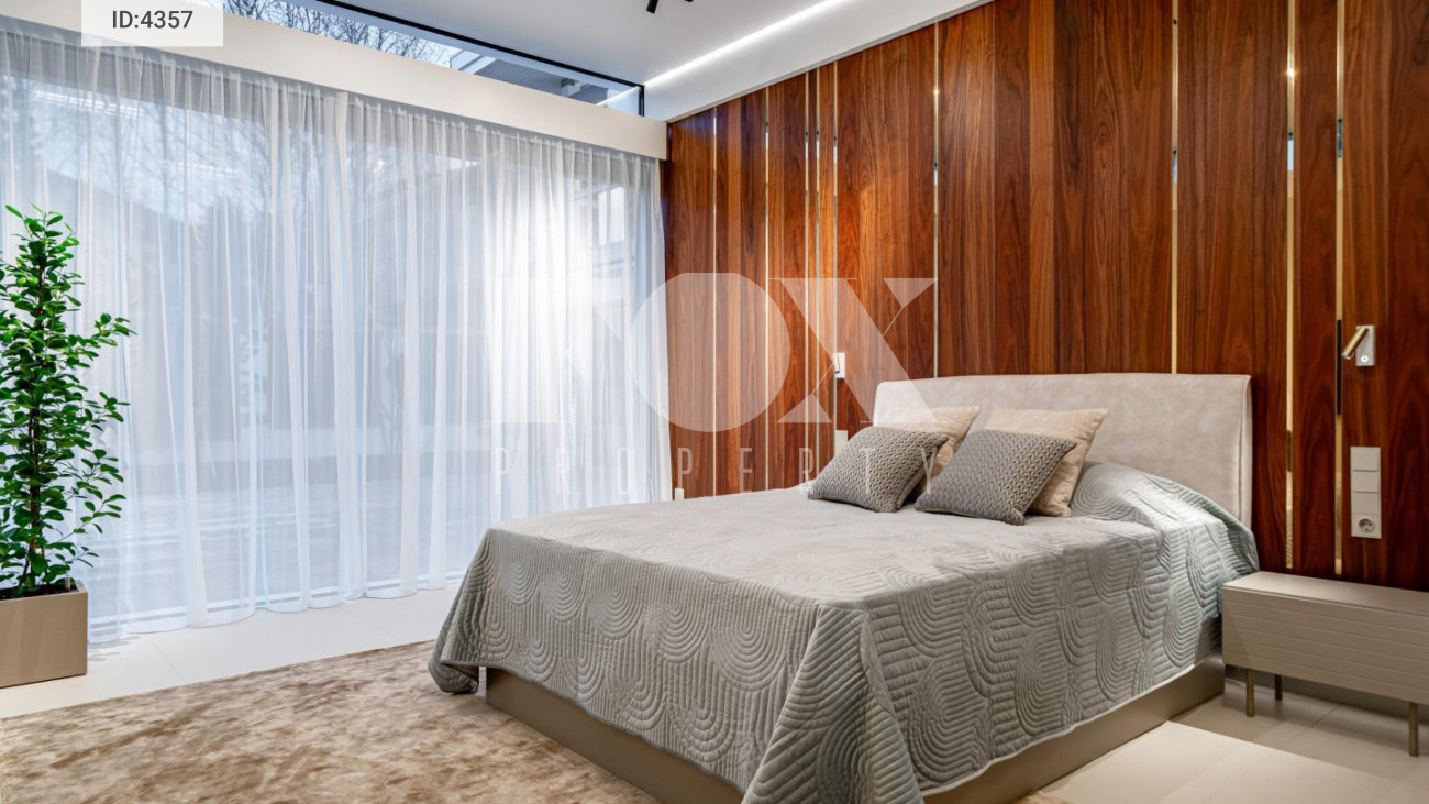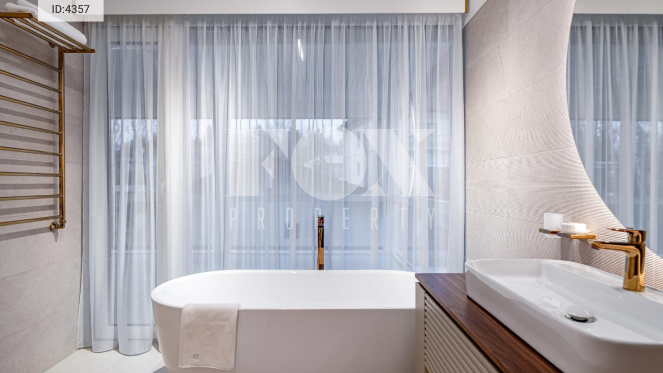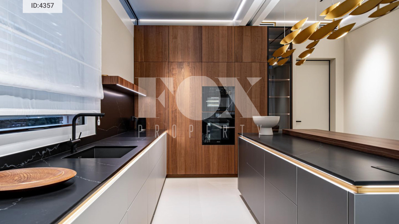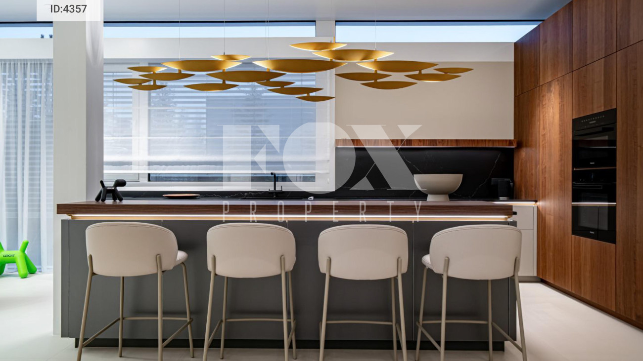 Внутренняя отделка выполнена из материалов высокого класса. Кухня оборудована мебелью немецкого бренда Leicht и укомплектована техникой Miele, включая винный шкаф и встроенную кофемашину;холодильник Liebherr. В интерьере используется мебель BoConcept.