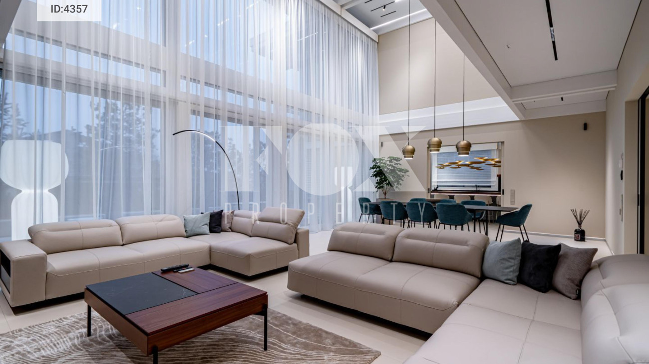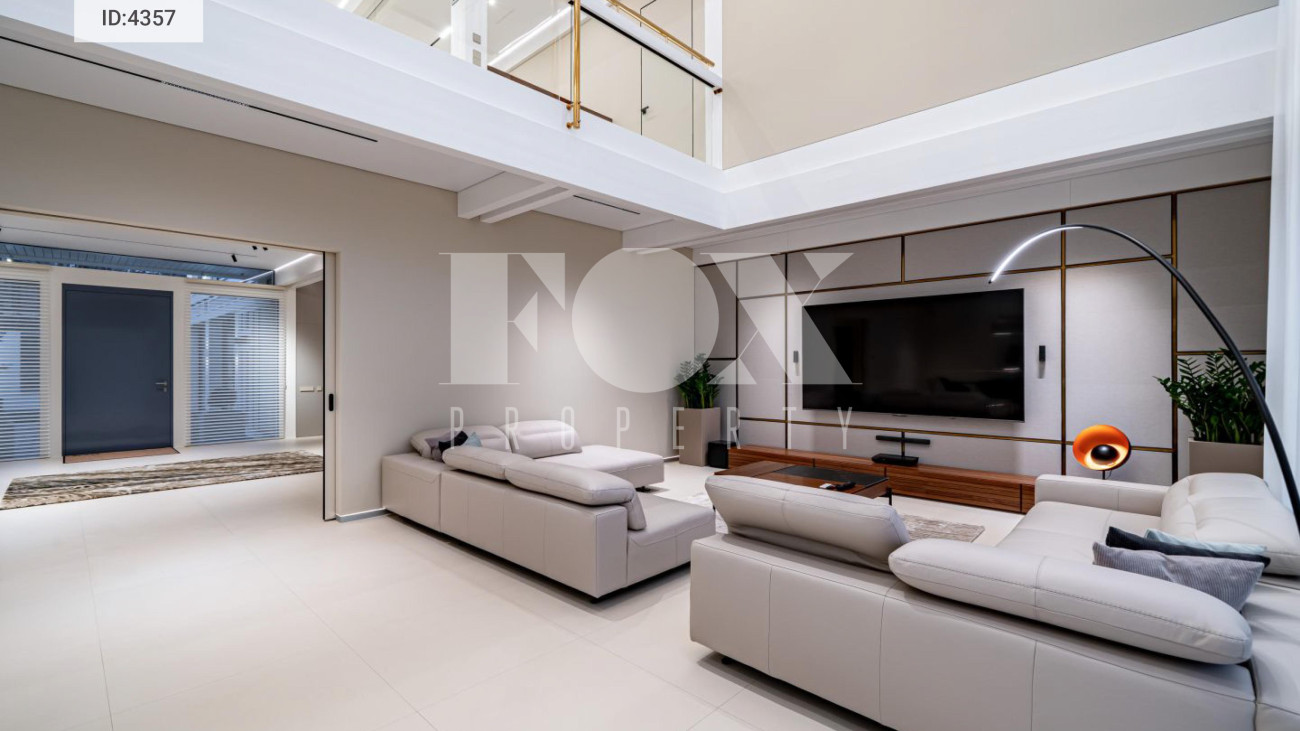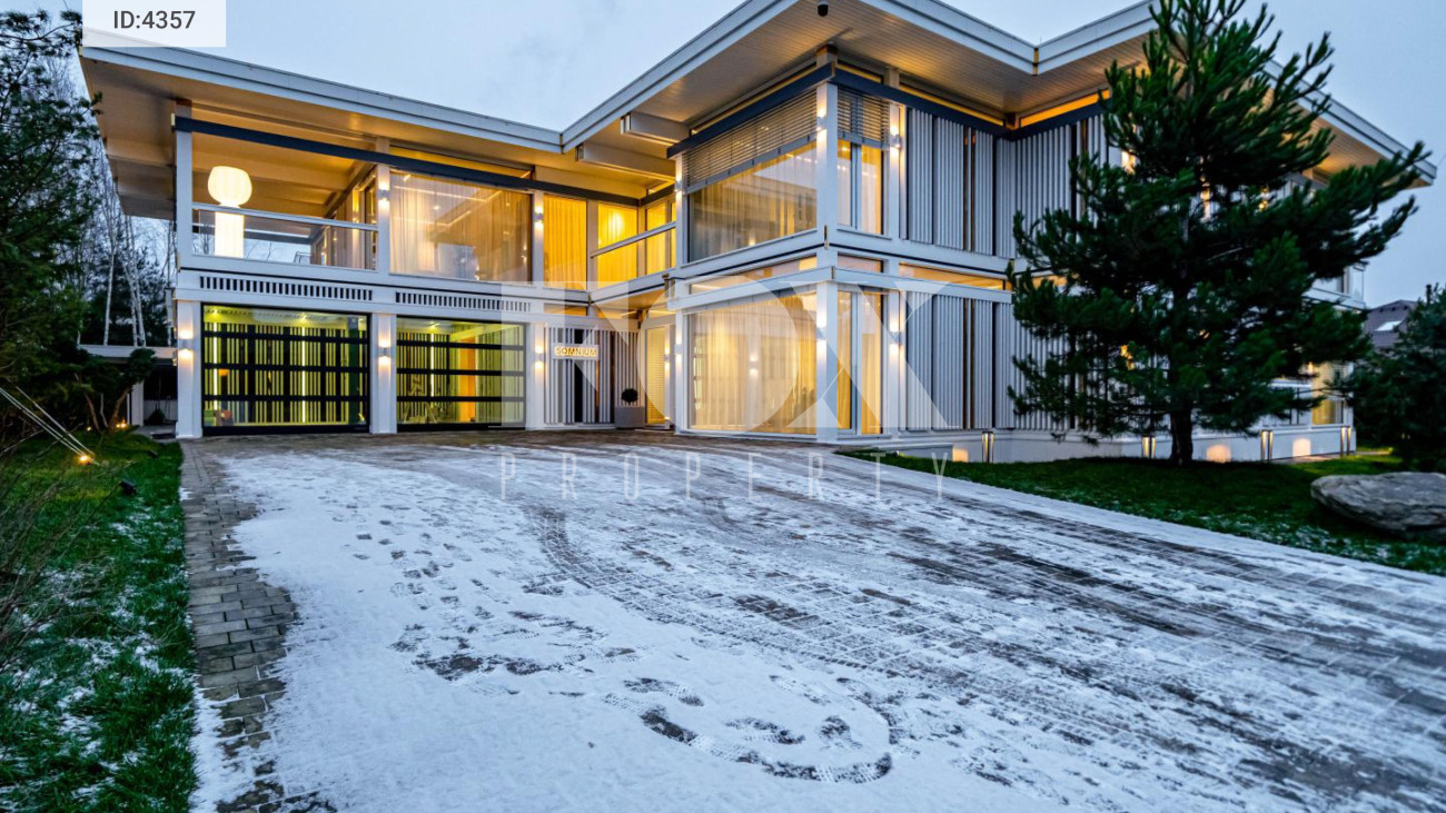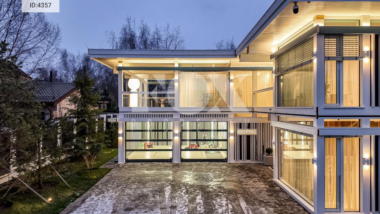Дом общей площадью 836 кв.м. с 5 спальнями расположен на видовом участке 13 соток в коттеджном посёлке Малое Сареево на Рублёво-Успенском направлении.
