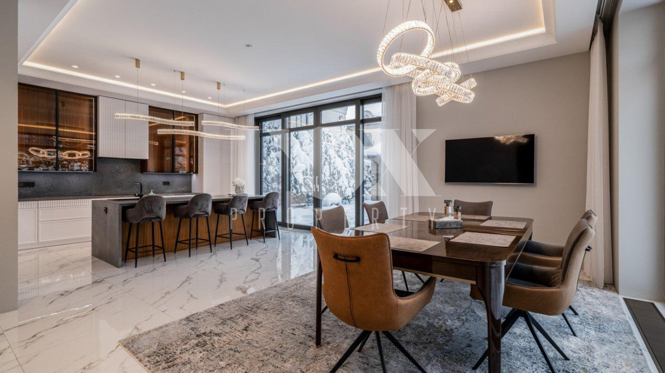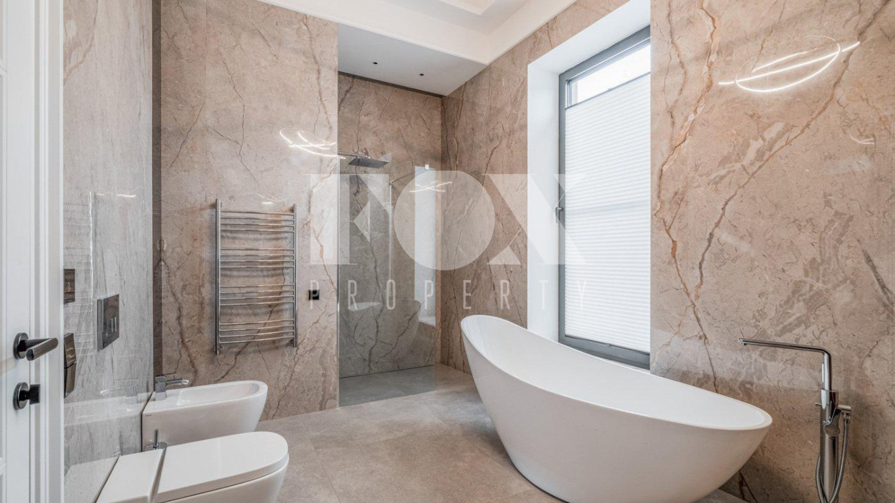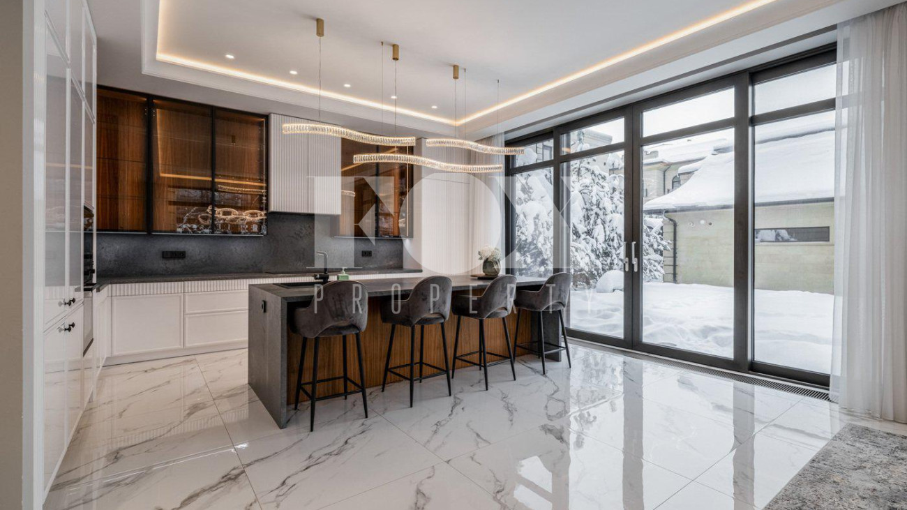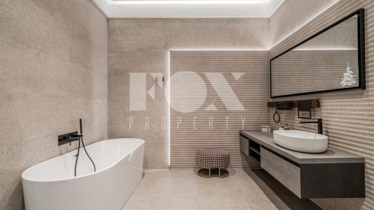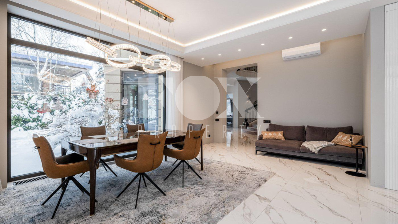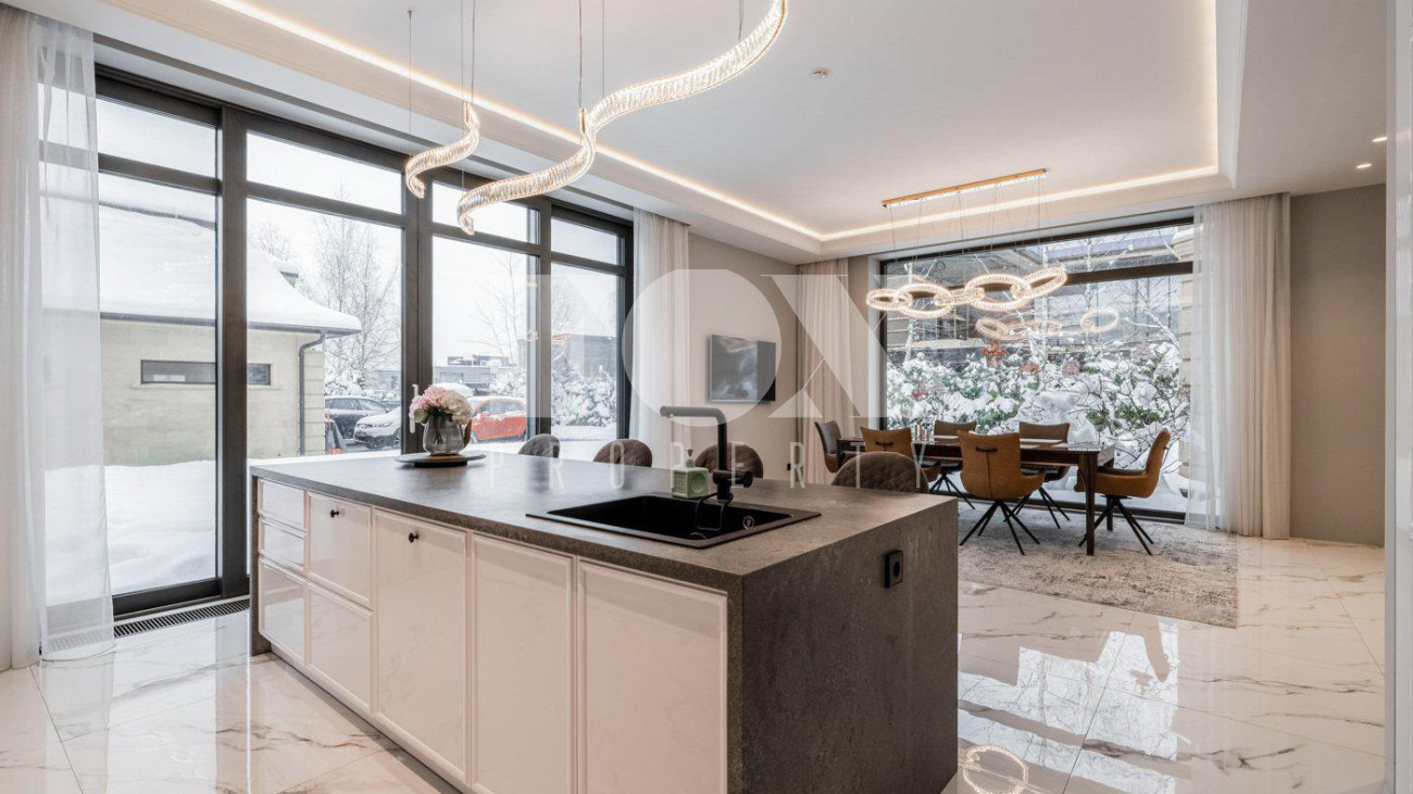 Стильный, новый дом "под ключ» площадью 600 кв.м на прилесном участке 26 соток в охраняемом поселке Малое Сареево. Дом полностью готов к проживанию, укомплектован всей необходимой техникой (Kuppersbusch, Liebherr, Asko, Bosch), установлены система кондиционирования и вентиляции (Breezart), видеонаблюдение в доме и на территории участка. Фасад дома отделан песчанником, отмостка - гранит. Окна - Schuco. Все шторы на электроприводе. Полы - инженерная доска, плитка, с подогревом. Все дорожки, балконы, крыши с подогревом. На чердак ведет лестница с электроприводом. По всему дому установлен многоуровневый свет. На участке проведены ландшафтные работы, высажены декоративные деревья, лесные деревья, вымощены дорожки, отдельно расположен гостевой дом (дом для персонала).
