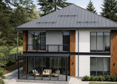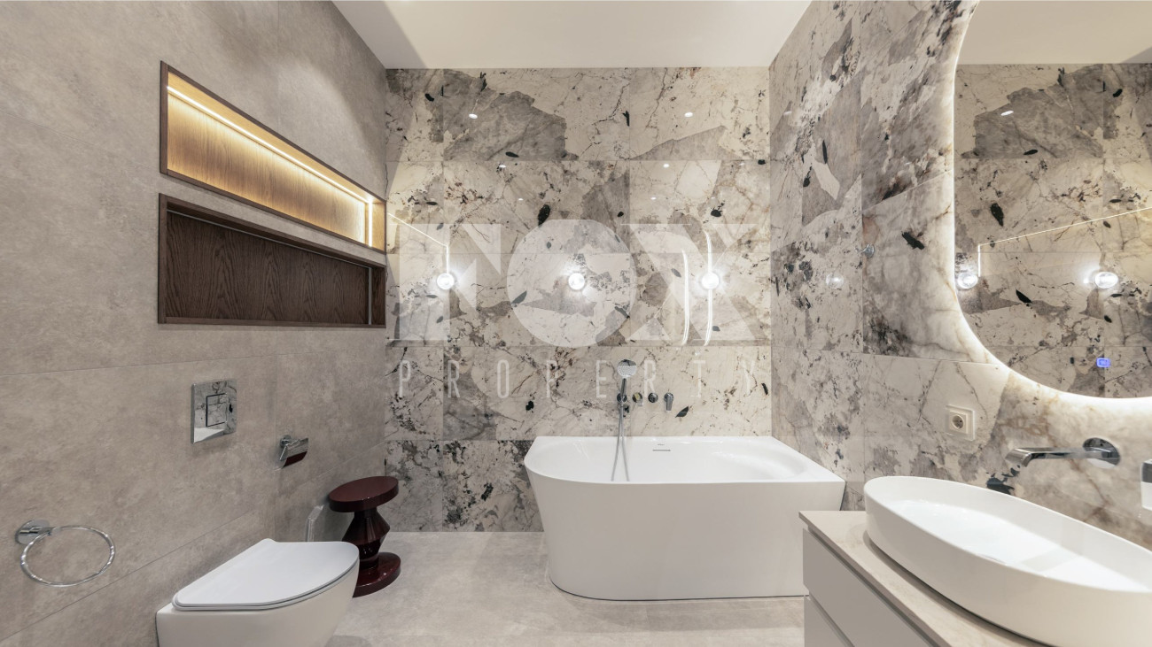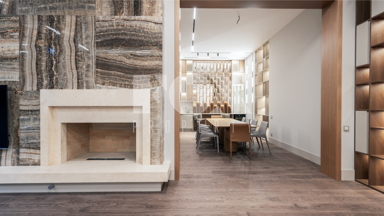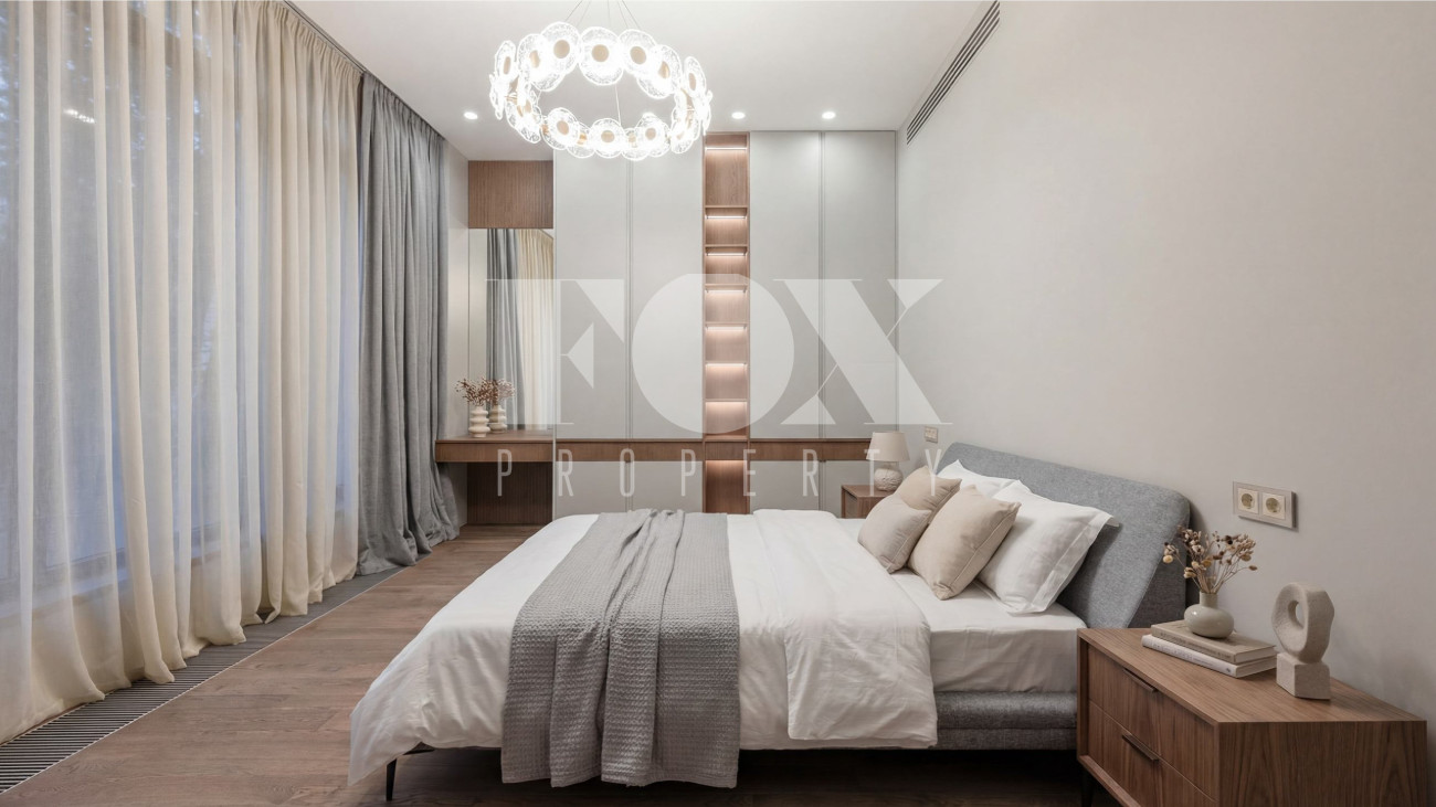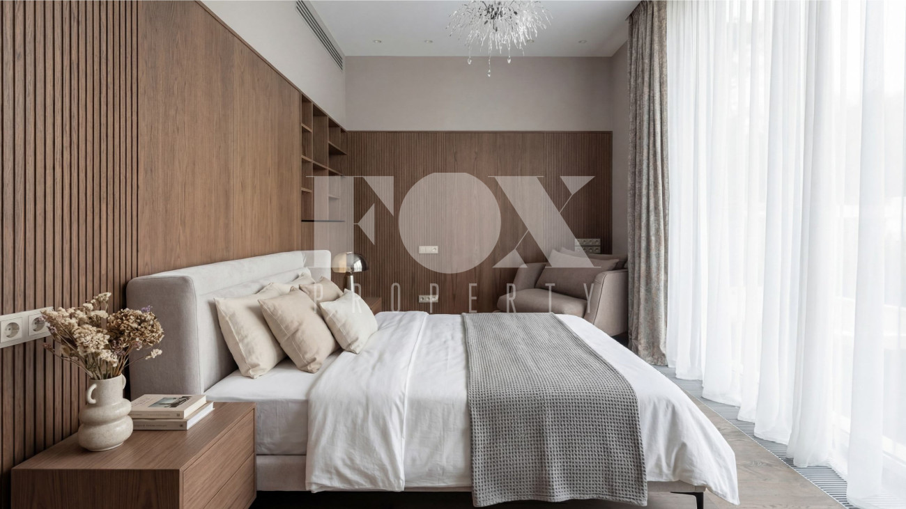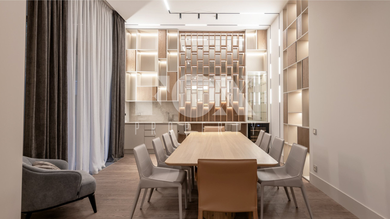 Новый современный загородный дом общей площадью 400 м2 построен на лесном участке 23 сотки в КП "Маслово Парк", расположенного на территории уникального природного резервата "Масловская лесная дача". Органическая архитектура коттеджа позволила комфортно и эргономично зонировать личные и общественные пространства, раскрывая неповторимые виды на вековой лес сквозь панорамное остекление. На 1-ом этаже размещены: гостиная с дровяным камином, столовая зона с полноценным баром и выходом на крытую террасу, функциональная кухня с островом, а также кабинет, гардеробная и постирочная. На 2-ом этаже размещены 2 мастер-блока спален со своими санузлами и гардеробными, а также детский блок из 2-х спален и ванной комнаты. Также предусмотрен выход на эксплуатируемую кровлю. Высота потолков 3.5 метра, центральное кондиционирование. На участке выполнен ландшафтный дизайн, засеян газон, дорожки вымощены брусчаткой, а на заднем дворе благоустроен естественный лесной ландшафт. При въезде дополнительно предусмотрен навес для 2-х автомобилей.