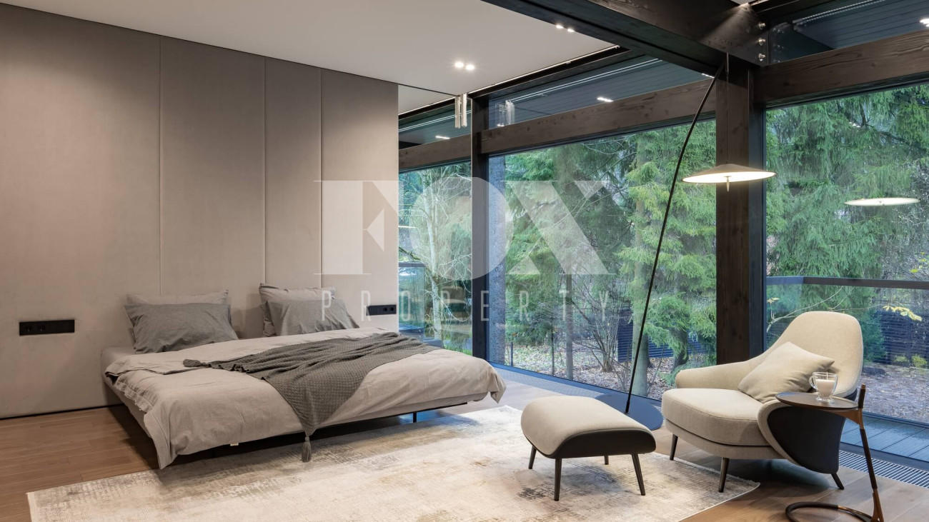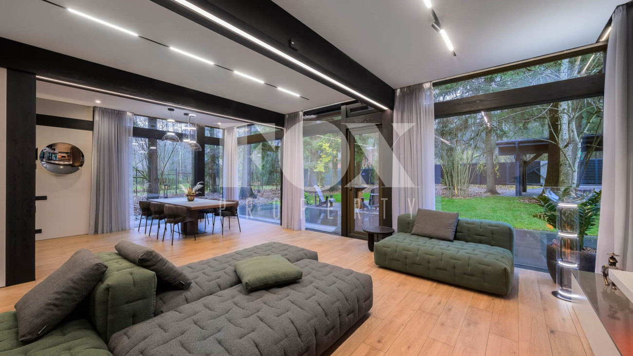 Forest Villa - природная жемчужина на рынке Рублевки! Абсолютно новый уникальный дом площадью 325 кв.м, построенный по немецкой технологии фахверк на участке 15,4 сотки с вековыми елями и дубами в тихом лесном поселке в 26 км от МКАД по Рублево-Успенскому шоссе.