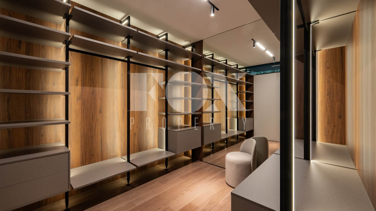 Каждая деталь интерьера ощущается качественной, продуманной, тактильной. Благородные деревянные панели, мягкий текстиль, натуральный камень — все это располагает к спокойной созерцательной атмосфере.