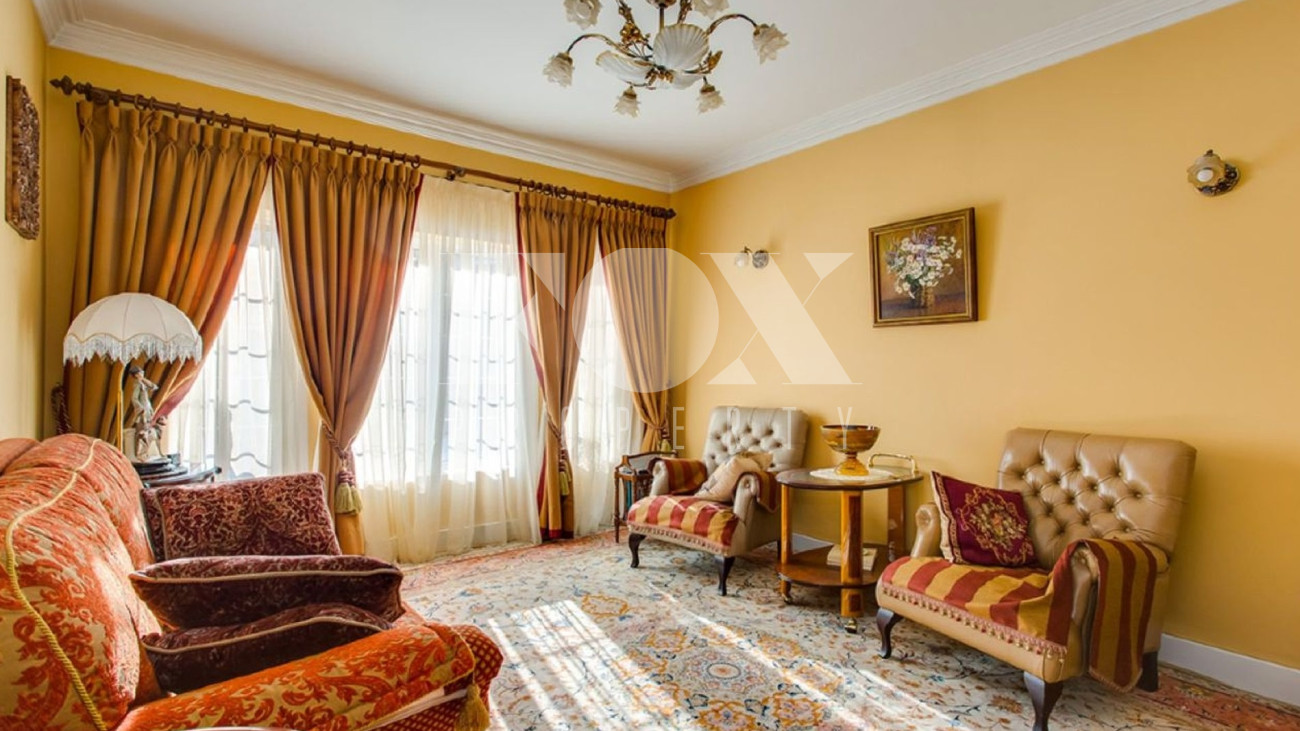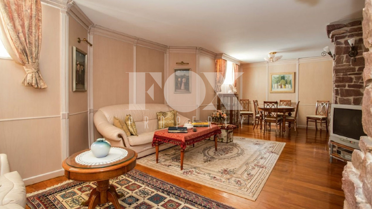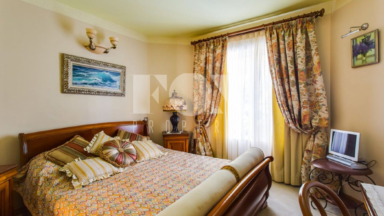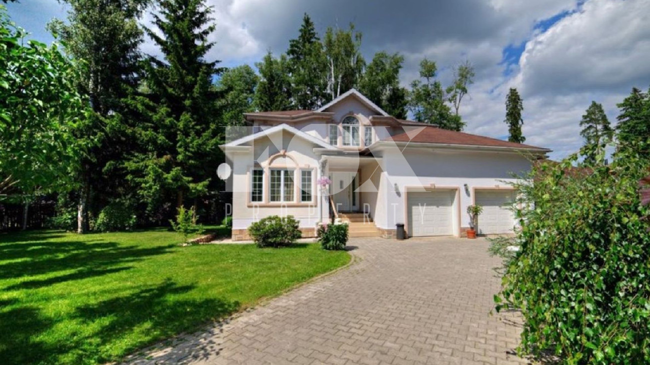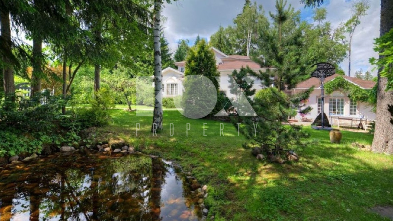 Дом в классическом стиле на участке с дизайнерским ландшафтом в премиальном поселке Рублево-Успенского шоссе. На участке расположена беседка-барбекю с летней кухней.
