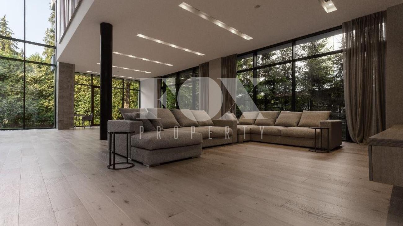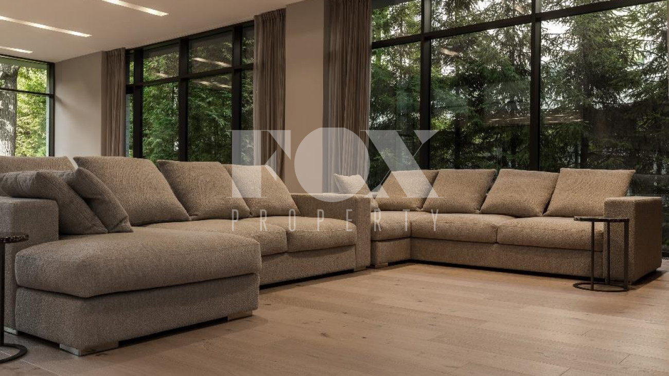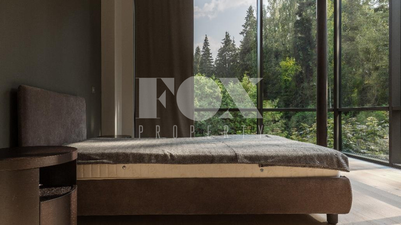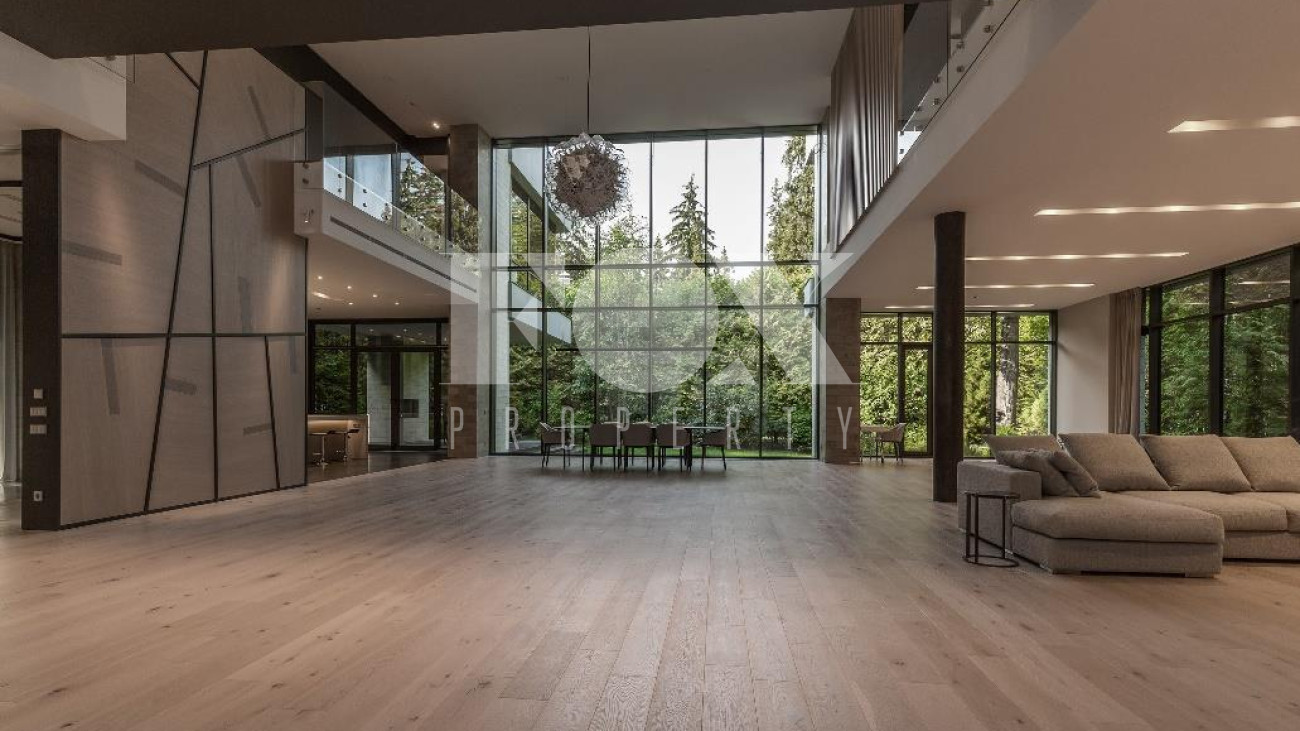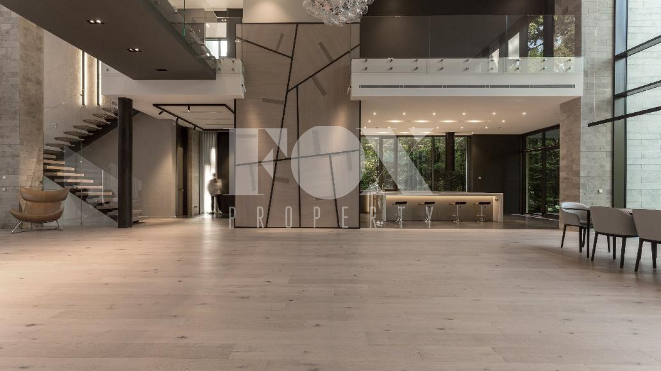 Стильный дом на лесном ландшафтном участке в лучшем поселке на Рублево-Успенском шоссе. Участок граничит с прогулочной зоной и за счет этого визуально увеличен. Также возможно увеличение за счет присоединения соседнего участка. При строительстве использовались натуральные отделочные материалы ведущих европейских производителей. Вентилируемый фасад из юрского мрамора производства Германии. Дом оборудован приточно-вытяжной вентиляцией. Отдельно расположен гараж на 2 м/м с квартирой для персонала.