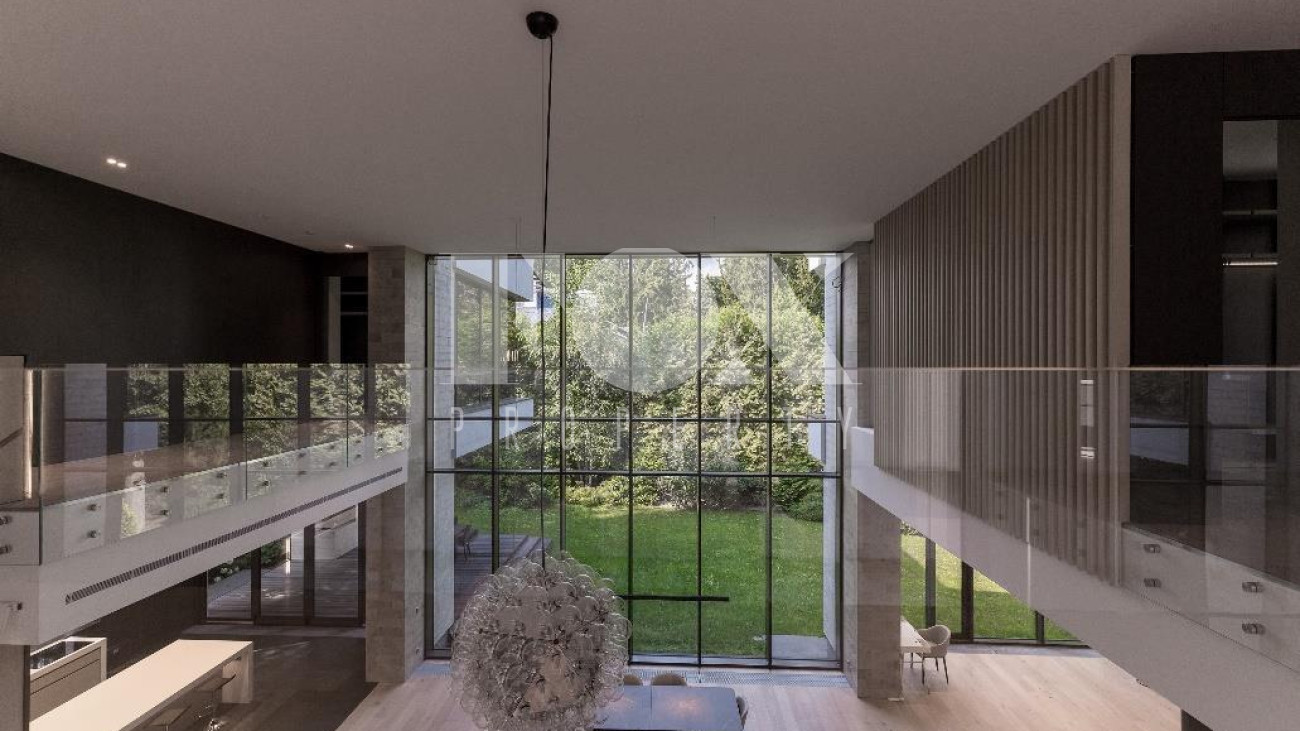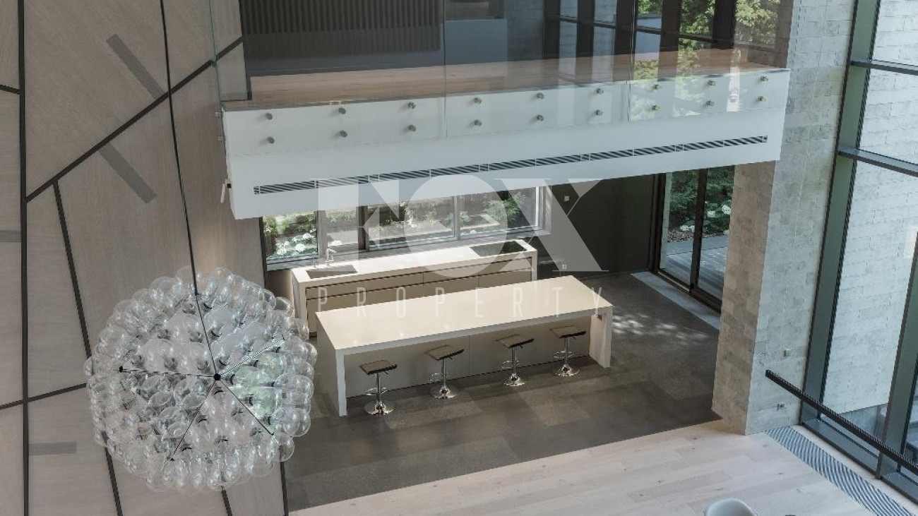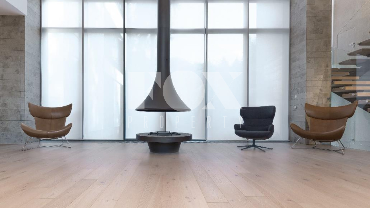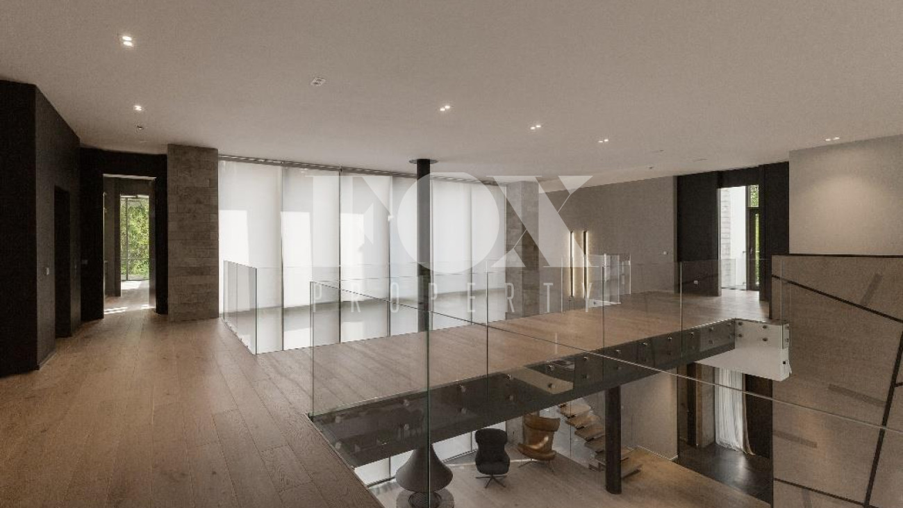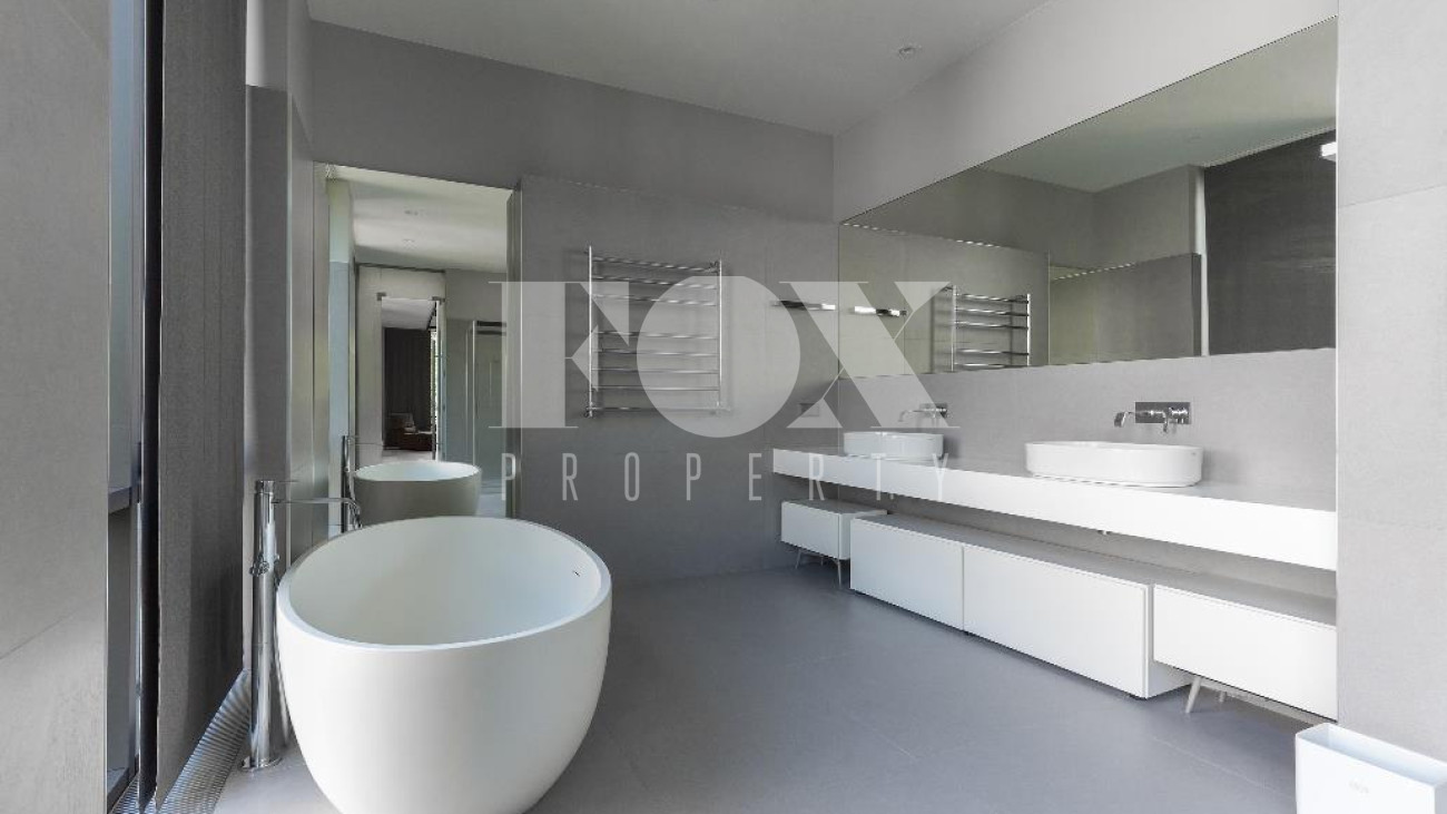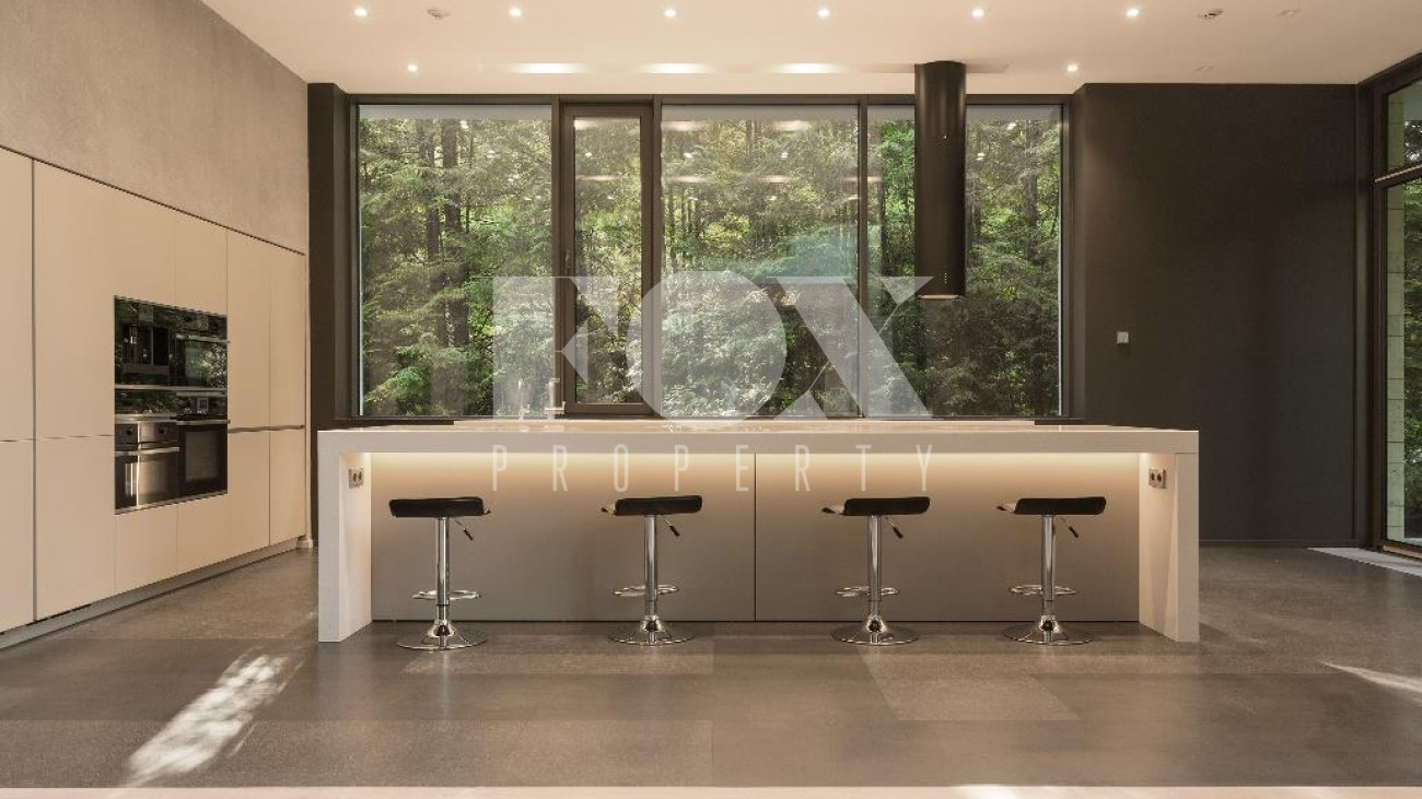 Стильный дом на лесном ландшафтном участке в лучшем поселке на Рублево-Успенском шоссе. Участок граничит с прогулочной зоной и за счет этого визуально увеличен. Также возможно увеличение за счет присоединения соседнего участка. При строительстве использовались натуральные отделочные материалы ведущих европейских производителей. Вентилируемый фасад из юрского мрамора производства Германии. Дом оборудован приточно-вытяжной вентиляцией. Отдельно расположен гараж на 2 м/м с квартирой для персонала.