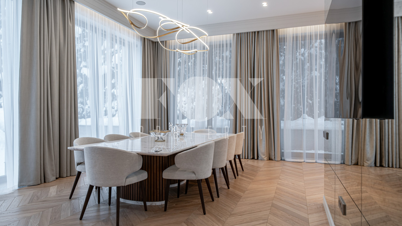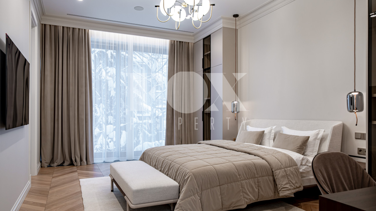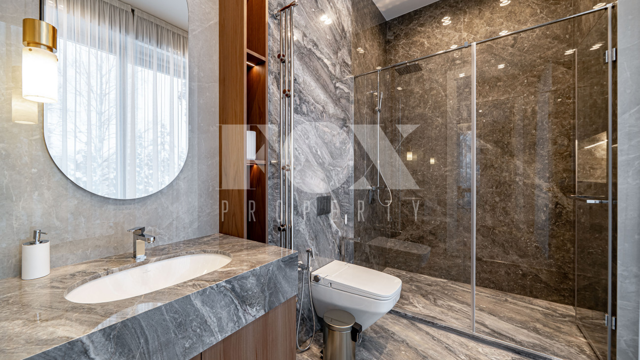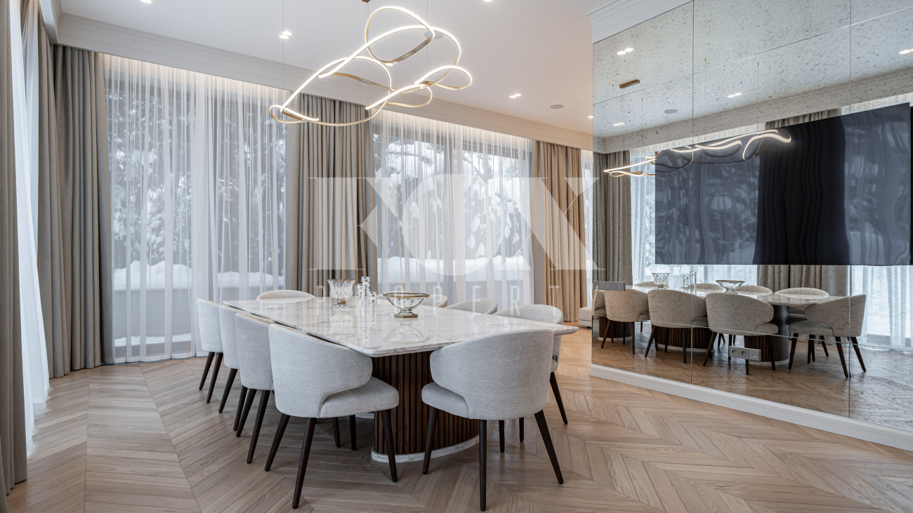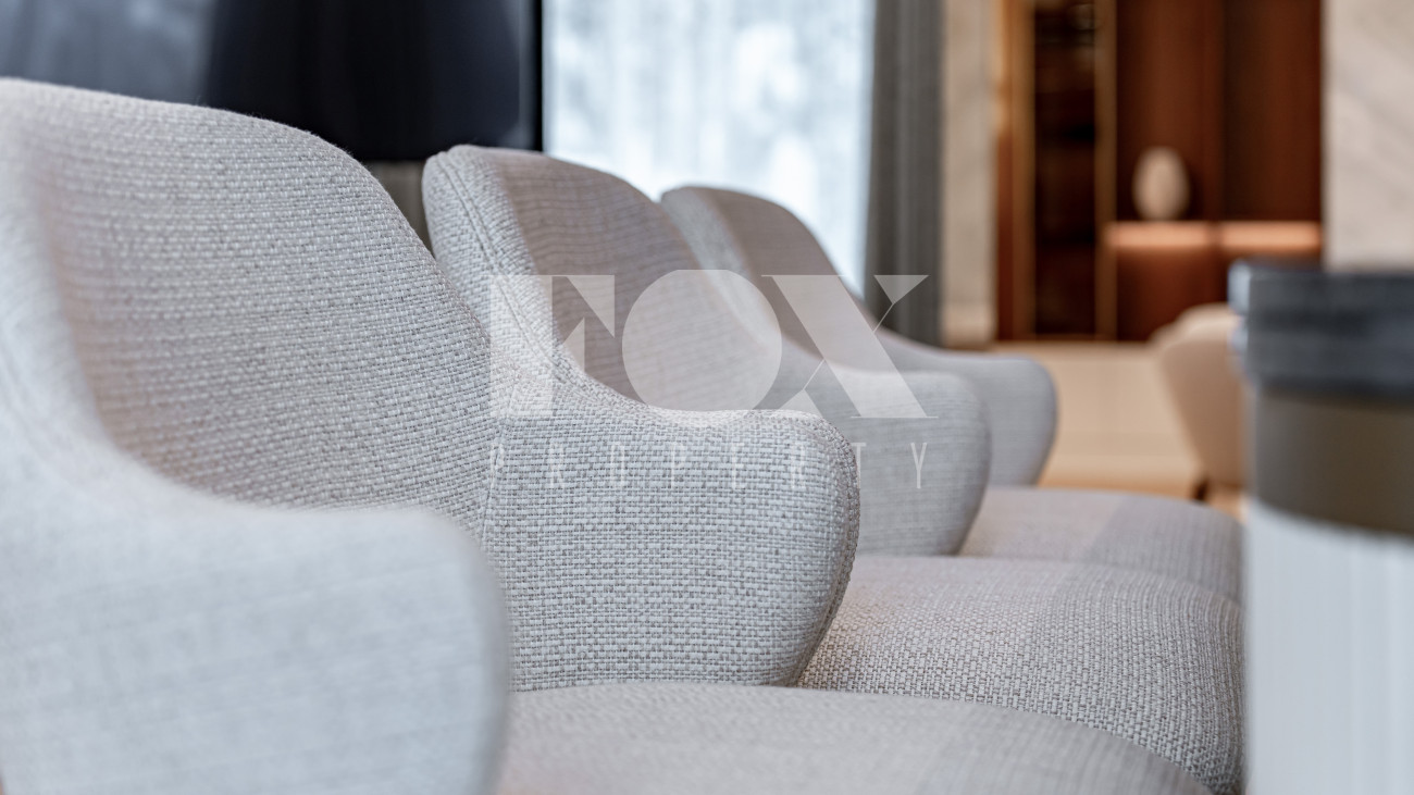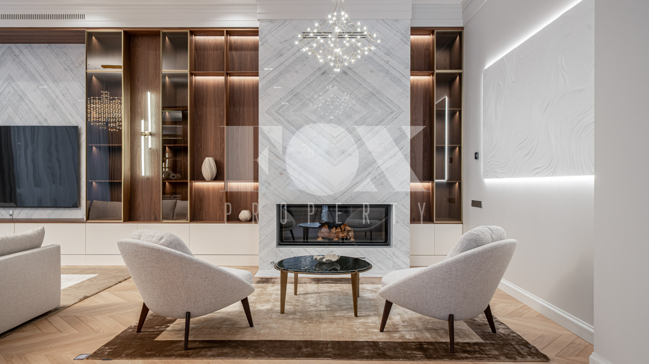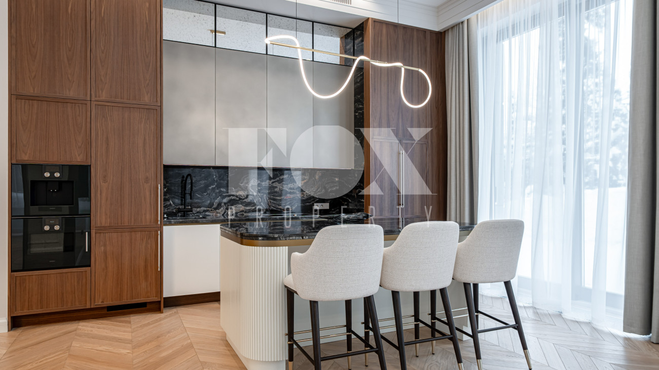 В отделке использовались высоко качественные натуральные материалы, мрамор, дерево, мебель известных Итальянских брендов: Minotti, Paltrona Frau, Poliform, Porada.