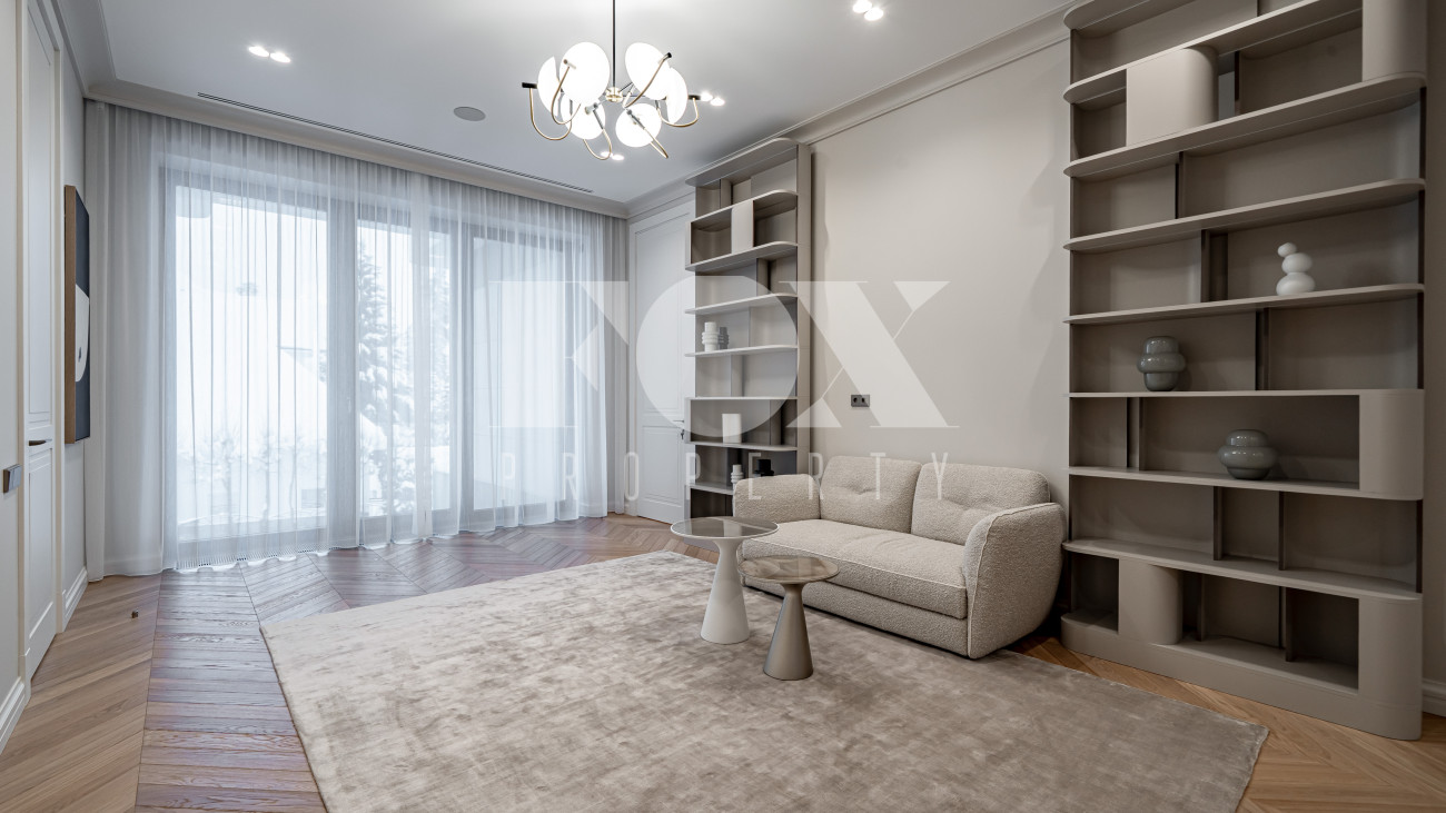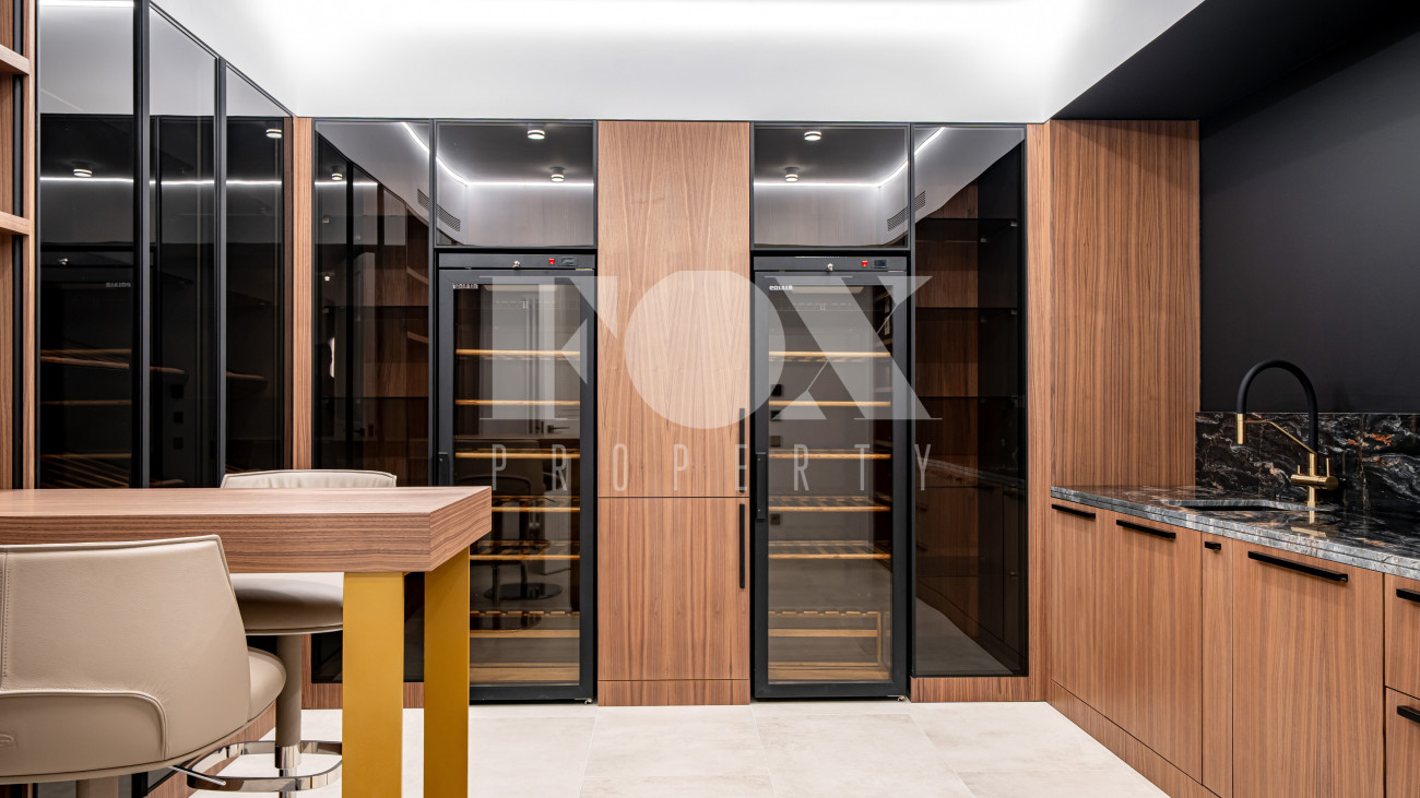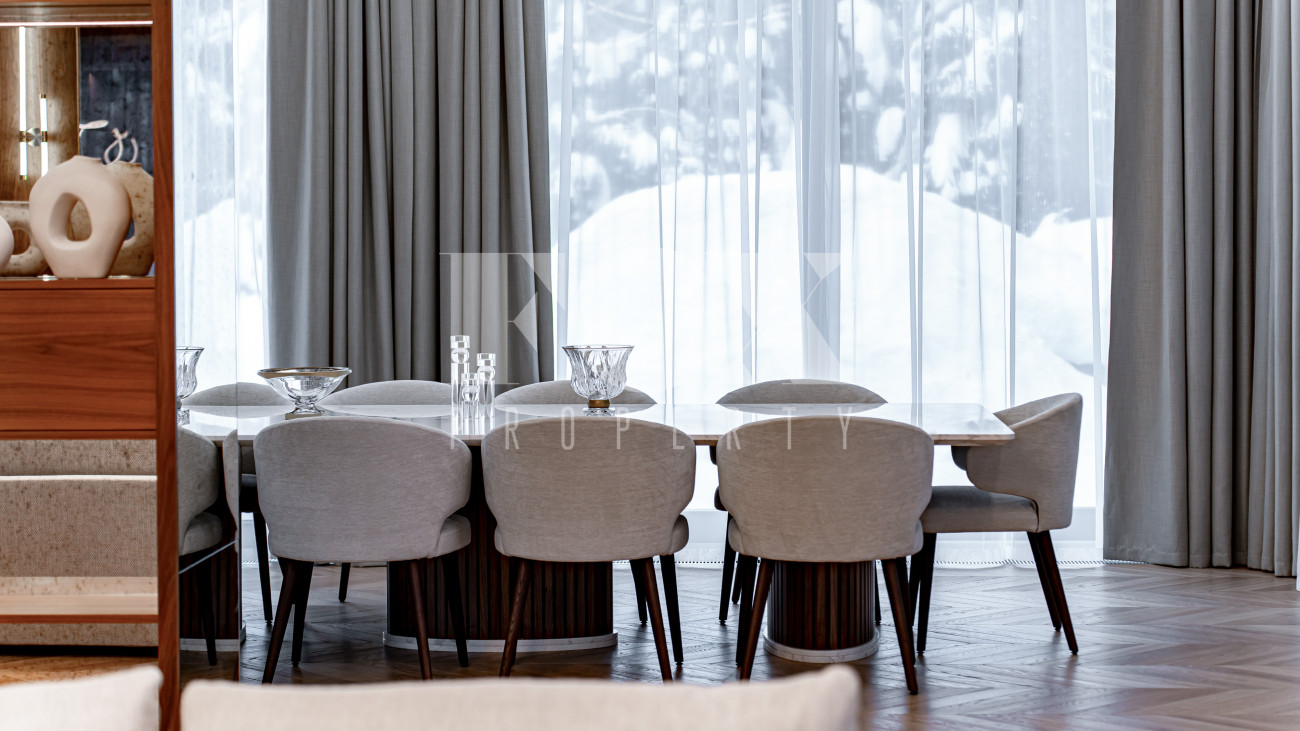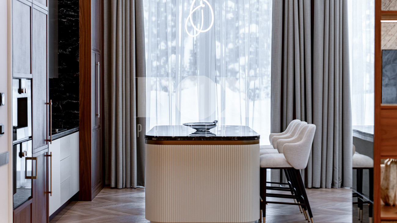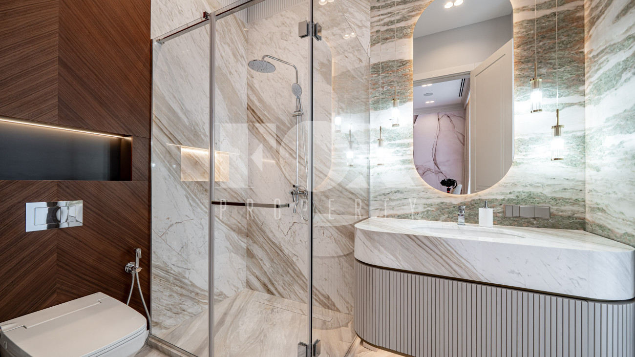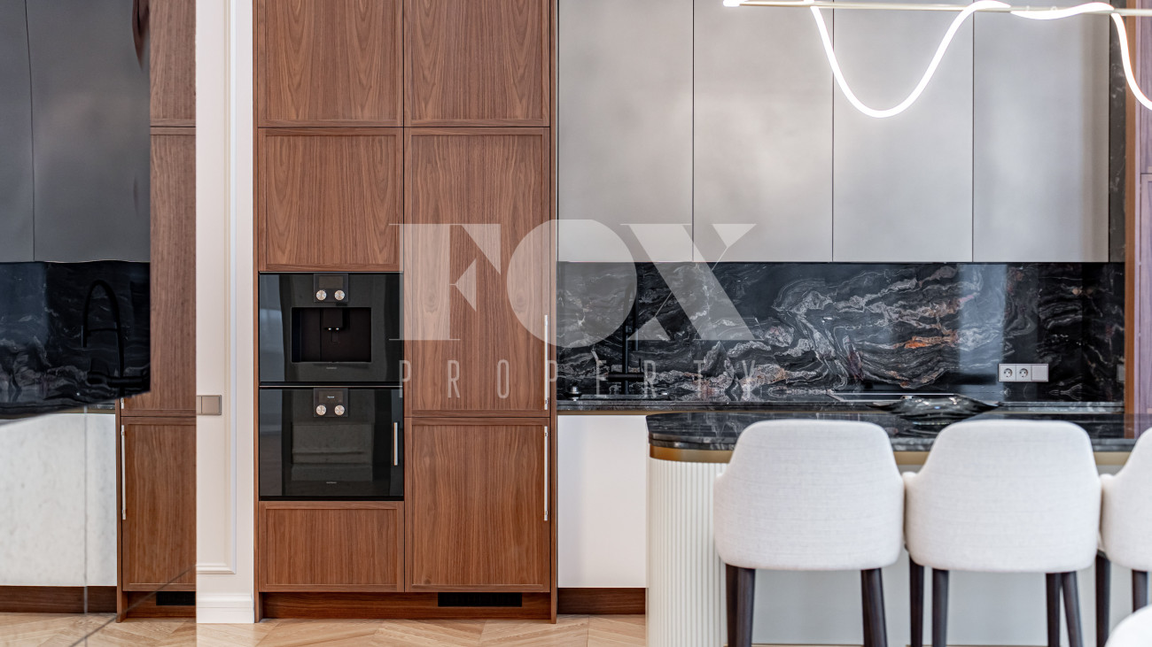 В отделке использовались высоко качественные натуральные материалы, мрамор, дерево, мебель известных Итальянских брендов: Minotti, Paltrona Frau, Poliform, Porada.