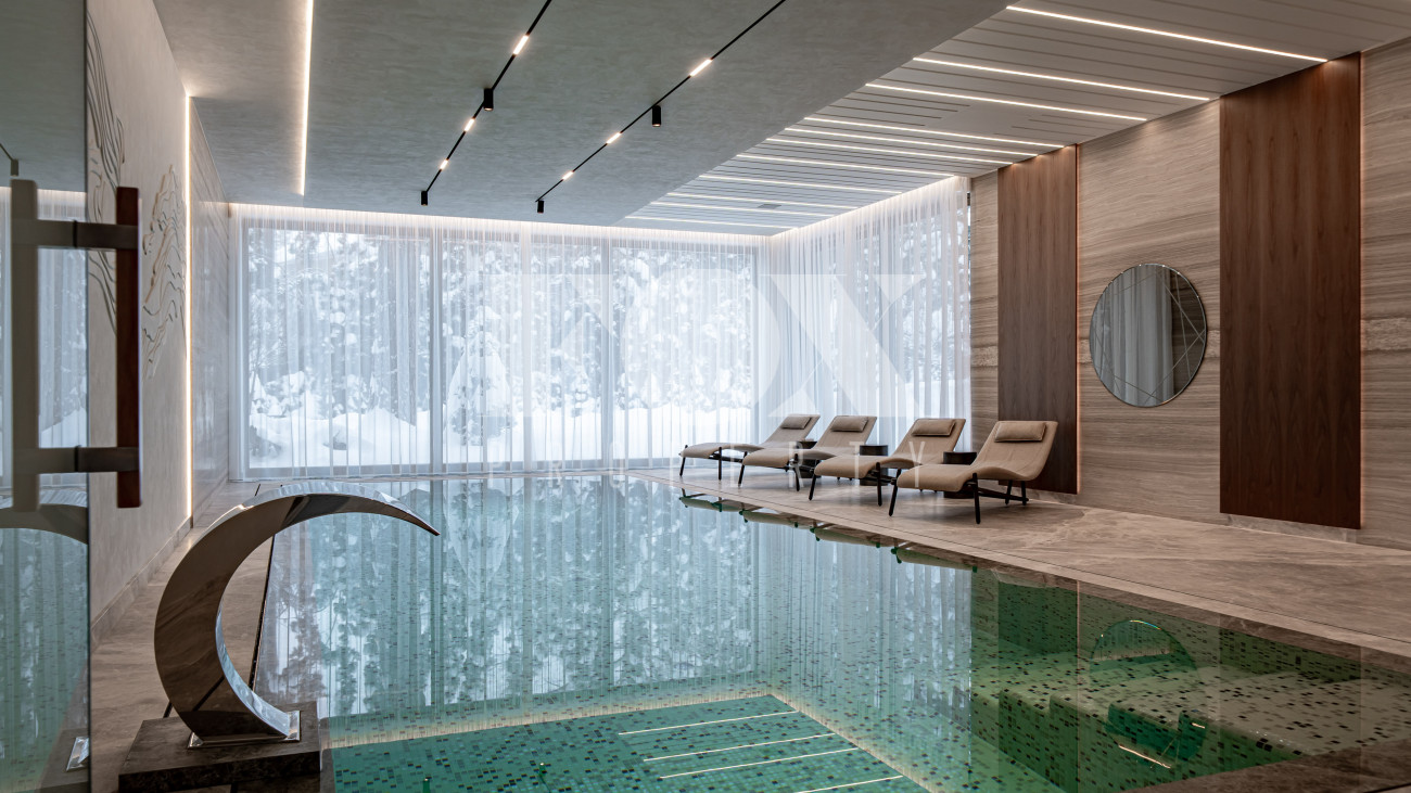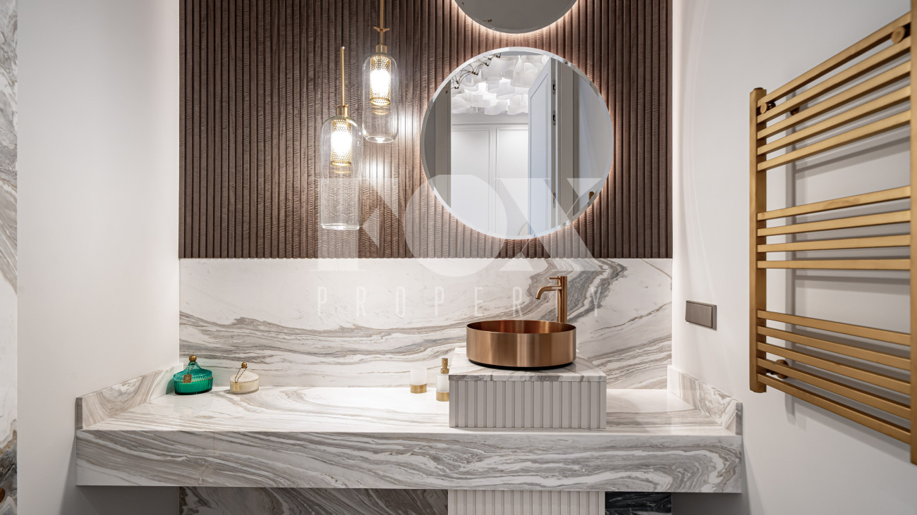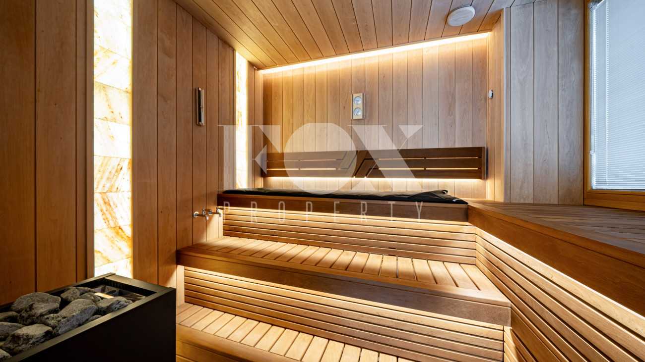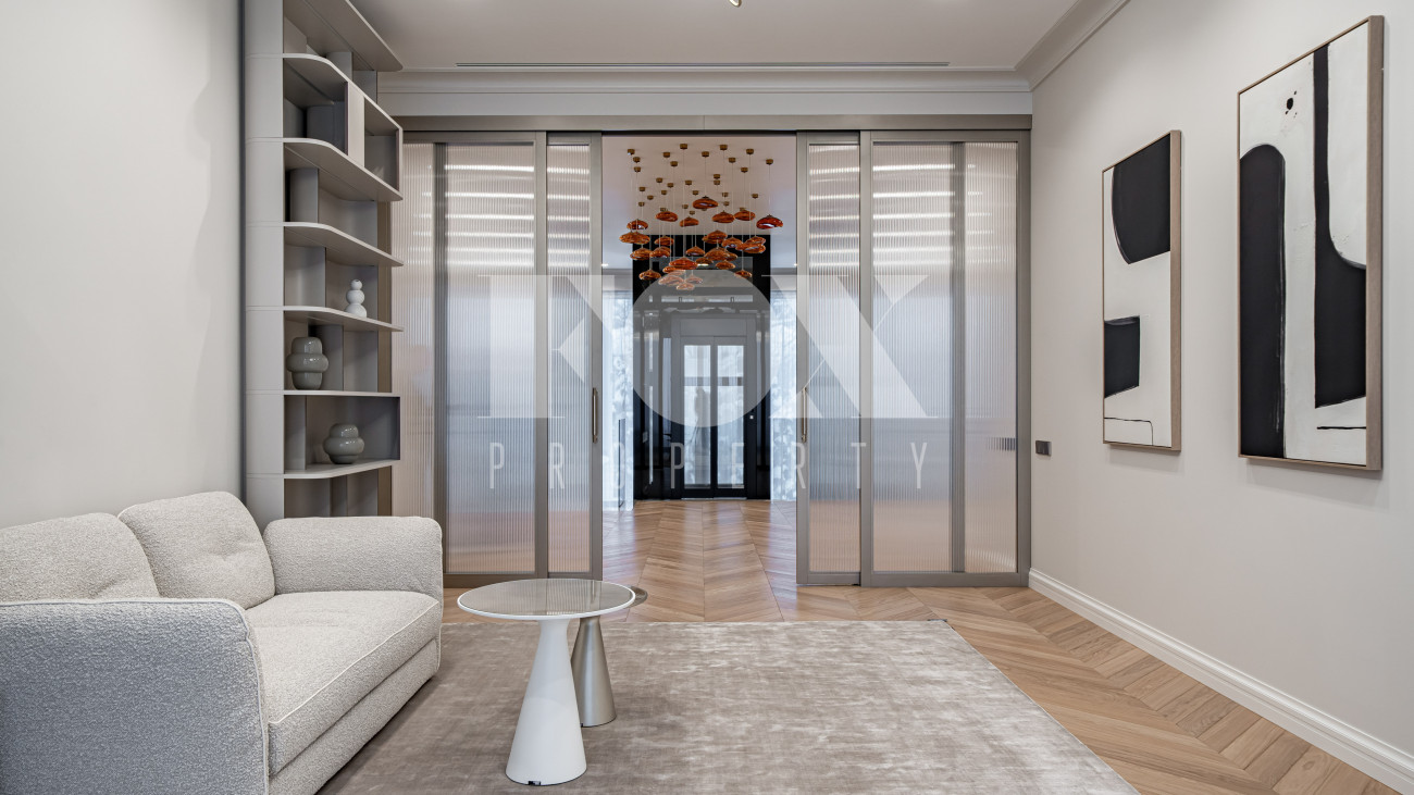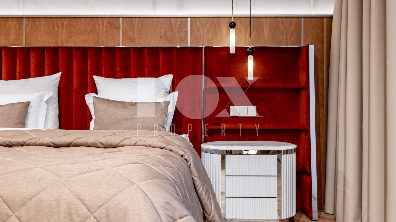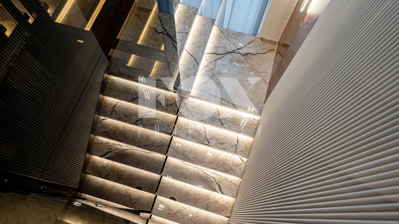 В отделке использовались высоко качественные натуральные материалы, мрамор, дерево, мебель известных Итальянских брендов: Minotti, Paltrona Frau, Poliform, Porada.