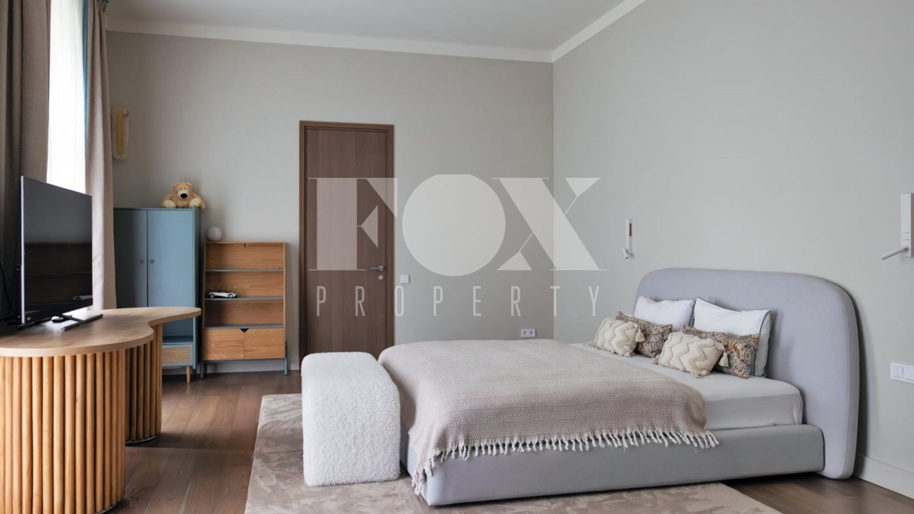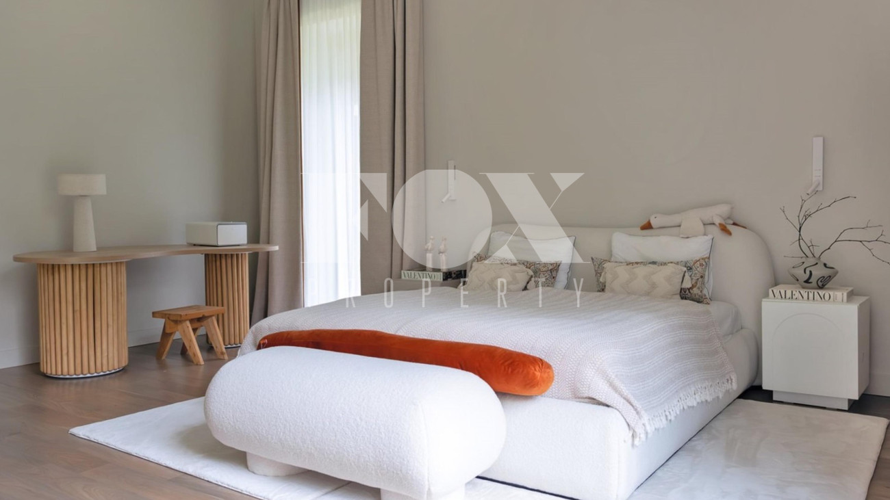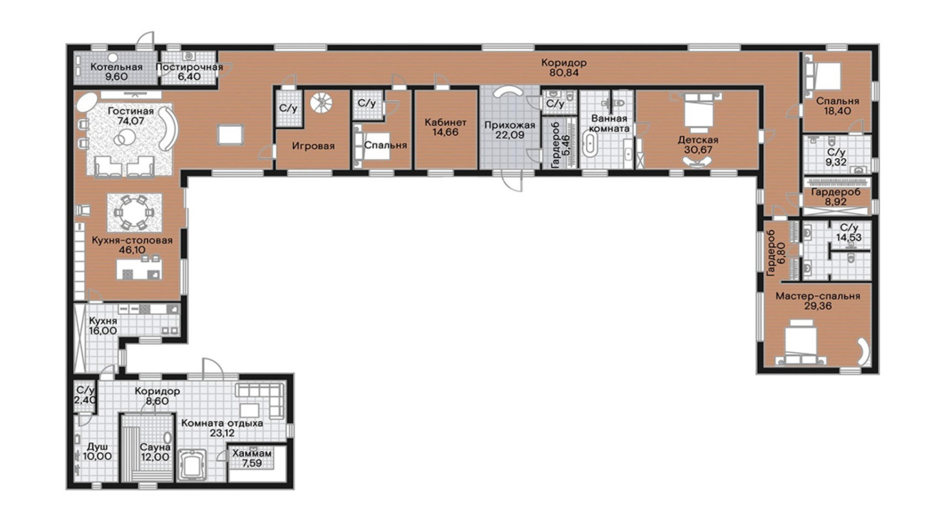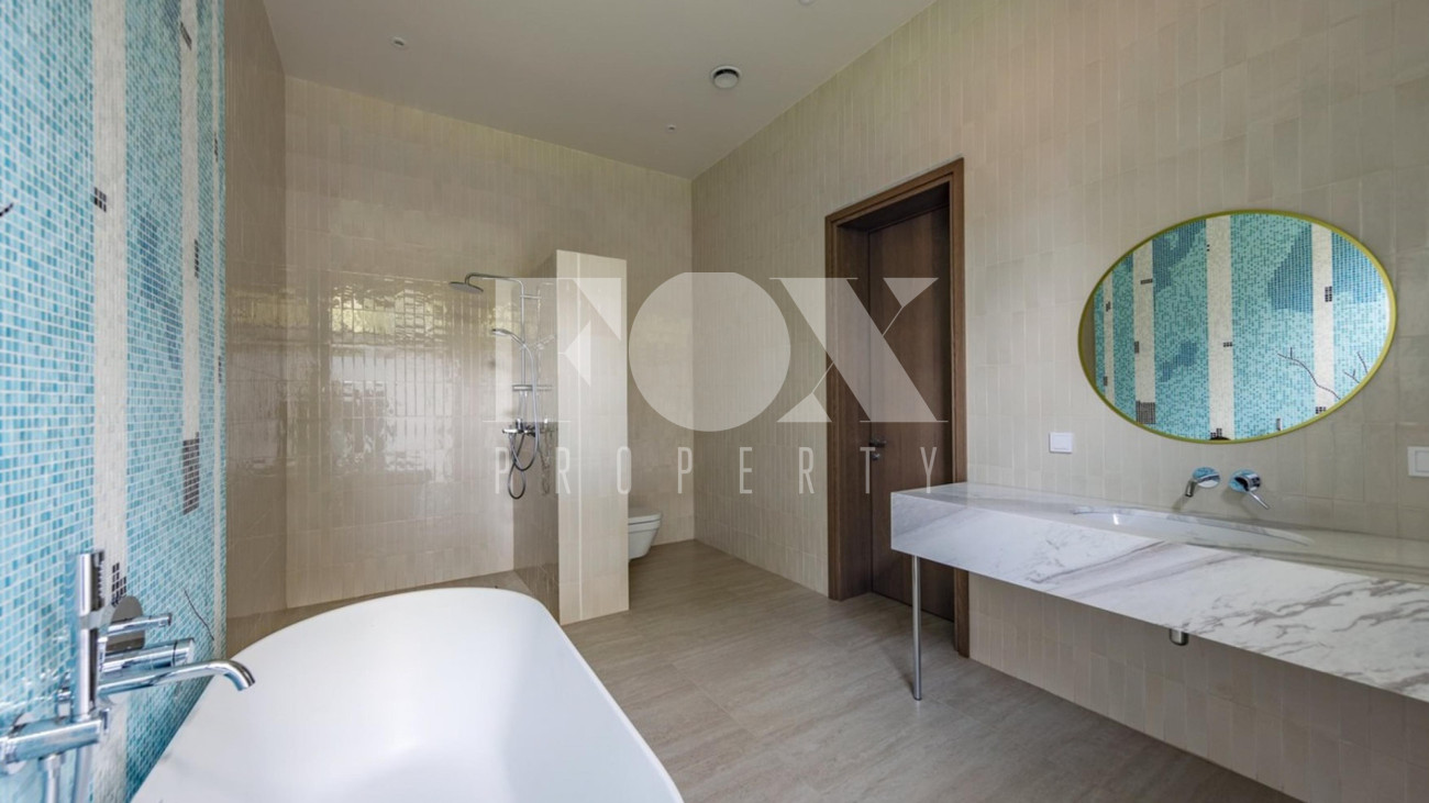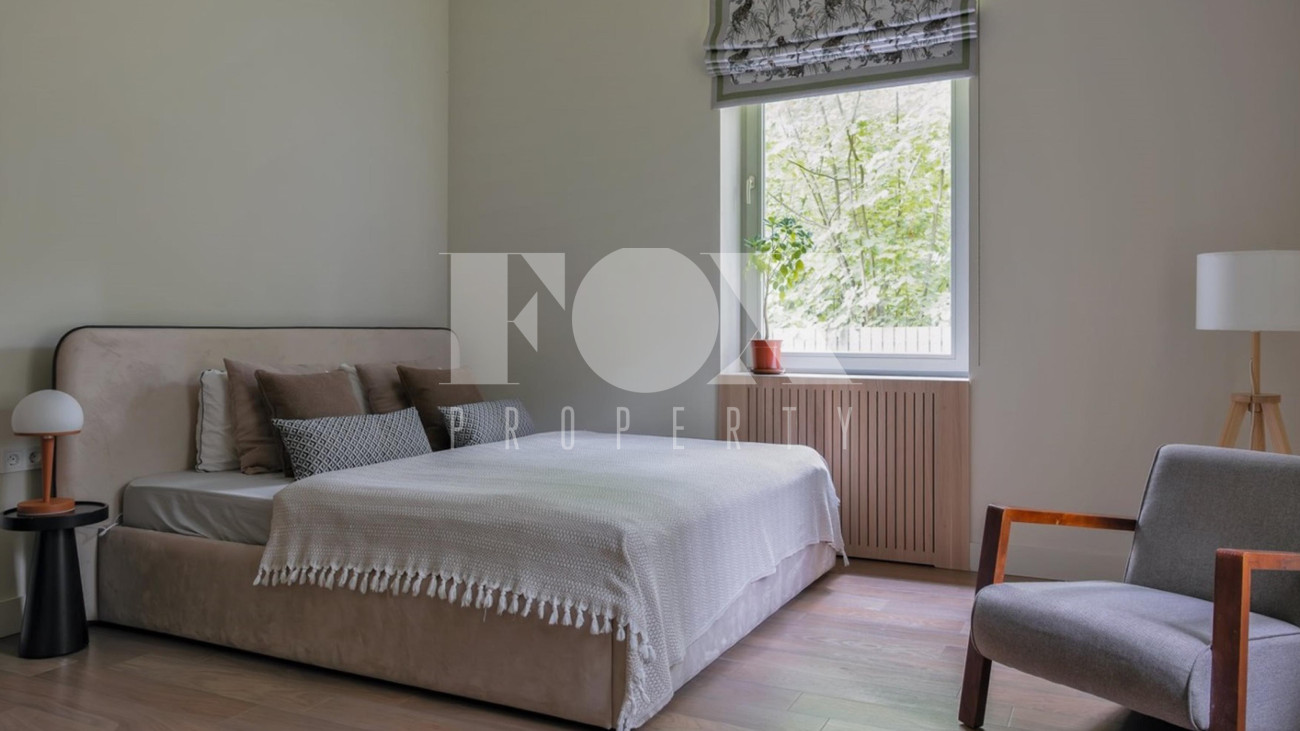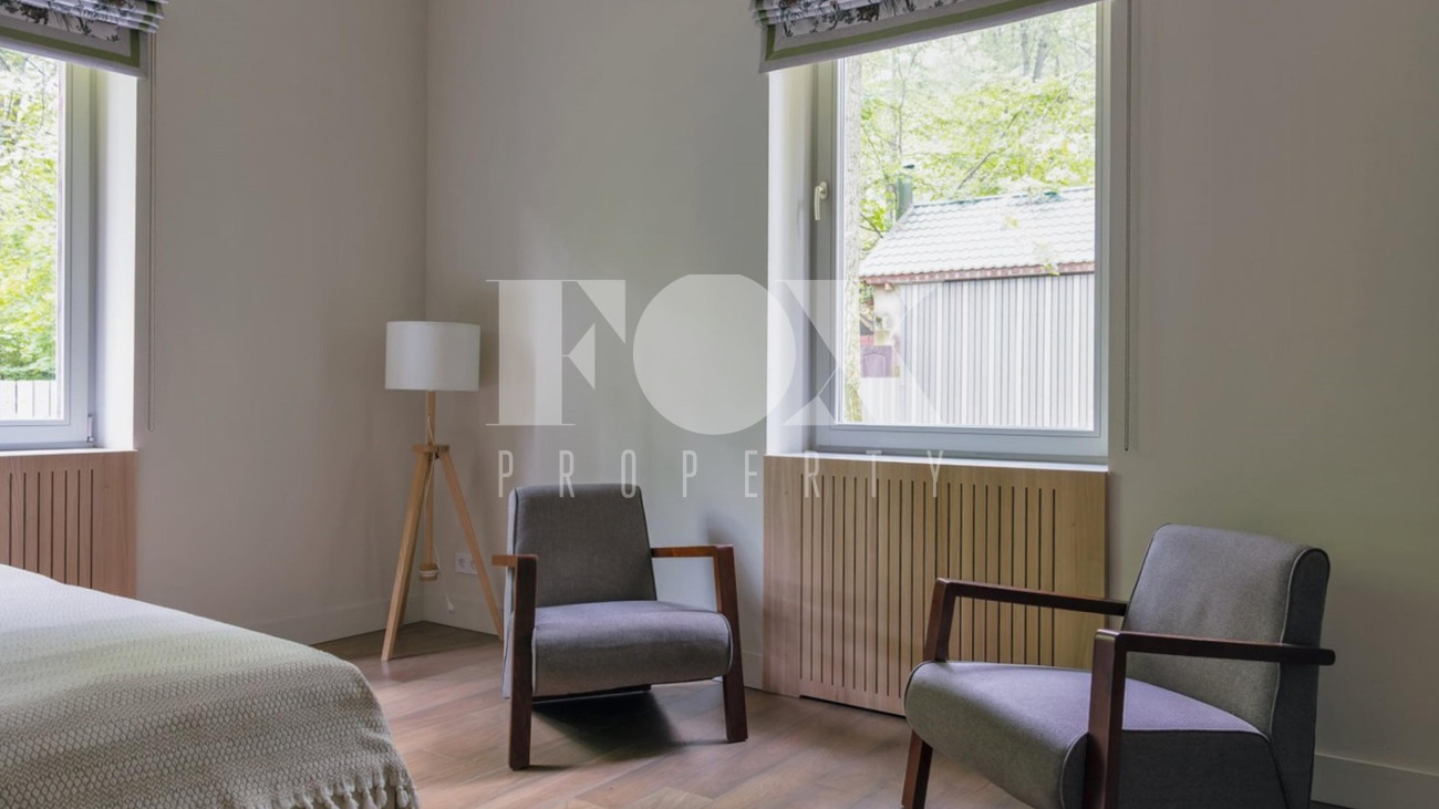Одноэтажный дом с высокими потолками. Академический закрытый поселок с охраной на 1-Успенском шоссе. 25 соток. Дом 550 кв. м. Выполнен по архитектурному проекту с учетом сторон света и траектории движения солнца по часам. Каменный. Фасад отделан термодоской и терморейкой. Разделен на две части - приватный блок с 5 спальнями и общий блок, состоящий из кабинета, кухни-гостиной и технической кухни. Выдающийся коридор-галерея. Высота потолка в коньке до 7 метров. Спа зона с хаммамом, дровяной парной и джакузи с комнатой отдыха. Деревянные стеклопакеты с раздвижными порталами. Шторы на электроприводах. Система приточно-вытяжной вентиляции и кондиционирования, управляемая с телефона. Системы видеонаблюдения. На участке лесные деревья, газон. Подсветка дорожек, фасада и забора. Парковка на 3 мм, гараж на 2 мм, блок для персонала отдельным строением с двумя комнатами, санузлом и кухней. Минимальные поселковые платежи. Идеальная локация.