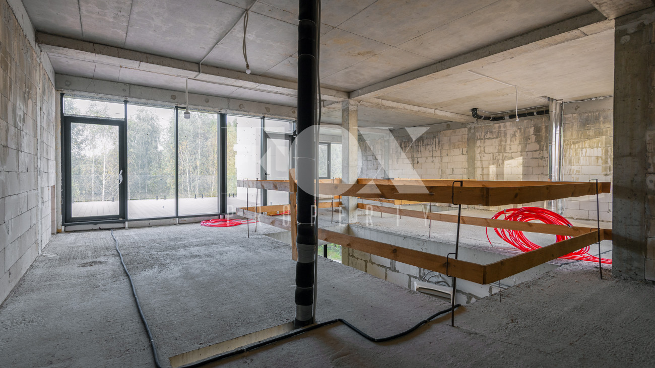 Дом без отделки - возможность оформить интерьер по своему вкусу. Расположен в тихой, застроенной части поселка Проект создан с акцентом на максимальный комфорт: просторные помещения, большие окна и выходы на террасы.