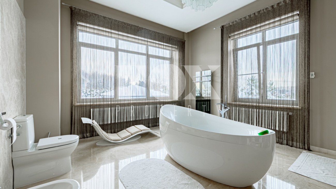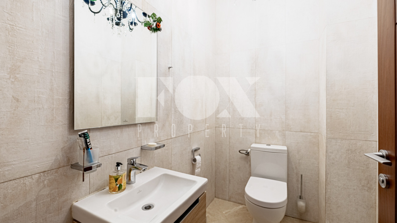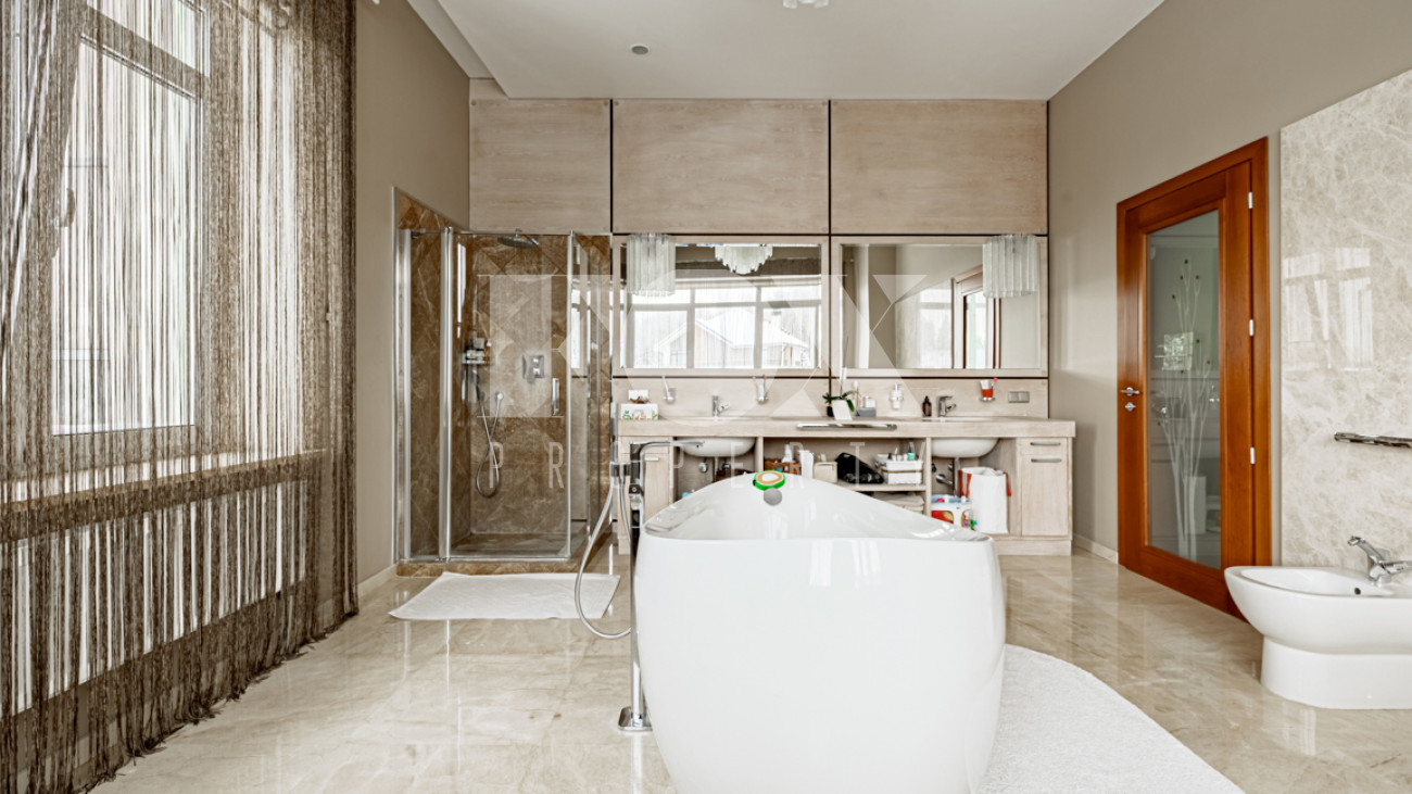 Отделка в лаконичном современном стиле выполнена из качественных натуральных материалов. Дом полностью готов к проживанию, меблирован, оборудован всей необходимой бытовой техникой.