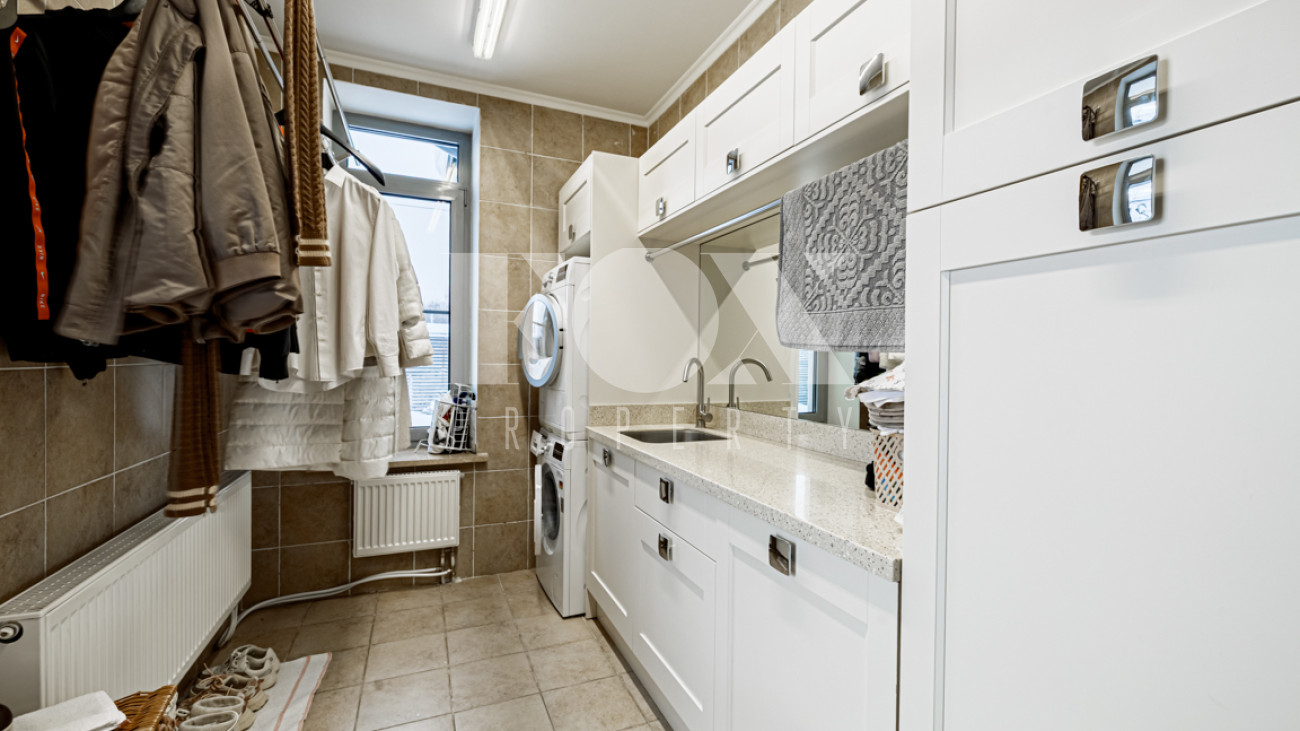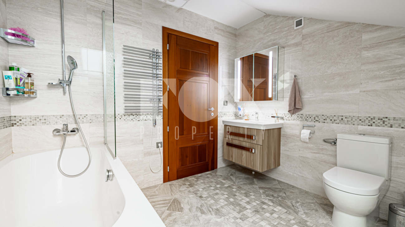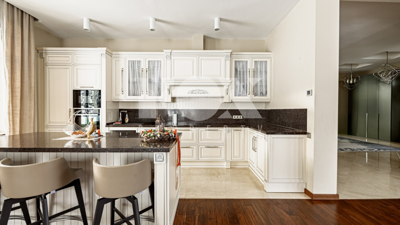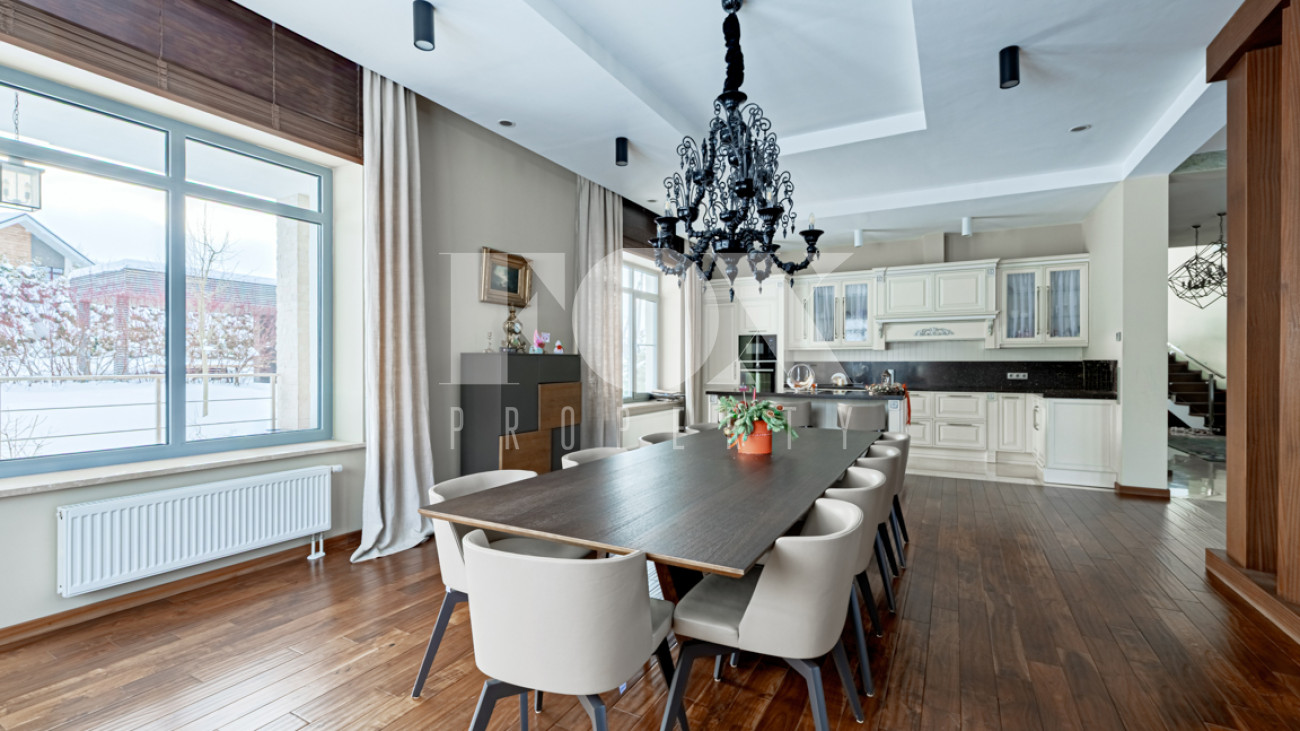 Отделка в лаконичном современном стиле выполнена из качественных натуральных материалов. Дом полностью готов к проживанию, меблирован, оборудован всей необходимой бытовой техникой.