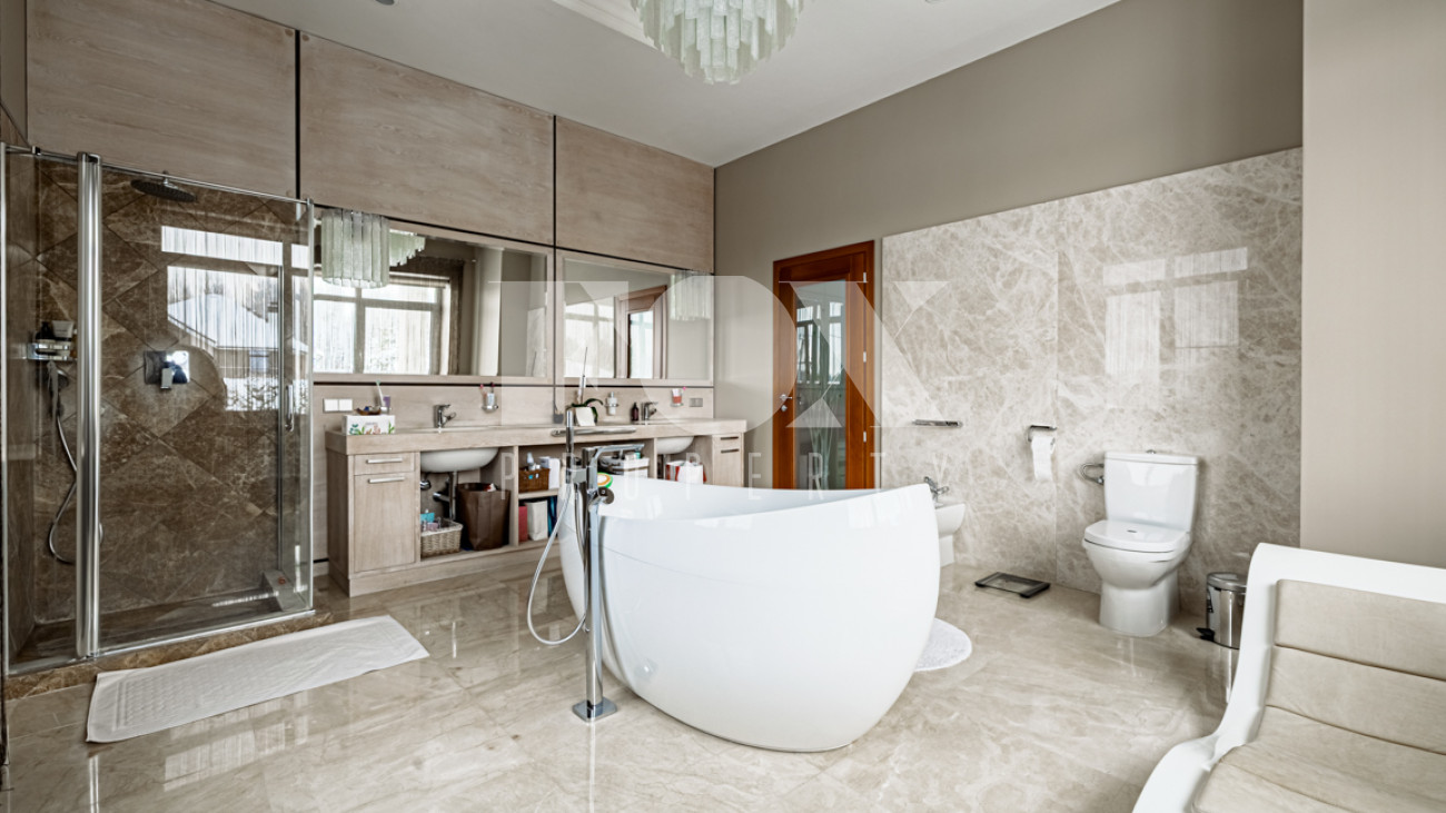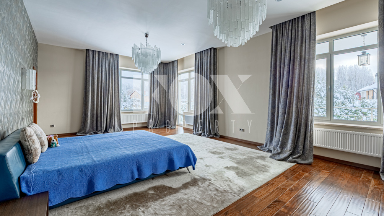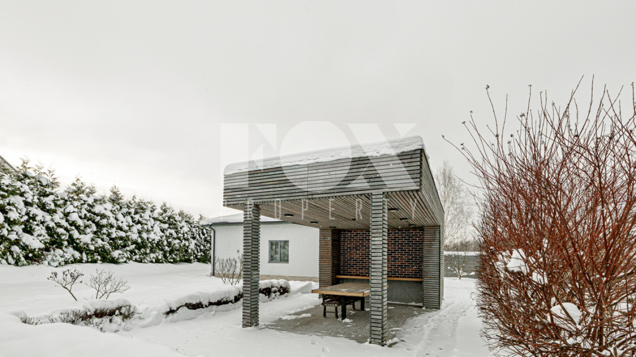 На участке выполнен красивый ландшафтный дизайн, растут крупномеры и кустарники. Есть беседка, барбекю и гостевой дом/для персонала (2 кухни, 2 спальни, с/у).