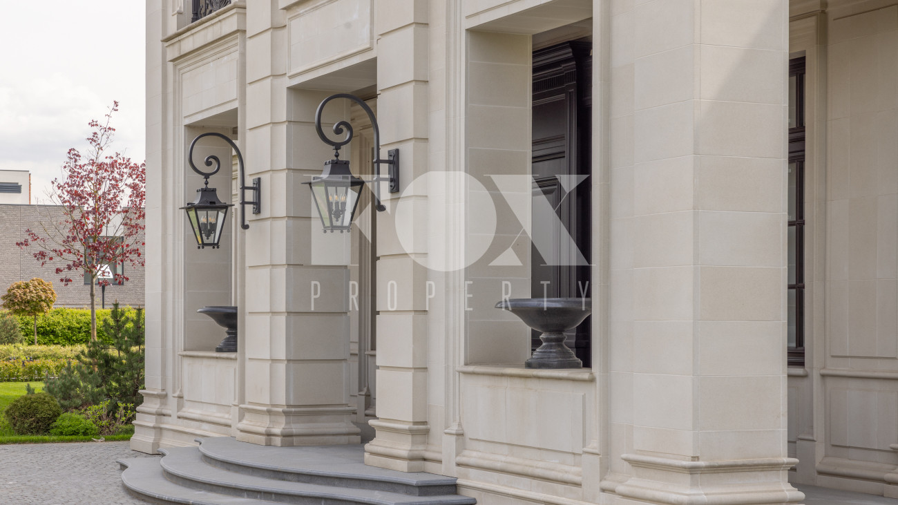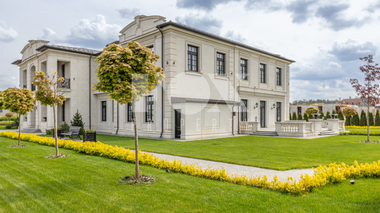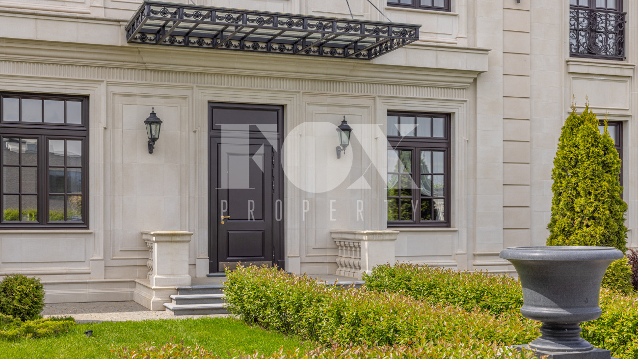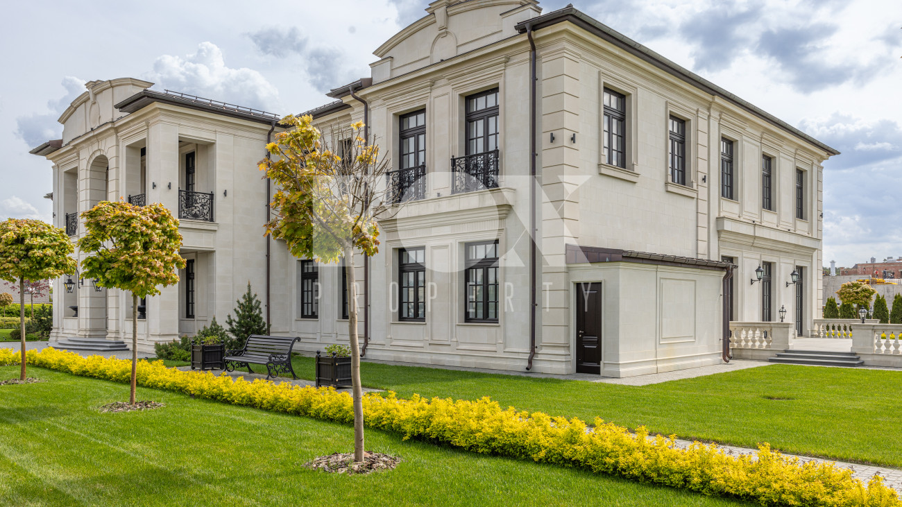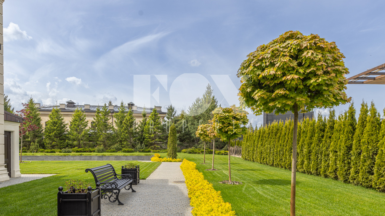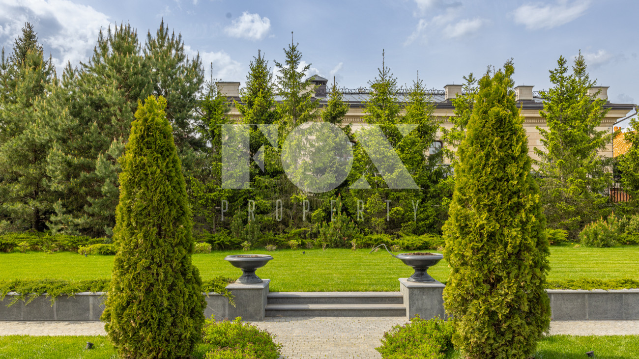 Дом в стиле английской классики с бассейном на ландшафтном парковом участке. Мебель и предметы интерьера ведущих мировых производителей. Отдельно расположены гараж на 3 м/м с квартирой для персонала и дом охраны. На участке проведены ландшафтные работы: высажен газон, посажены деревья, вымощена брусчатка, выполнено ландшафтное освещение.