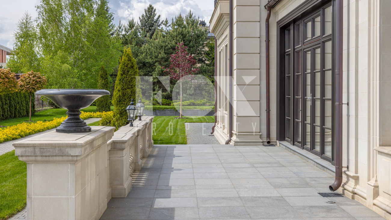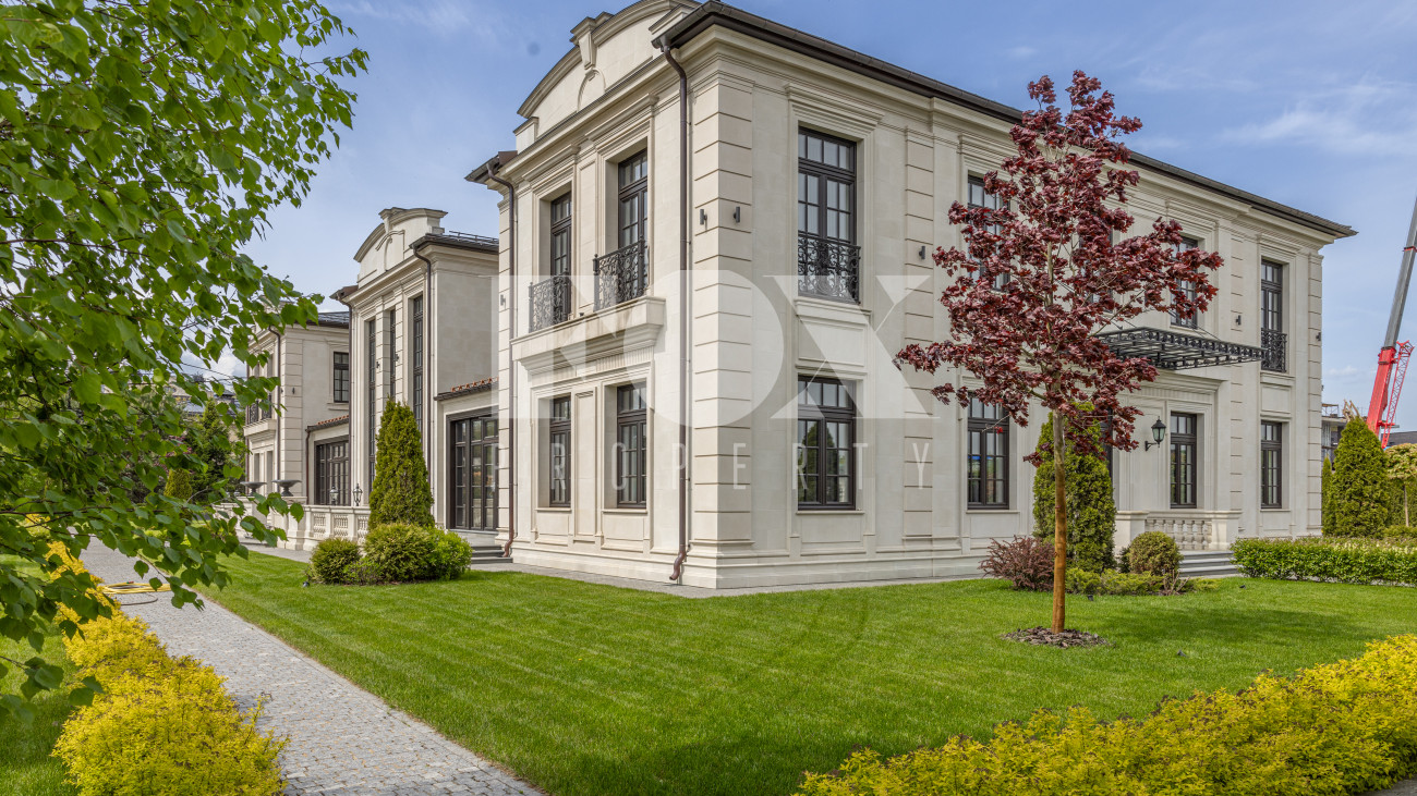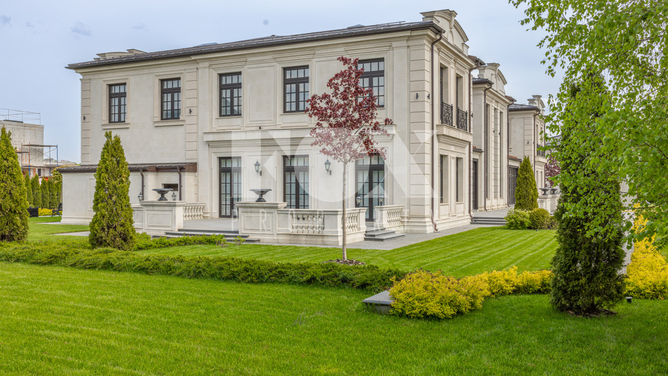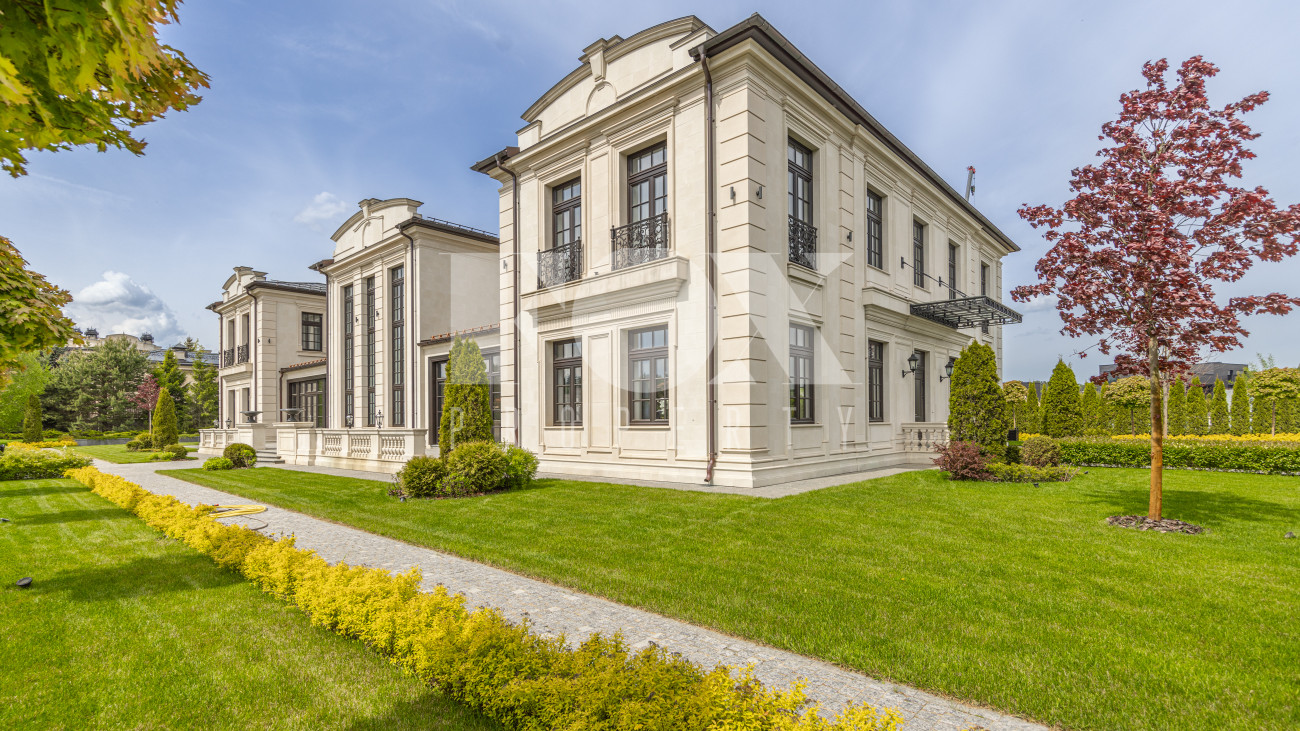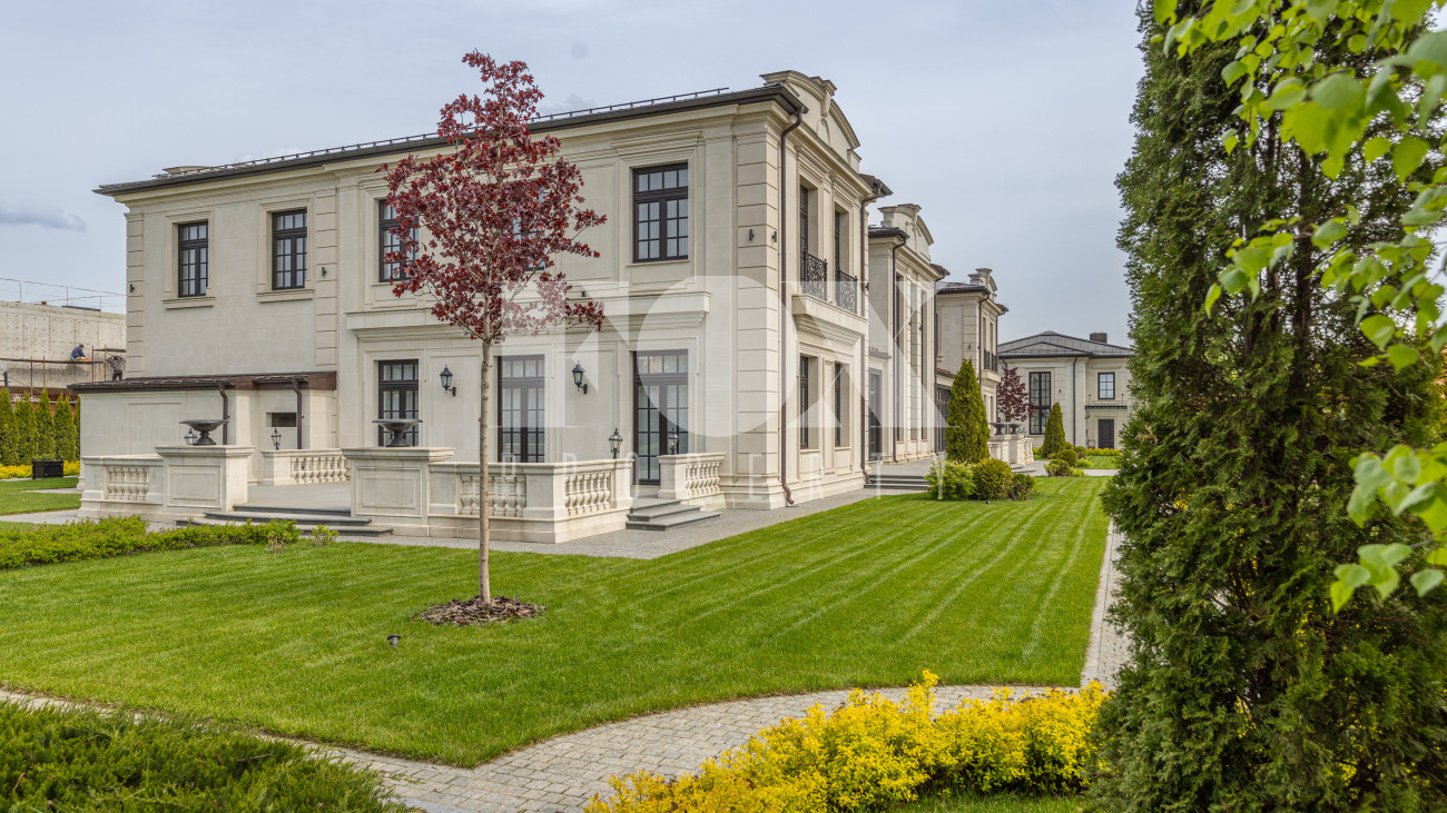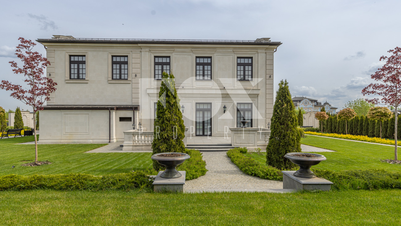 Дом в стиле английской классики с бассейном на ландшафтном парковом участке. Мебель и предметы интерьера ведущих мировых производителей. Отдельно расположены гараж на 3 м/м с квартирой для персонала и дом охраны. На участке проведены ландшафтные работы: высажен газон, посажены деревья, вымощена брусчатка, выполнено ландшафтное освещение.