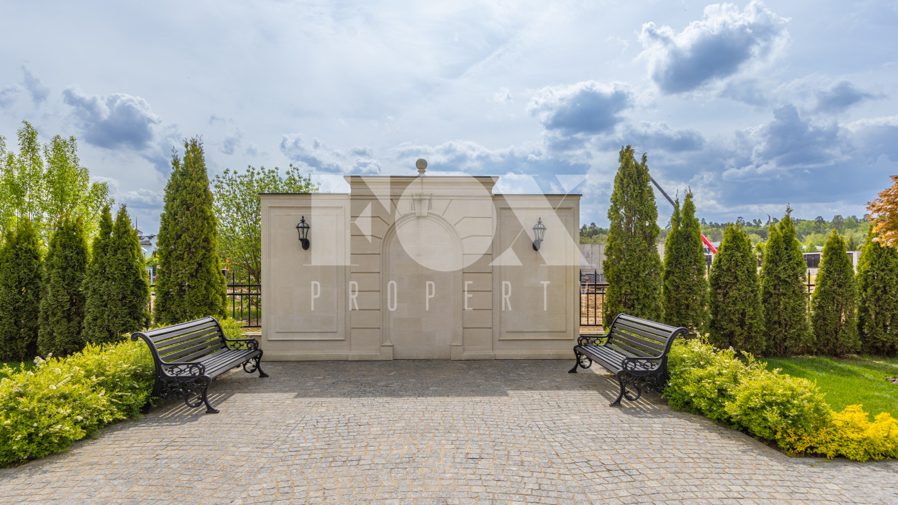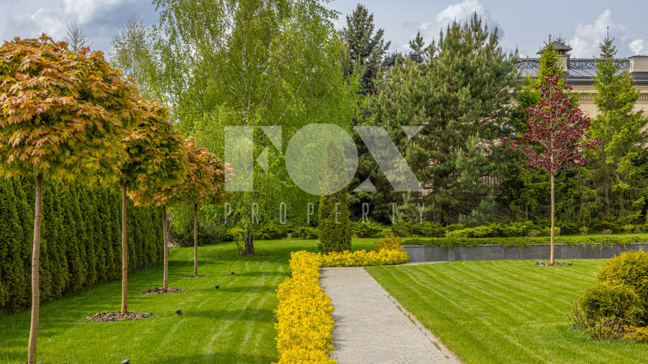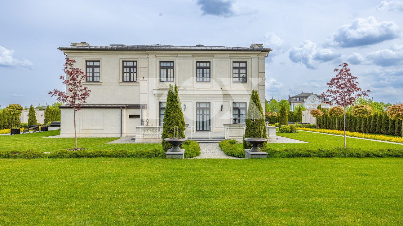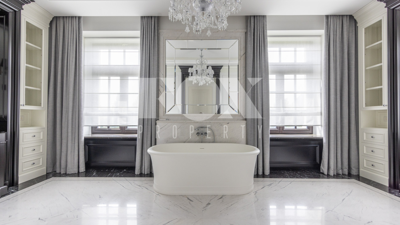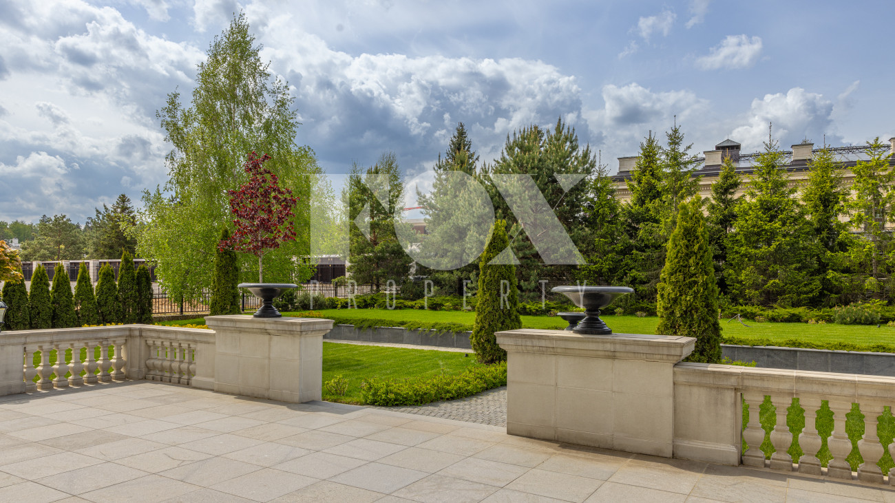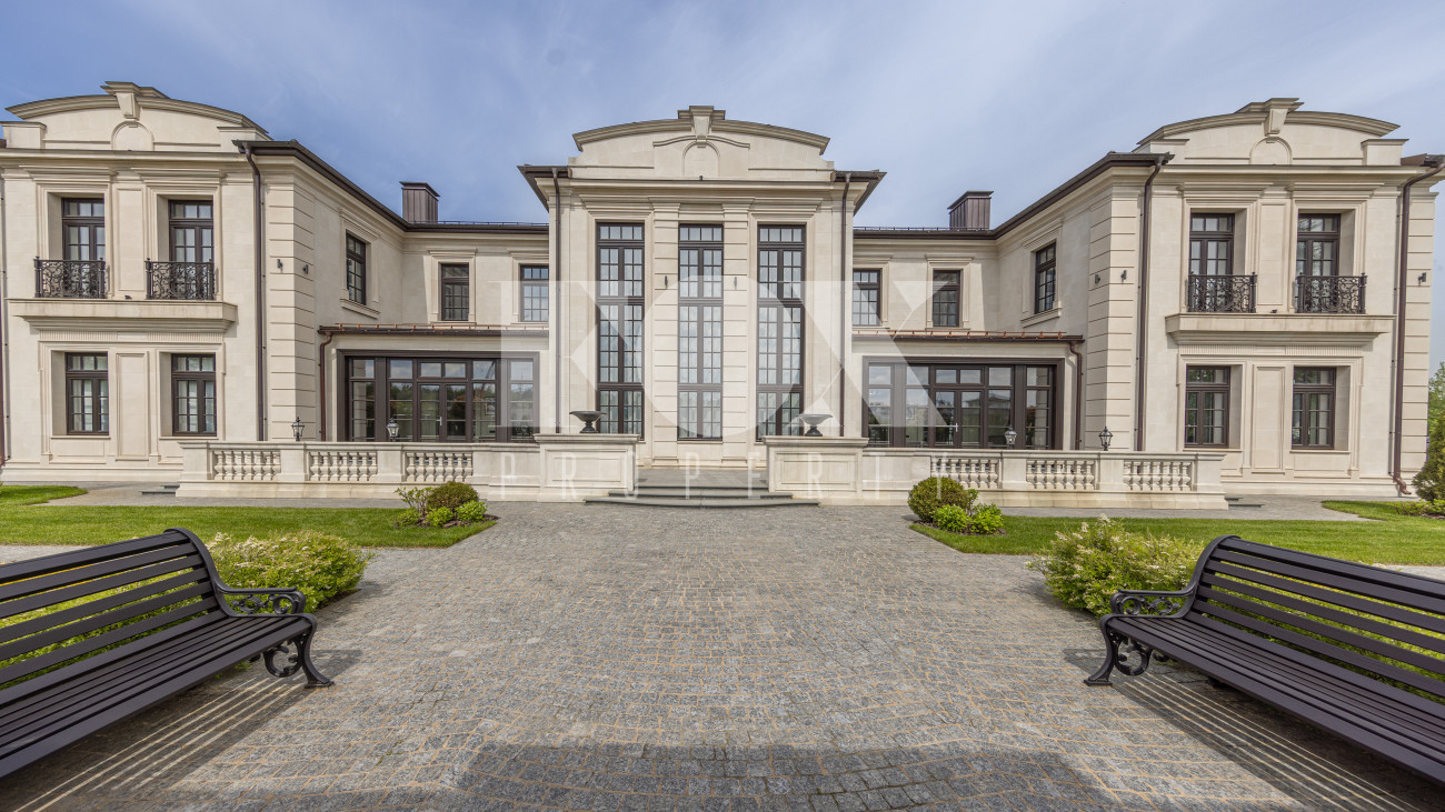 Дом в стиле английской классики с бассейном на ландшафтном парковом участке. Мебель и предметы интерьера ведущих мировых производителей. Отдельно расположены гараж на 3 м/м с квартирой для персонала и дом охраны. На участке проведены ландшафтные работы: высажен газон, посажены деревья, вымощена брусчатка, выполнено ландшафтное освещение.