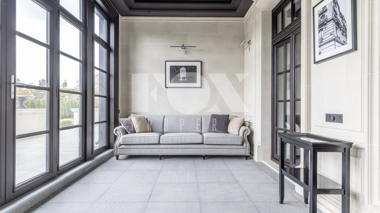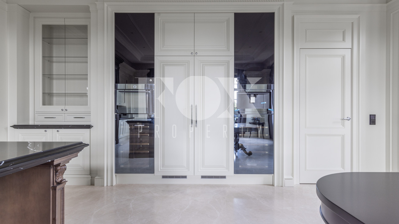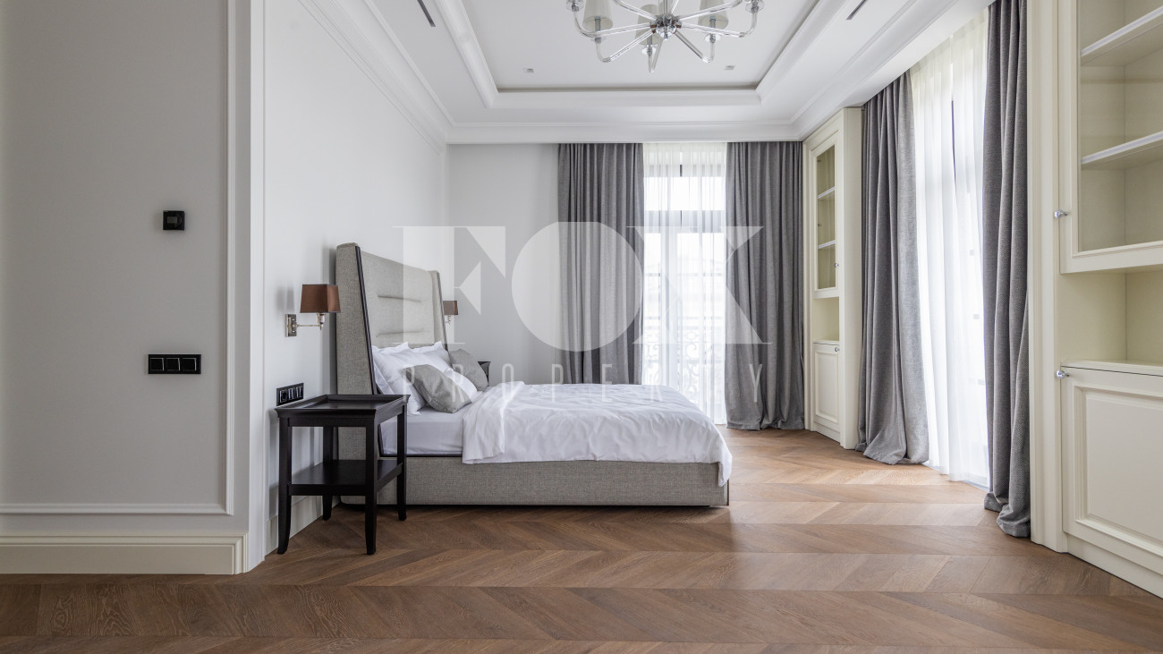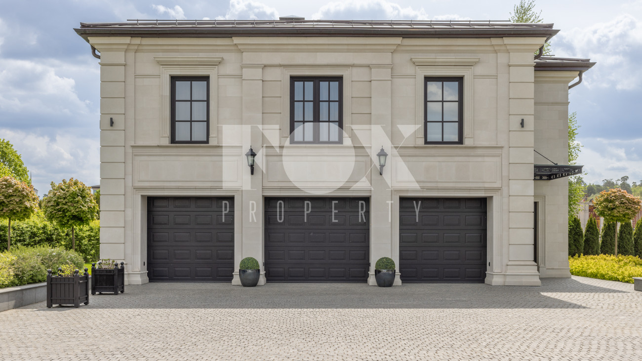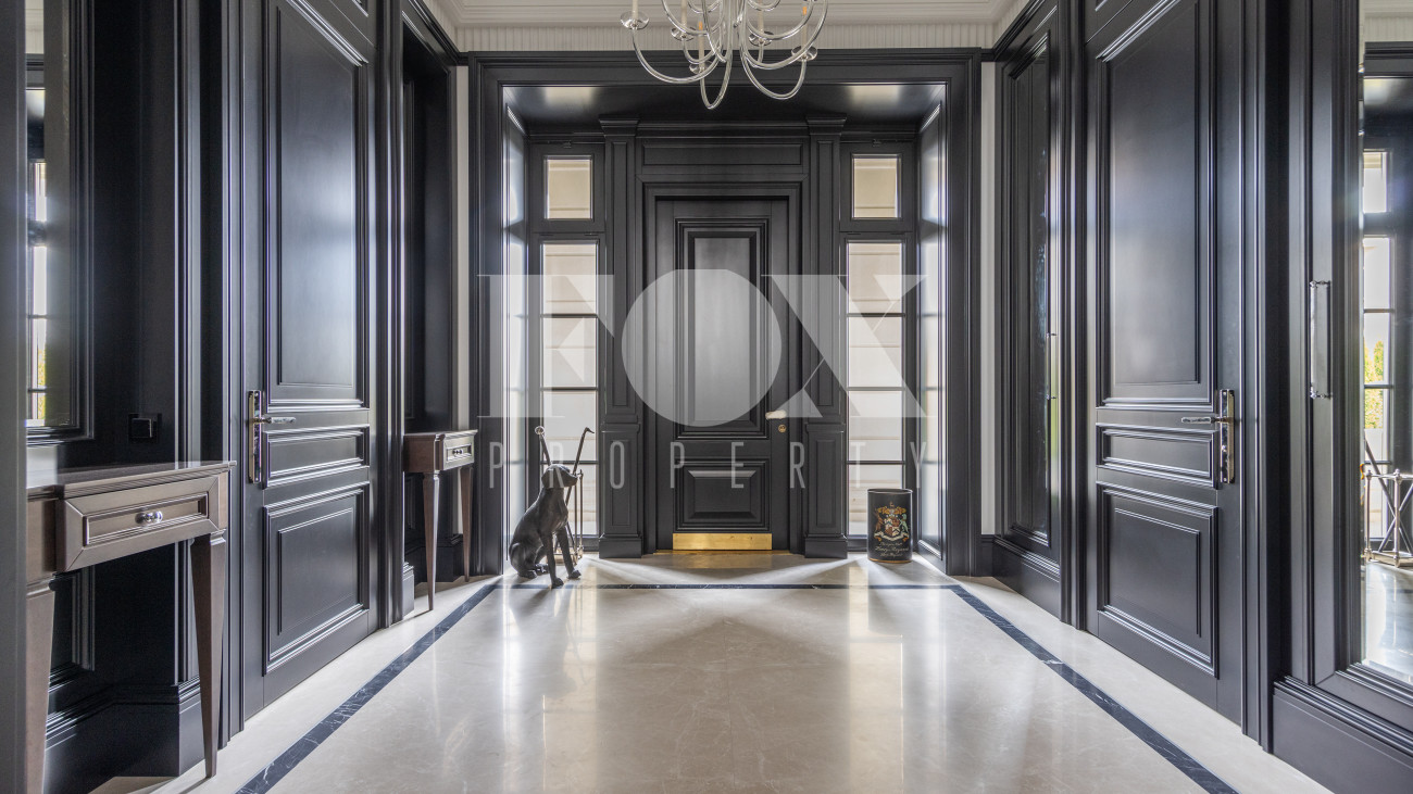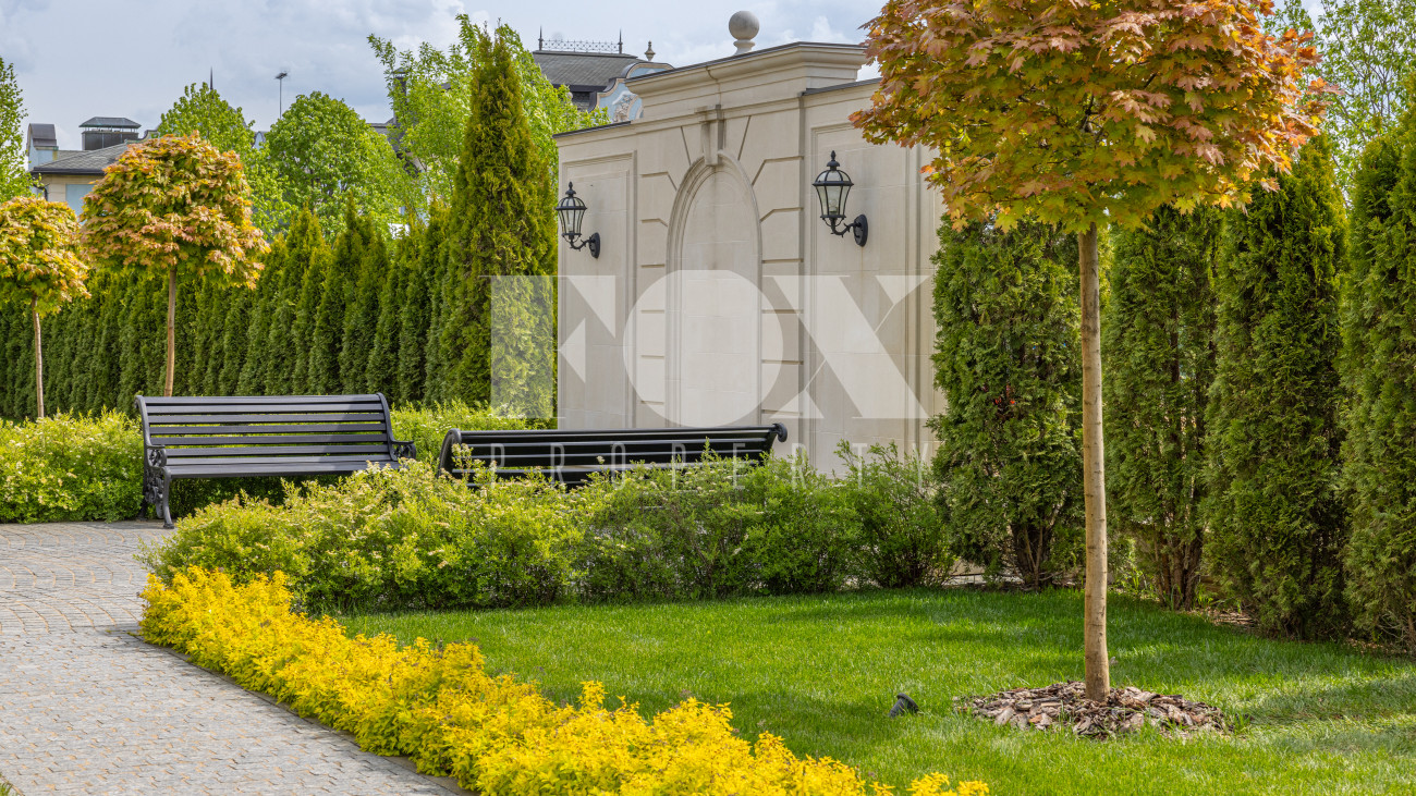 Дом в стиле английской классики с бассейном на ландшафтном парковом участке. Мебель и предметы интерьера ведущих мировых производителей. Отдельно расположены гараж на 3 м/м с квартирой для персонала и дом охраны. На участке проведены ландшафтные работы: высажен газон, посажены деревья, вымощена брусчатка, выполнено ландшафтное освещение.