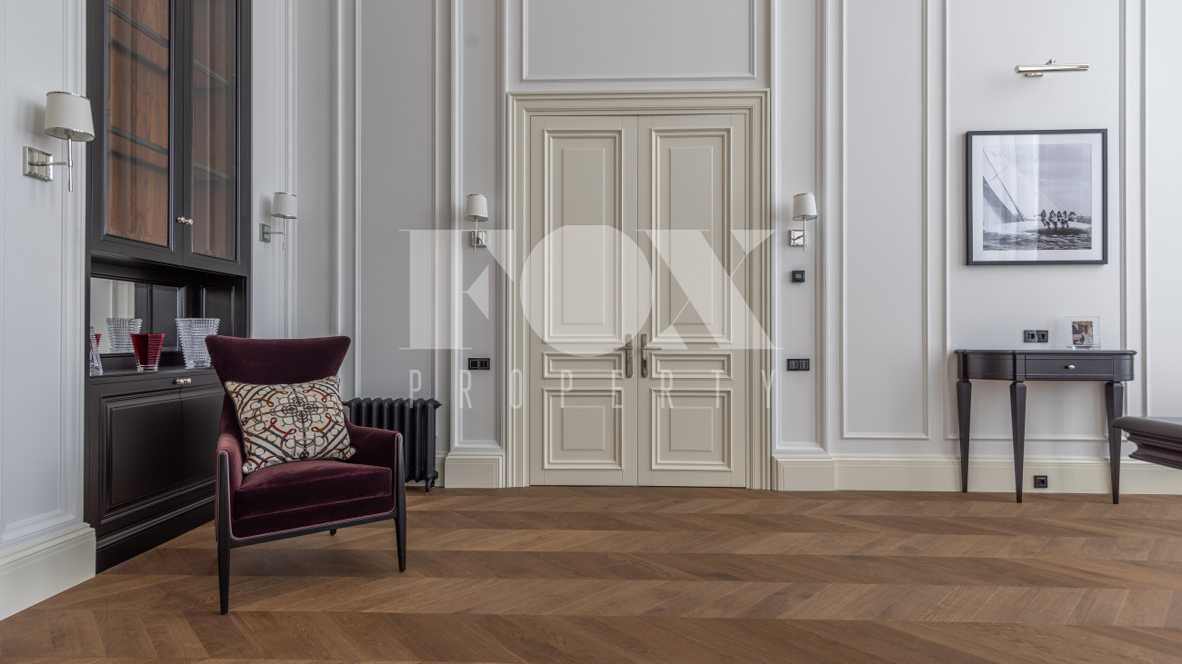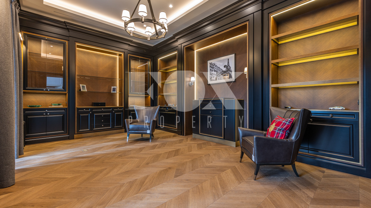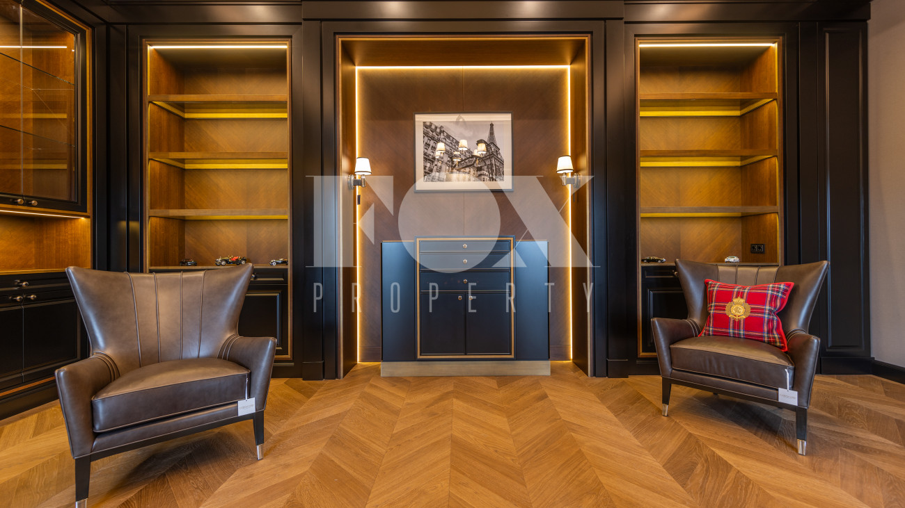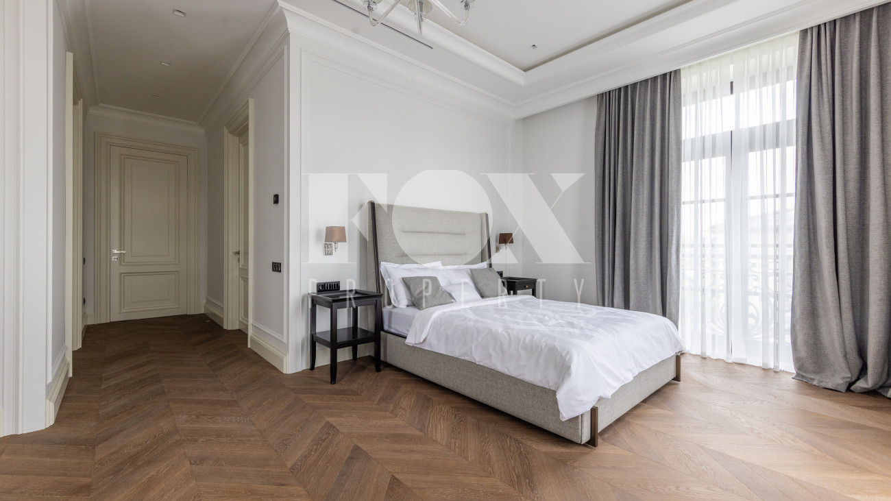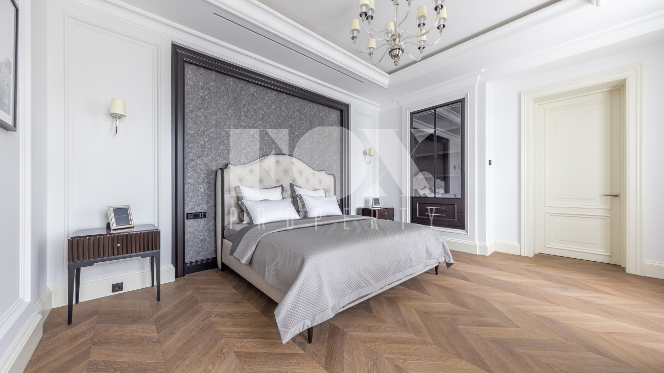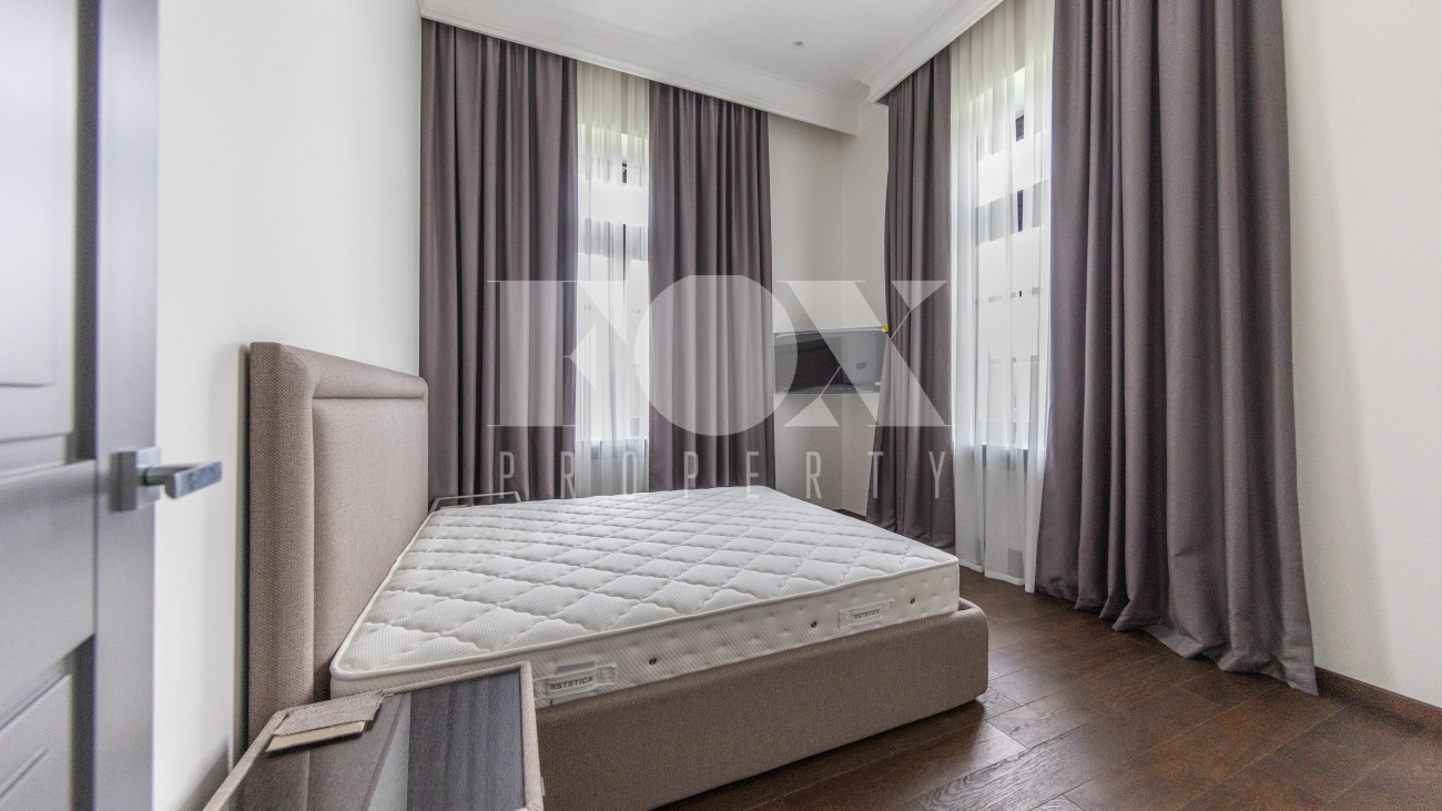 Дом в стиле английской классики с бассейном на ландшафтном парковом участке. Мебель и предметы интерьера ведущих мировых производителей. Отдельно расположены гараж на 3 м/м с квартирой для персонала и дом охраны. На участке проведены ландшафтные работы: высажен газон, посажены деревья, вымощена брусчатка, выполнено ландшафтное освещение.
