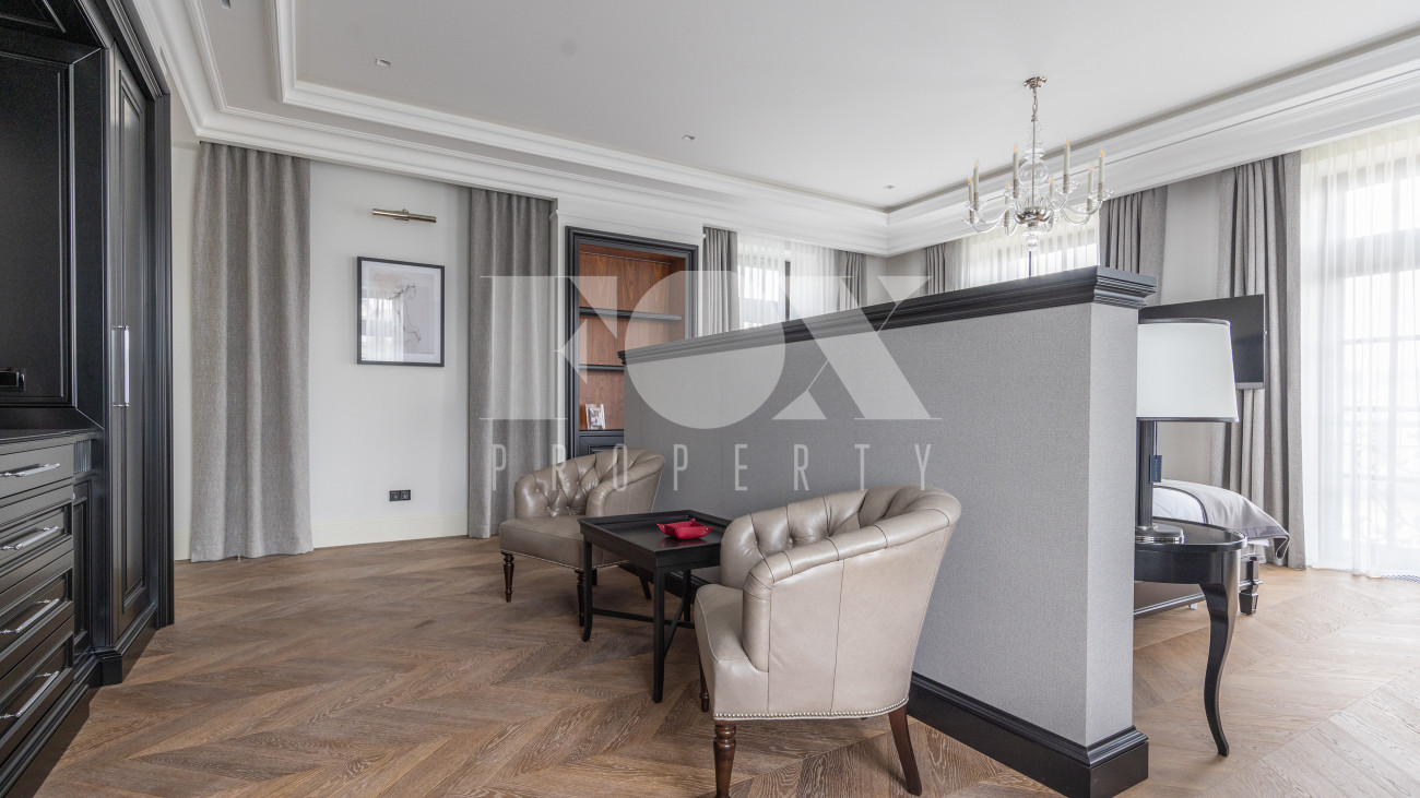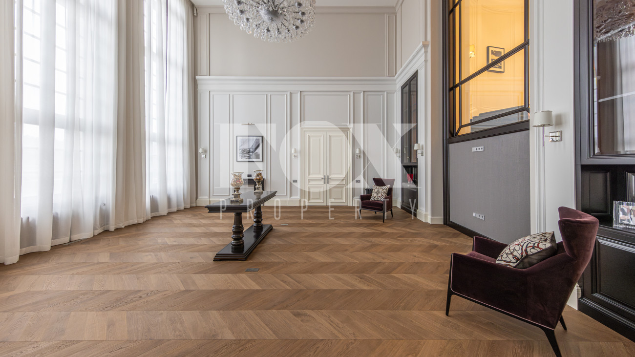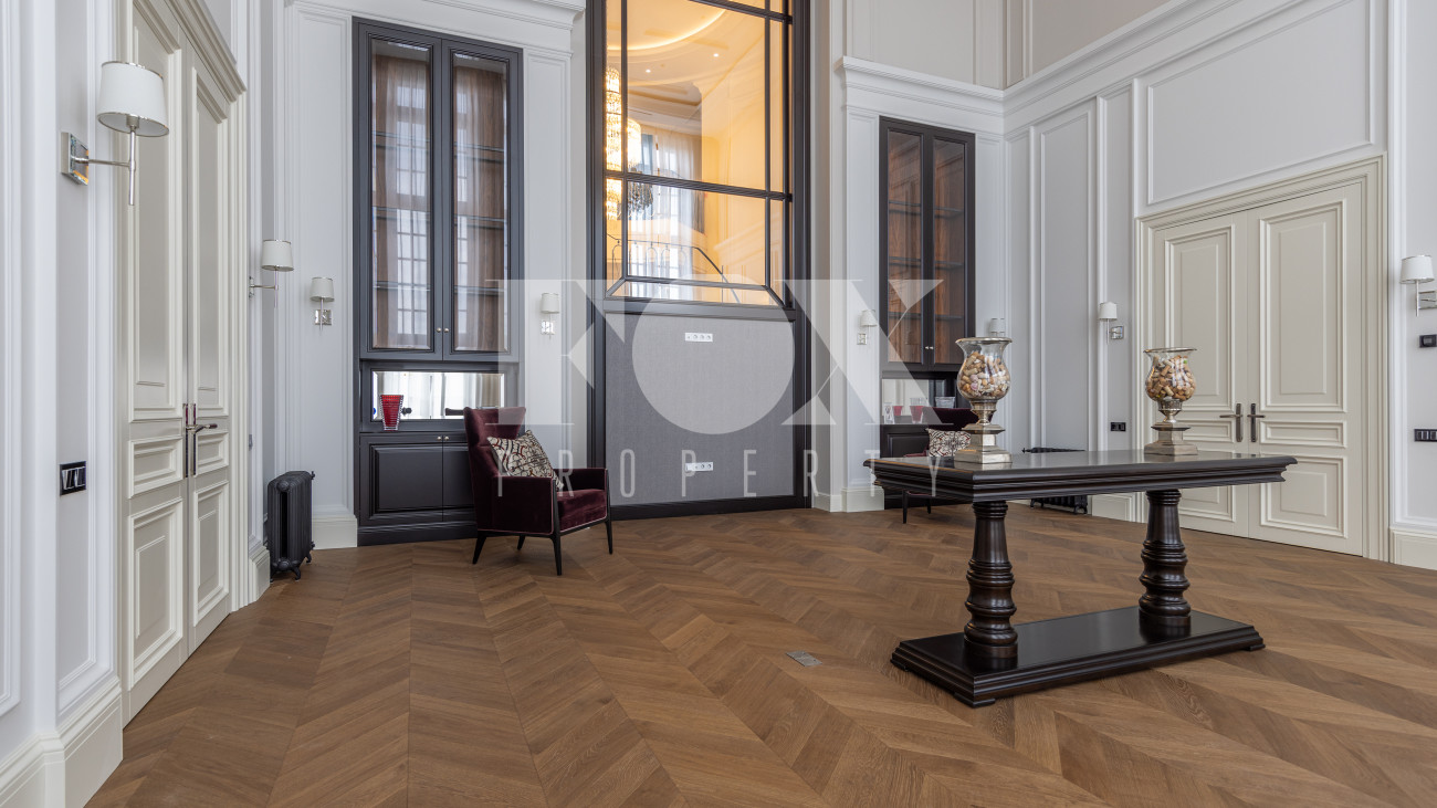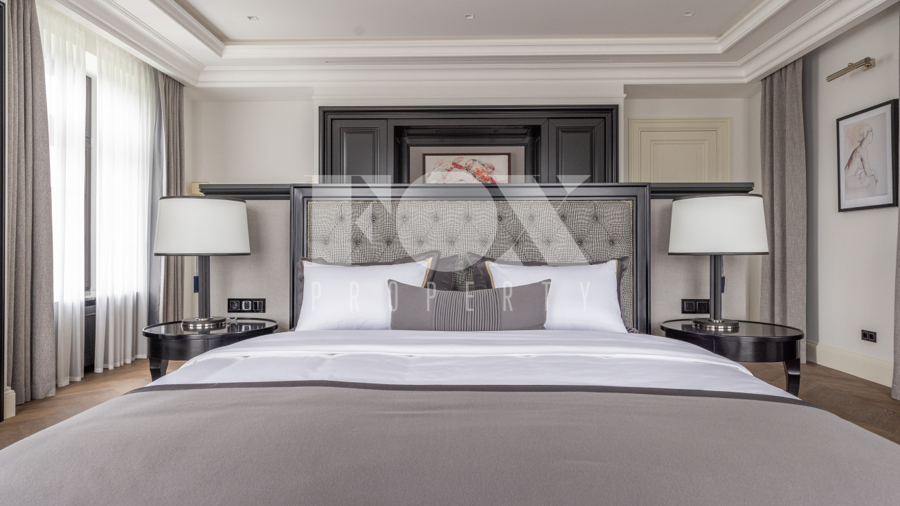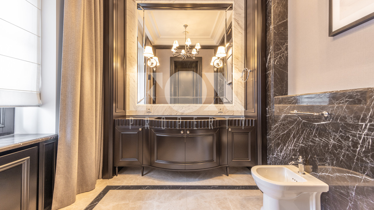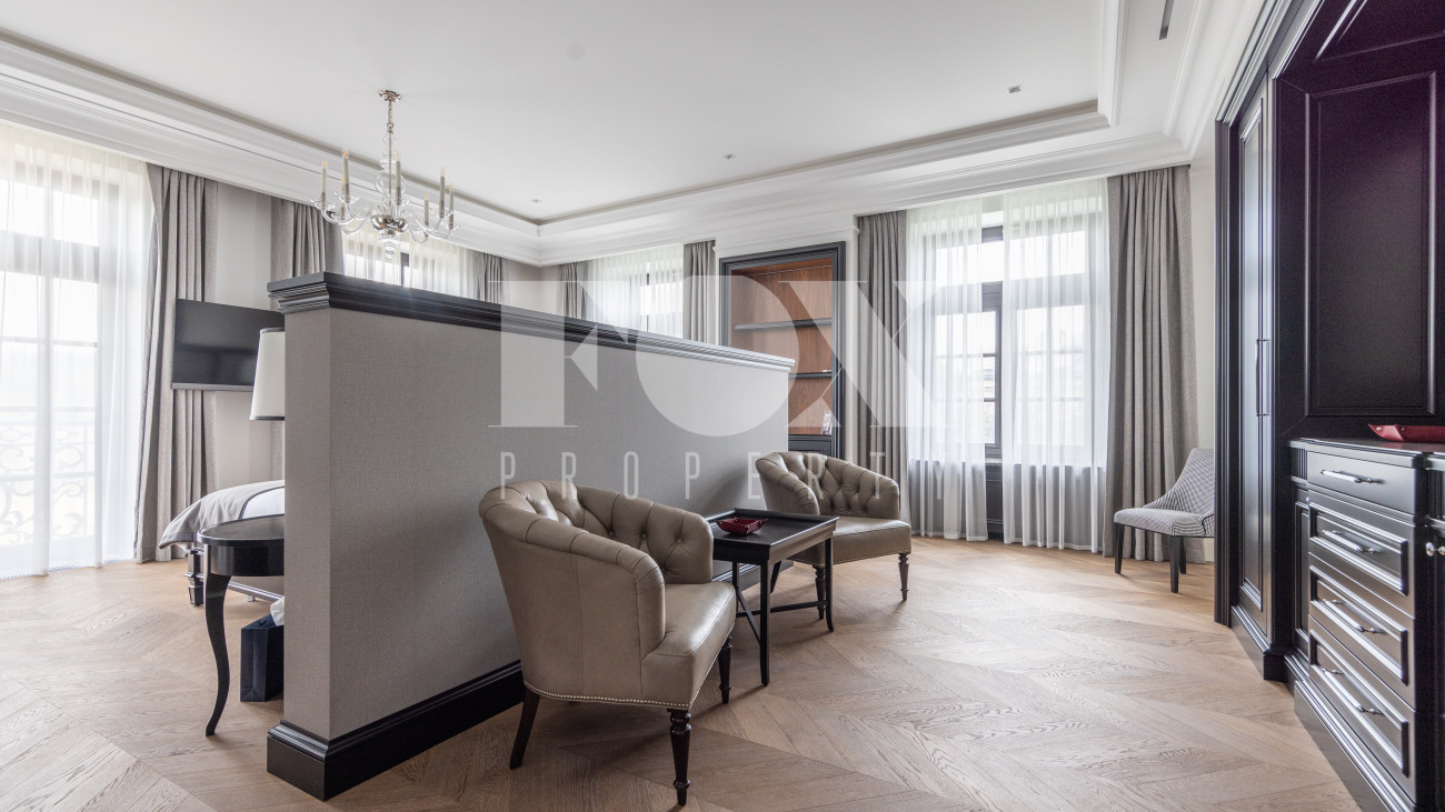 Дом в стиле английской классики с бассейном на ландшафтном парковом участке. Мебель и предметы интерьера ведущих мировых производителей. Отдельно расположены гараж на 3 м/м с квартирой для персонала и дом охраны. На участке проведены ландшафтные работы: высажен газон, посажены деревья, вымощена брусчатка, выполнено ландшафтное освещение.