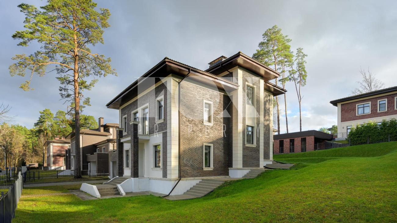 Современный коттедж 422 кв.м “под отделку” на рельефном участке 12,68 соток в клубном поселке Петрово-Дальнее, расположенном всего в 14 км от МКАД по Новорижскому шоссе.