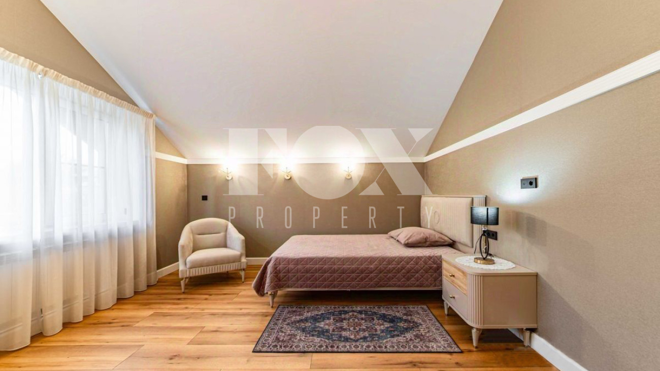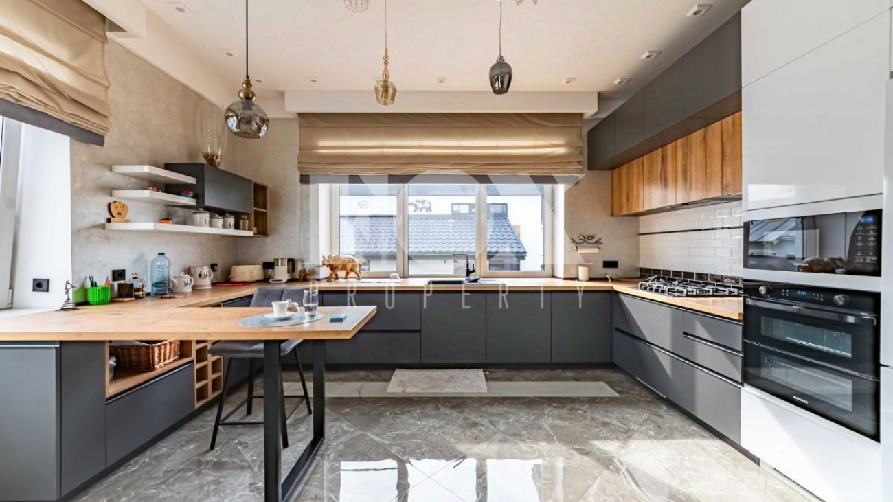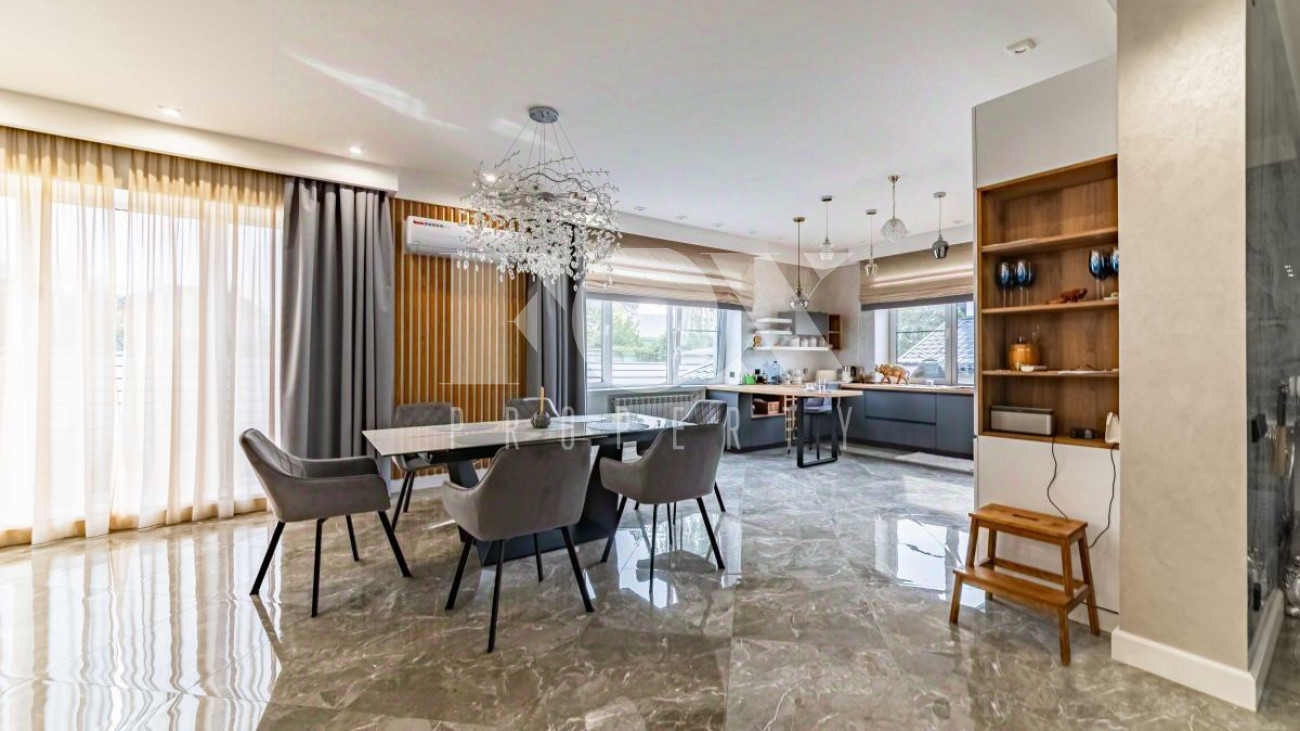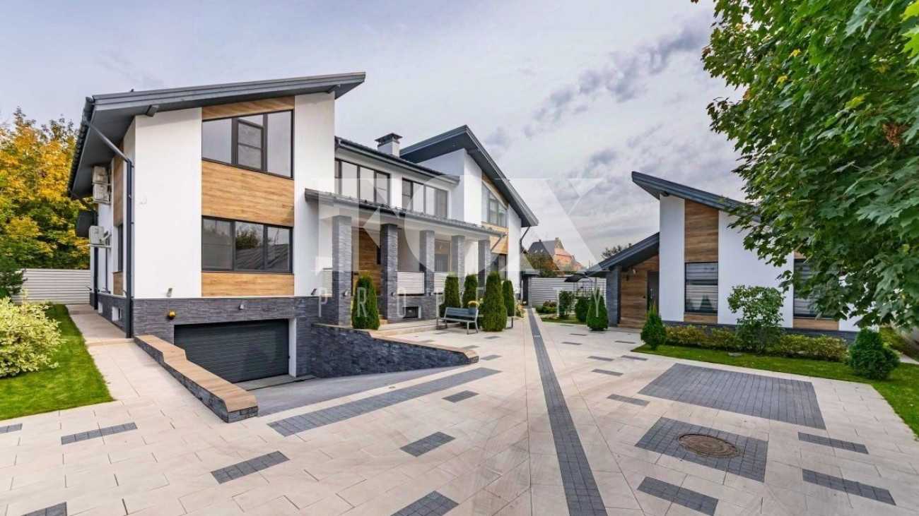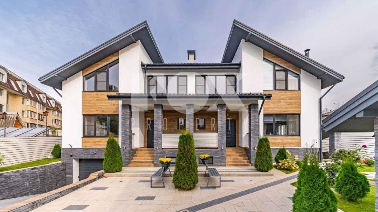 Готовый к проживанию дом дуплекс с двумя отдельными входами. Площади частей дуплекса 220 и 180 кв.м В доме выполнен качественный ремонт, оборудован мебелью. На цокольном этаже расположен гараж площадью 230 кв.м на 8 м/м. Участок правильной формы с ландшафтным дизайном, на территории расположен гостевой дом с качественным ремонтом и мебелью.