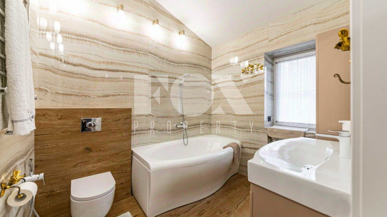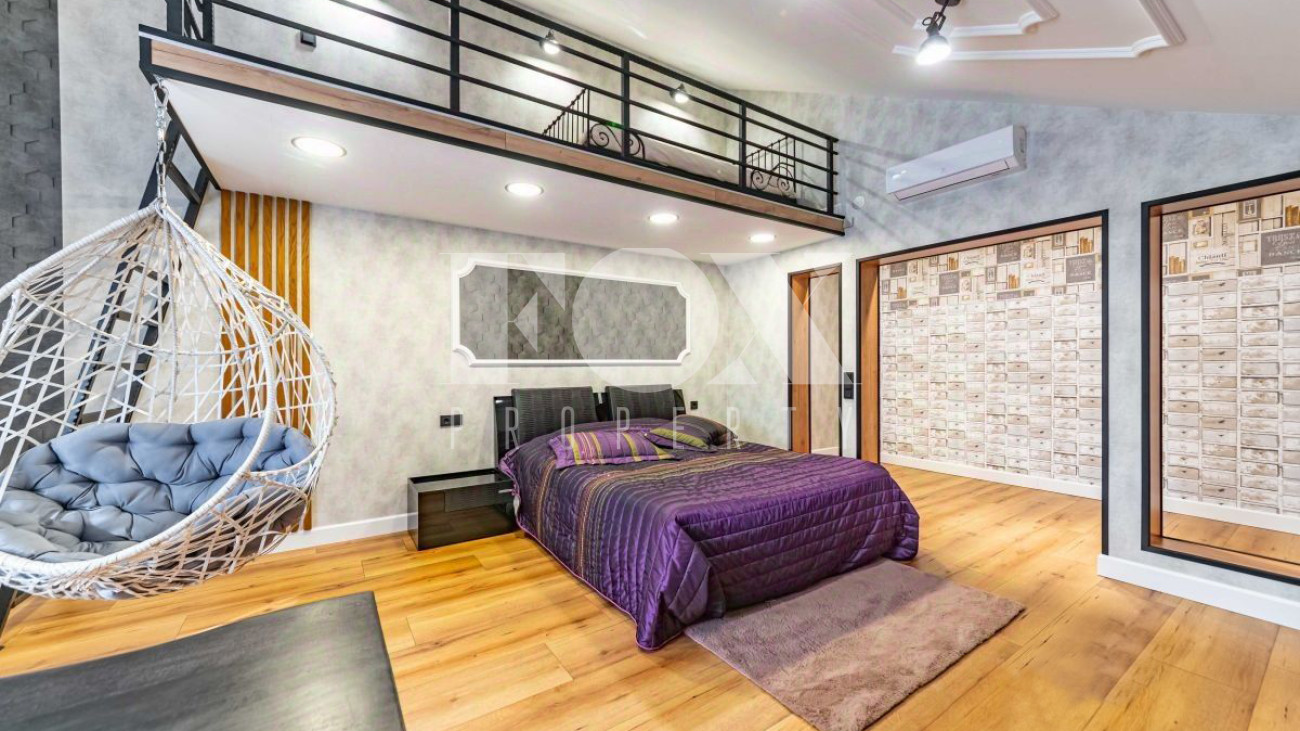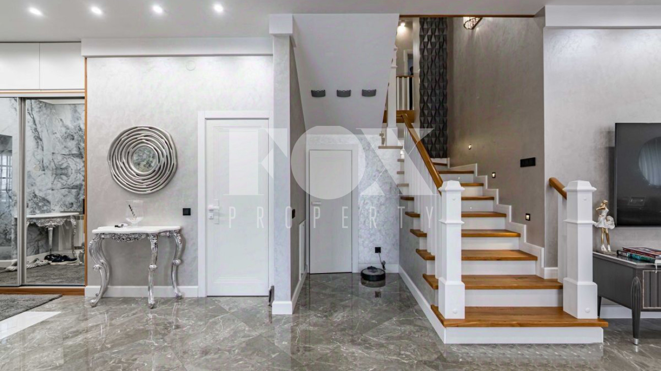 Планировка: часть дуплекса площадью 220 кв.м: 1 этаж: прихожая, кухня - столовая - гостиная, спальня, санузел, постирочная/гардеробная;