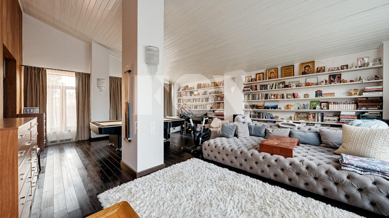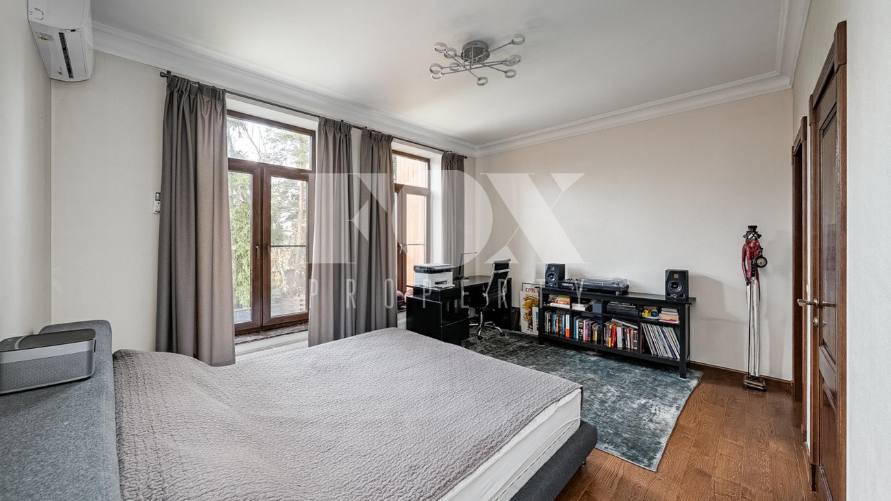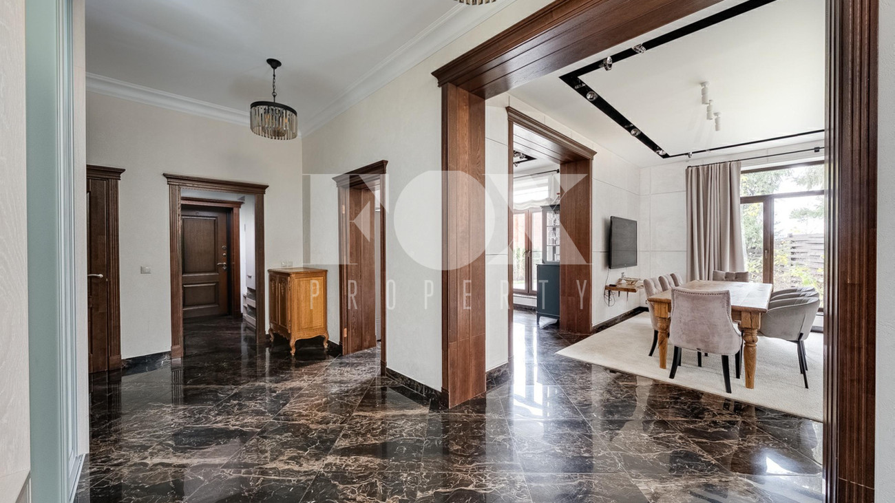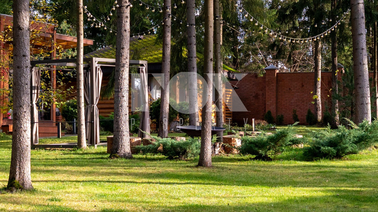 В экологически чистом уголке, на западе Подмосковья, в респектабельном поселке ПЖСК Полесье продаётся потрясающий дом общей площадью 450 м² в стиле шале, расположенный на лесном участке 25 соток. В архитектуре фасада дома преобладают природные оттенки – сочетание дерева и камня. Широкоформатные окна открывают восхитительные виды на ухоженный задний двор, где растут взрослые сосны, оставаясь зелёными круглый год. В доме выполнен высококачественный ремонт в неоклассическом стиле с использованием премиальных отделочных материалов. Со вкусом подобрана мебель и элементы декора. Всего в доме 6 спален с собственными санузлами. Продумана индивидуальная система кондиционирования в каждой комнате, тёплые полы. На первом этаже расположилась уютная и очень светлая кухня с премиальным техническим оснащением и островком. Просторная столовая-гостиная с удобным диваном, большим обеденным столом и дровяным камином создаёт непередаваемое чувство комфорта и уюта. Спальня с санузлом, постирочная и гладильная комната с кладовой. Холл с местами для хранения верхней одежды, а также гараж на 2 машиноместа с зарядками для электрокаров. На втором этаже гармонично разместились 3 спальни, каждая со своим санузлом, вместительная гардеробная комната, а также огромное пространство, которому отведена роль домашнего кинотеатра, библиотеки и бильярдной комнаты – точка притяжения всей семьи. На третьем этаже предусмотрены 2 спальни, санузел, а также место для хранения сезонных вещей. Всё пространство дома наполнено уютом и приятной аурой, что является залогом физической и психологической лёгкости. На заднем дворе, среди хвойных деревьев, построена беседка с летней кухней, качели, костровая зона для долгих упоительных вечеров, спортивная площадка для активностей. Построена современная теплица и деревянные клумбы для выращивания сезонных овощей и ягод. Настоящая русская дровяная баня из сруба – уголок спокойствия и природная терапия, доступная прямо у вас на участке. Тут можно отключиться от повседневных забот и насладиться моментом. На участке также построены 2 небольших домика для обслуживающего персонала.