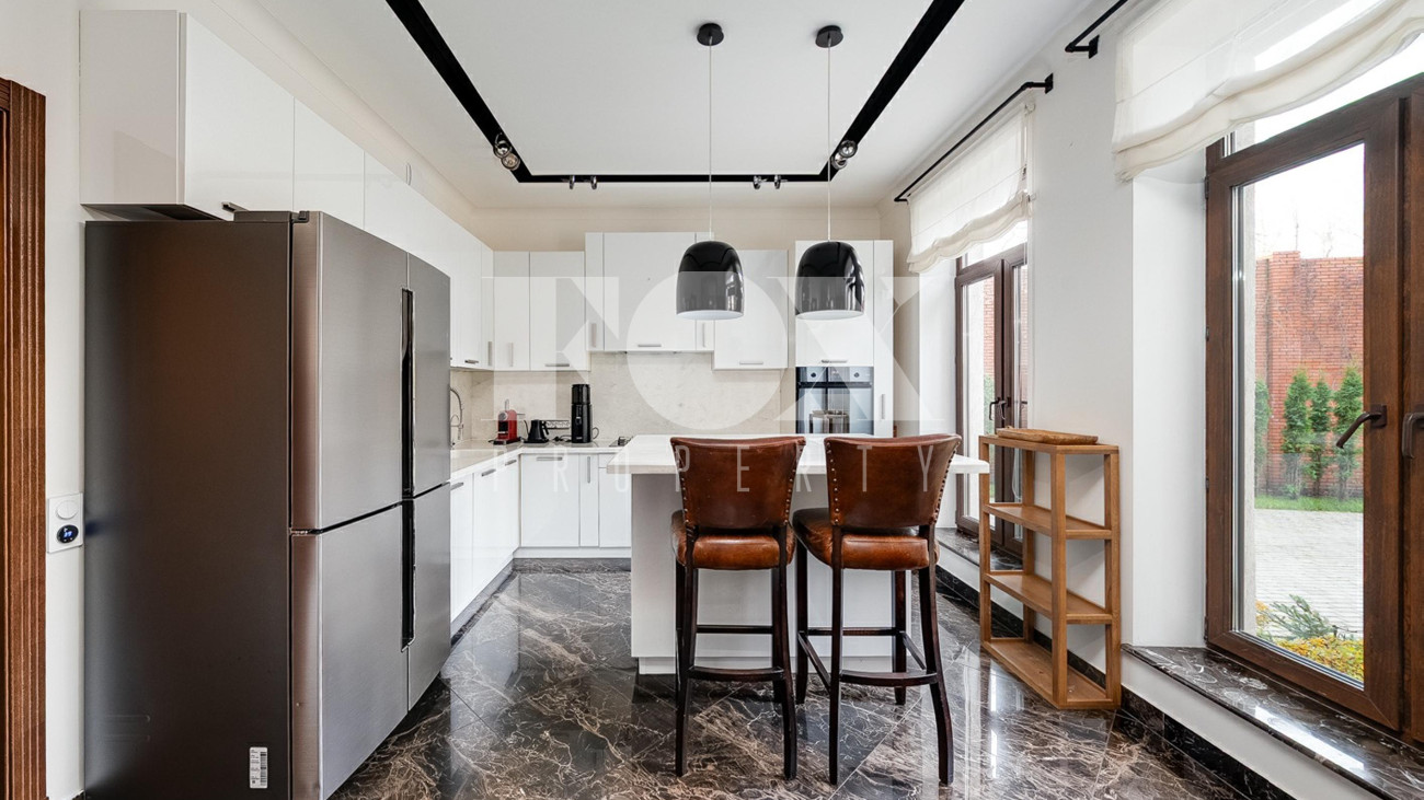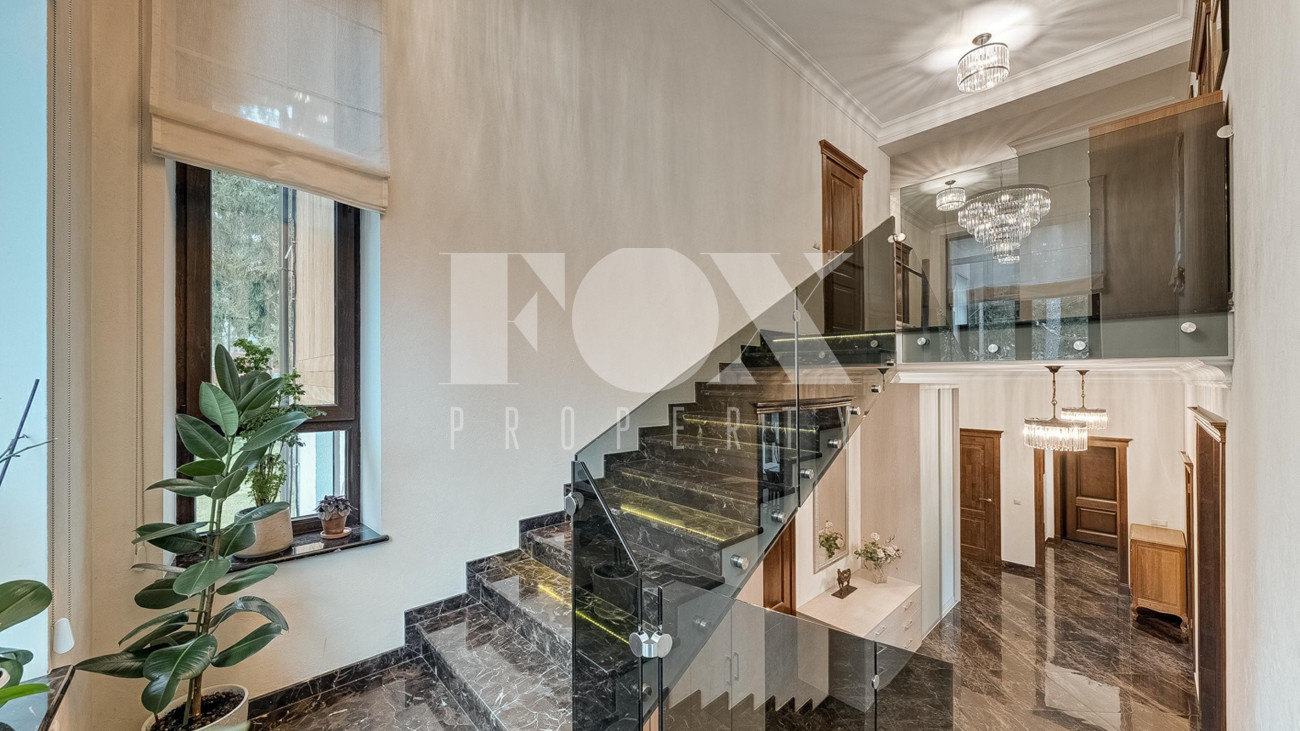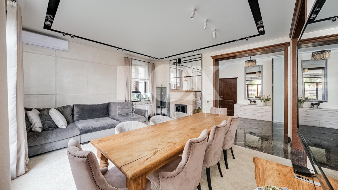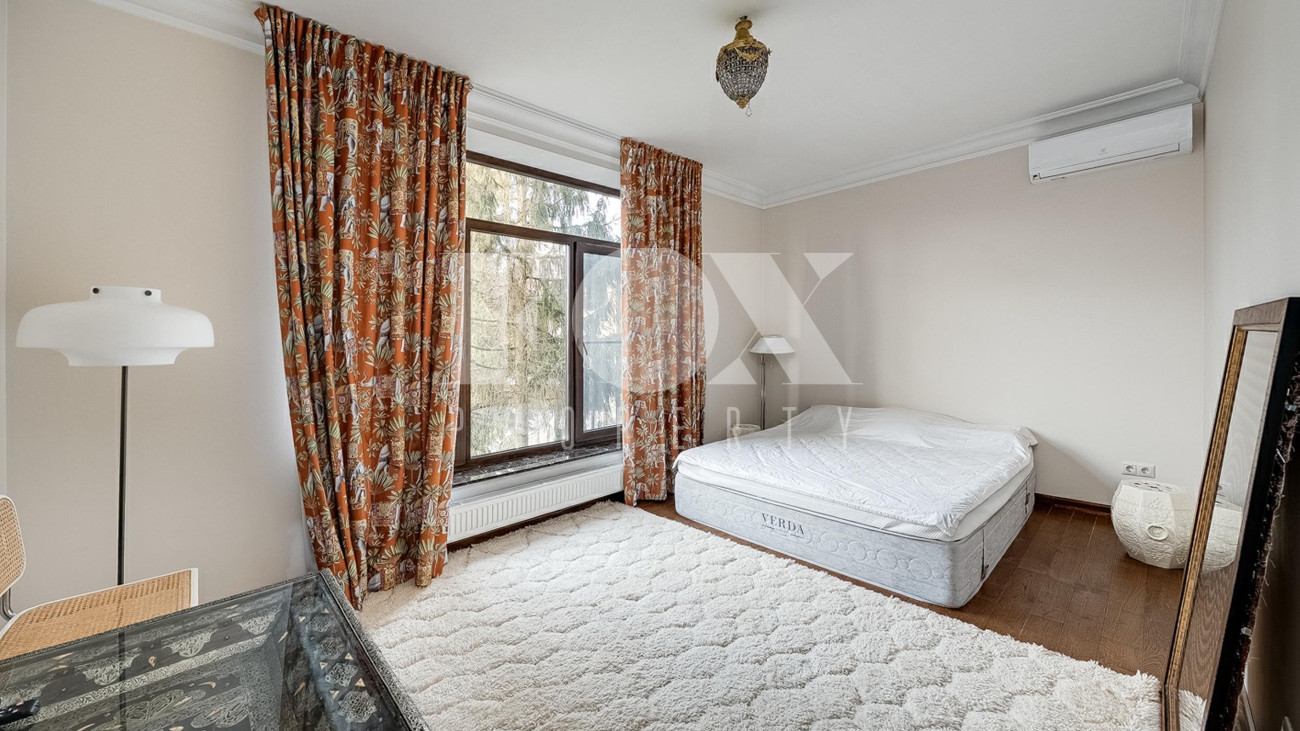 В экологически чистом уголке, на западе Подмосковья, в респектабельном поселке ПЖСК Полесье продаётся потрясающий дом общей площадью 450 м² в стиле шале, расположенный на лесном участке 25 соток. В архитектуре фасада дома преобладают природные оттенки – сочетание дерева и камня. Широкоформатные окна открывают восхитительные виды на ухоженный задний двор, где растут взрослые сосны, оставаясь зелёными круглый год. В доме выполнен высококачественный ремонт в неоклассическом стиле с использованием премиальных отделочных материалов. Со вкусом подобрана мебель и элементы декора. Всего в доме 6 спален с собственными санузлами. Продумана индивидуальная система кондиционирования в каждой комнате, тёплые полы. На первом этаже расположилась уютная и очень светлая кухня с премиальным техническим оснащением и островком. Просторная столовая-гостиная с удобным диваном, большим обеденным столом и дровяным камином создаёт непередаваемое чувство комфорта и уюта. Спальня с санузлом, постирочная и гладильная комната с кладовой. Холл с местами для хранения верхней одежды, а также гараж на 2 машиноместа с зарядками для электрокаров. На втором этаже гармонично разместились 3 спальни, каждая со своим санузлом, вместительная гардеробная комната, а также огромное пространство, которому отведена роль домашнего кинотеатра, библиотеки и бильярдной комнаты – точка притяжения всей семьи. На третьем этаже предусмотрены 2 спальни, санузел, а также место для хранения сезонных вещей. Всё пространство дома наполнено уютом и приятной аурой, что является залогом физической и психологической лёгкости. На заднем дворе, среди хвойных деревьев, построена беседка с летней кухней, качели, костровая зона для долгих упоительных вечеров, спортивная площадка для активностей. Построена современная теплица и деревянные клумбы для выращивания сезонных овощей и ягод. Настоящая русская дровяная баня из сруба – уголок спокойствия и природная терапия, доступная прямо у вас на участке. Тут можно отключиться от повседневных забот и насладиться моментом. На участке также построены 2 небольших домика для обслуживающего персонала.