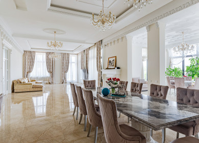 Коттедж площадью 700 кв.м с дизайнерской отделкой интерьеров в классическом стиле в охраняемом коттеджном поселке Барвиха. Дом полностью меблирован от лучших итальянских производителей.